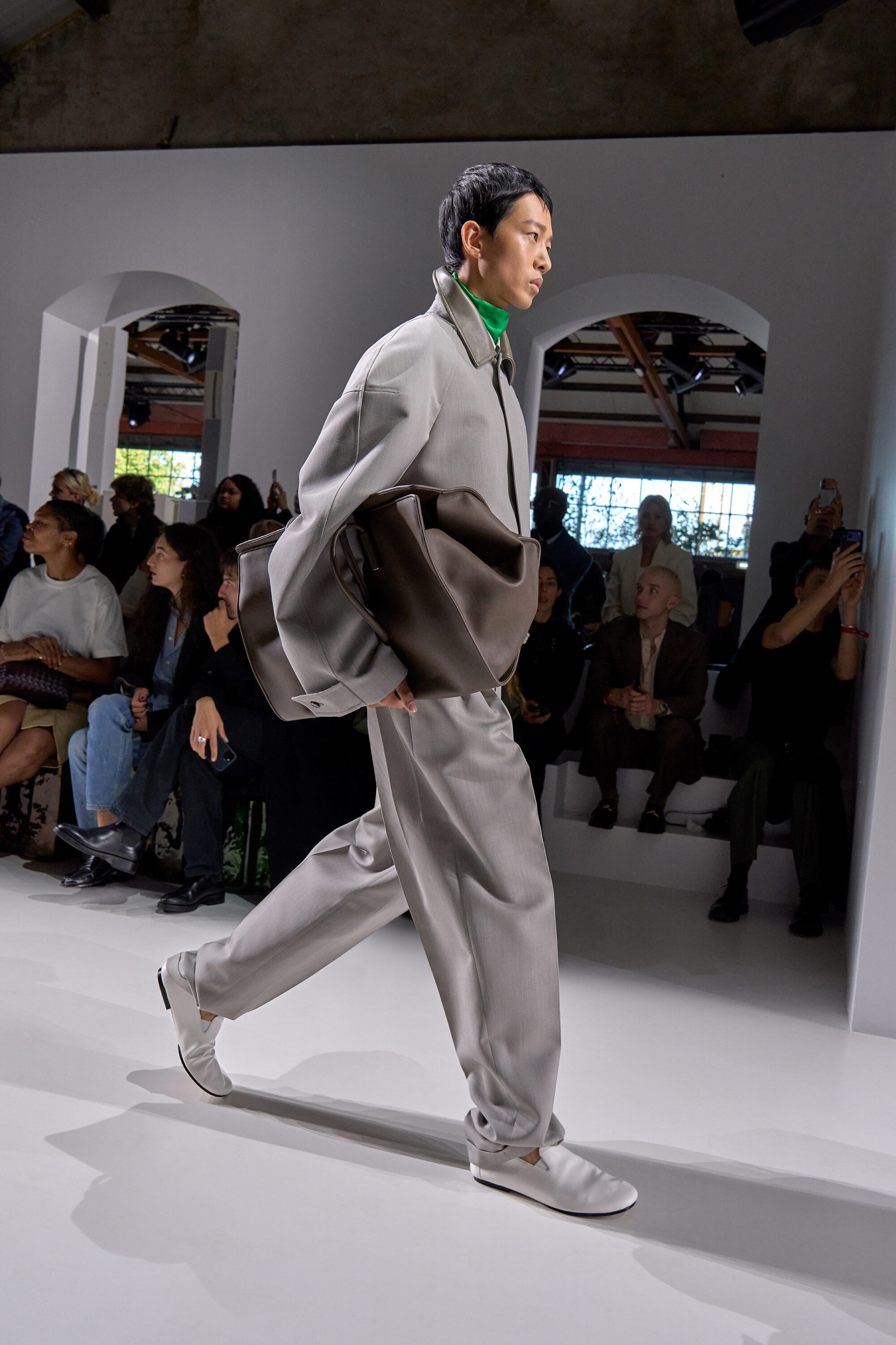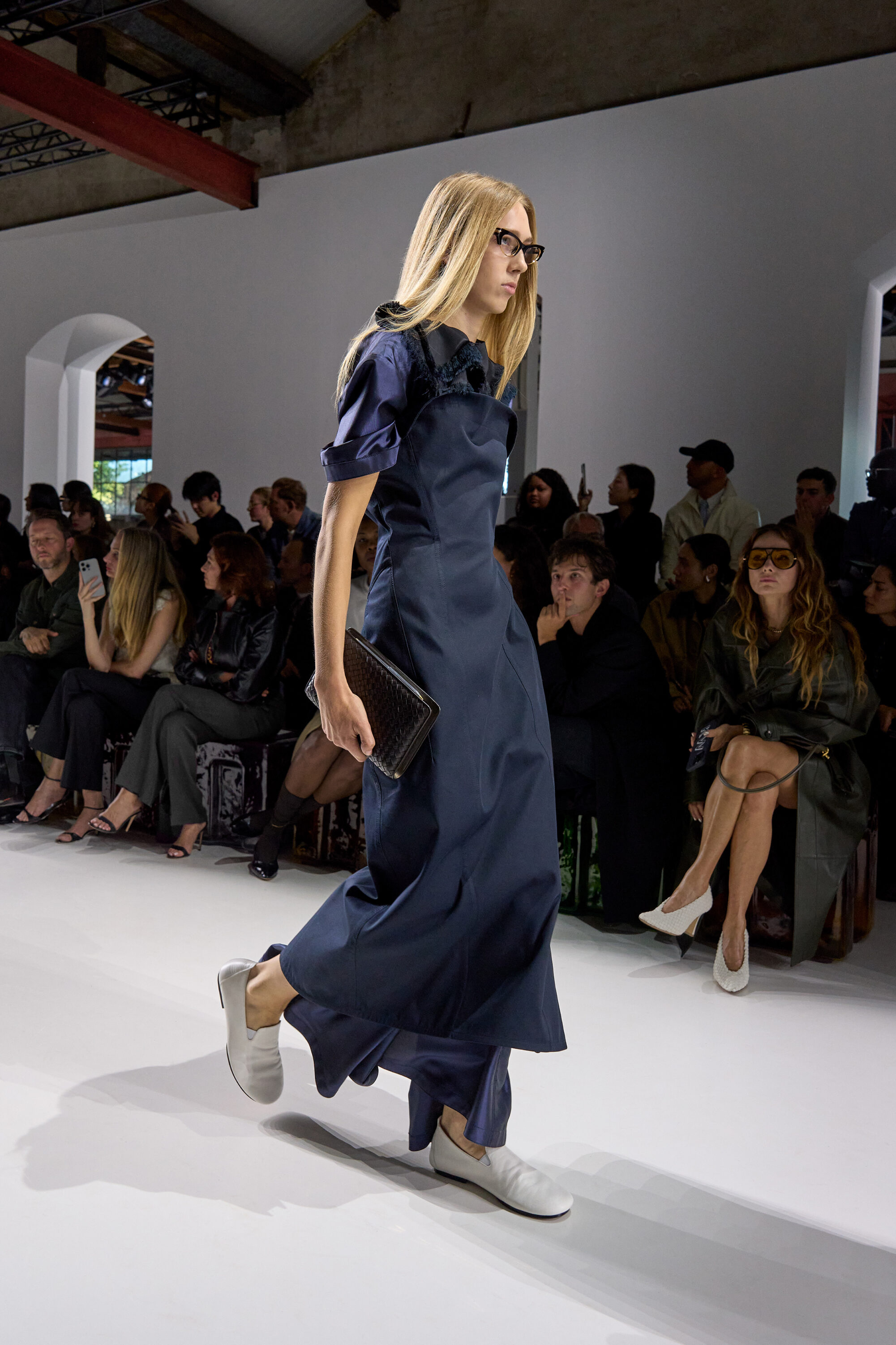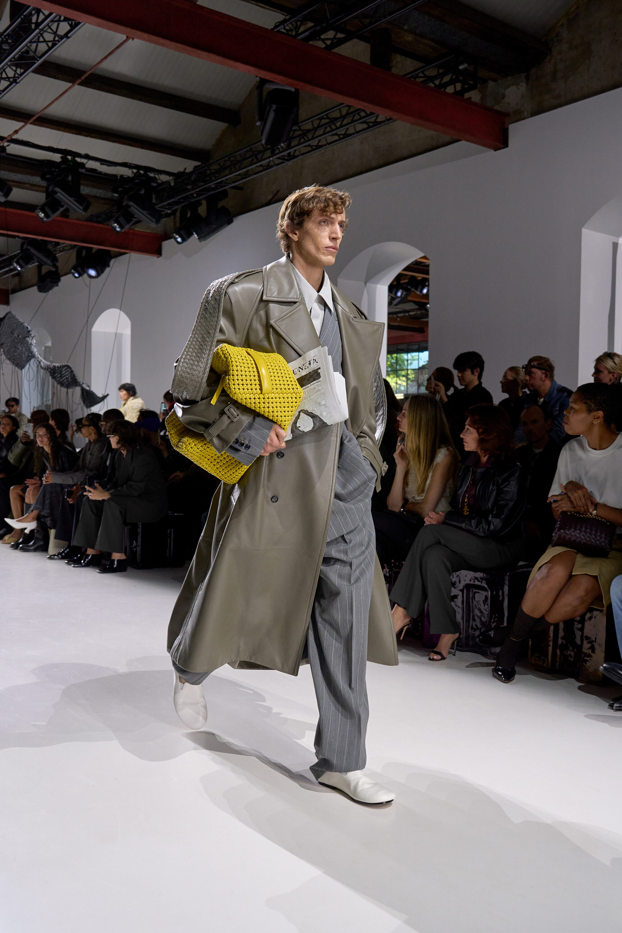 2026 年春夏米蘭時裝週,Bottega Veneta 再度選址於米蘭有百年歷史的古代工廠 Fabbrica Orobia 登場,場外聚集了明星、媒體共襄盛舉,場內卻是一片沉靜的期待,這一夜,Louise Trotter 以 Bottega Veneta 新任創意總監的身份,正式揭開她的首個系列。