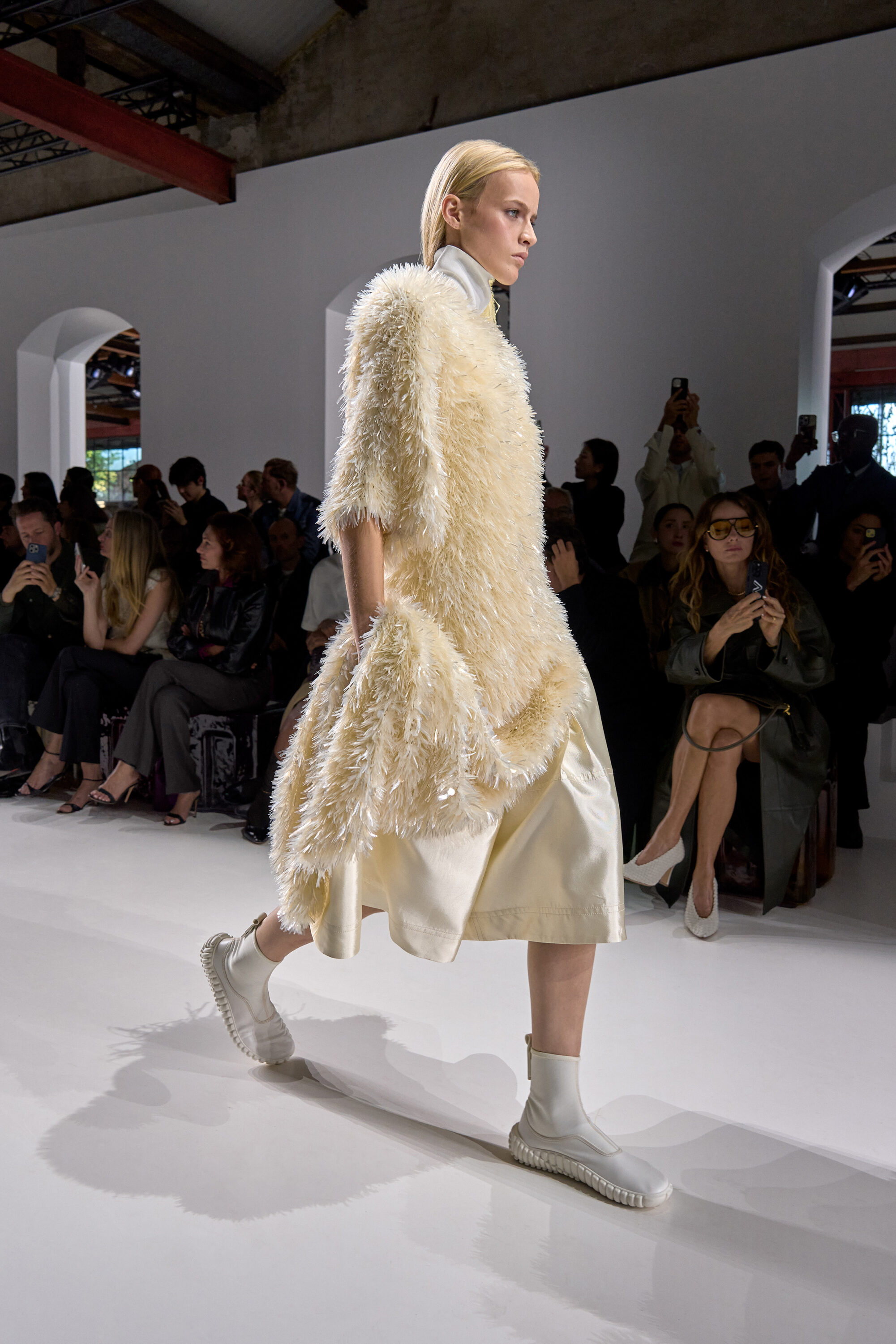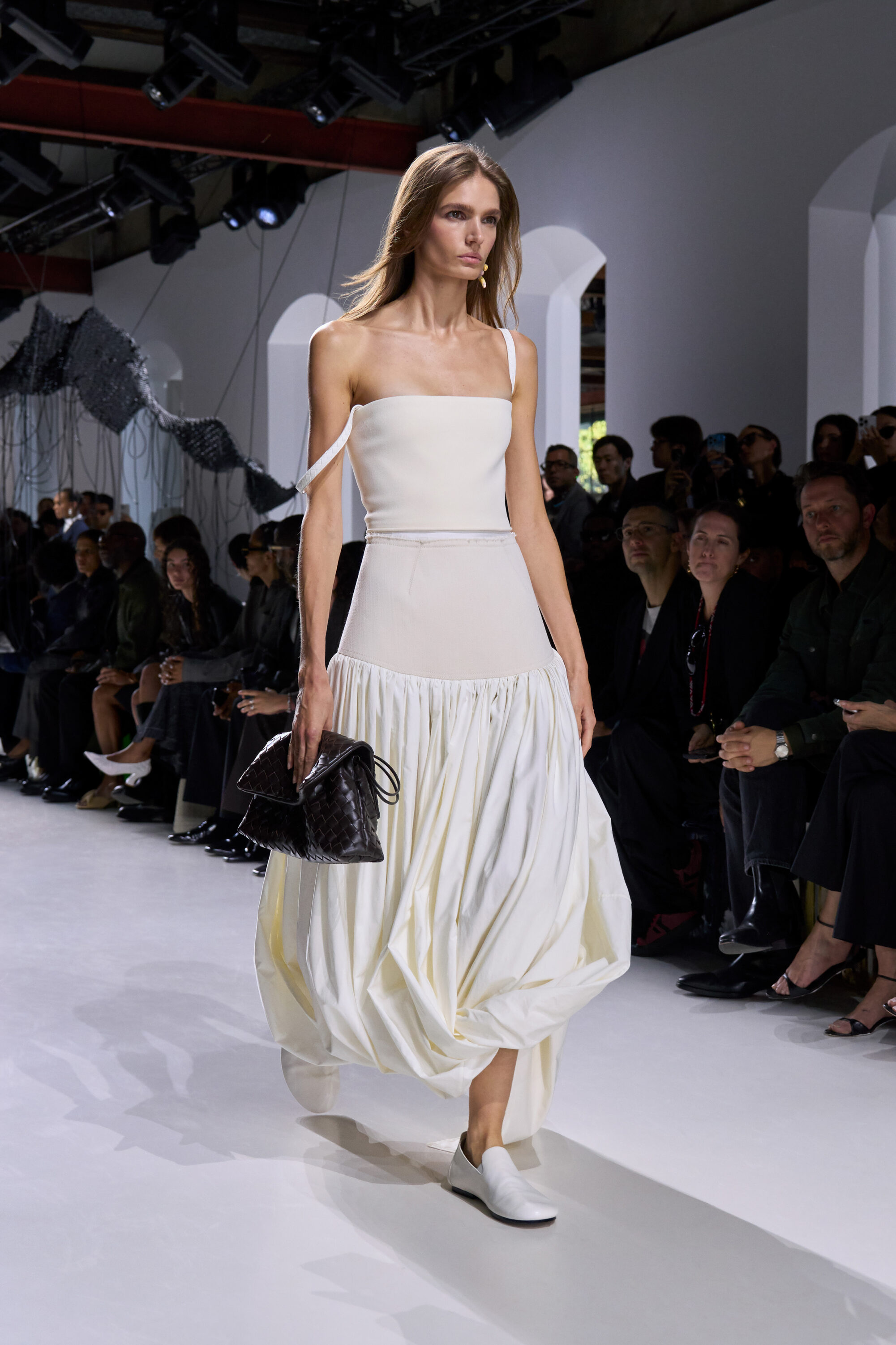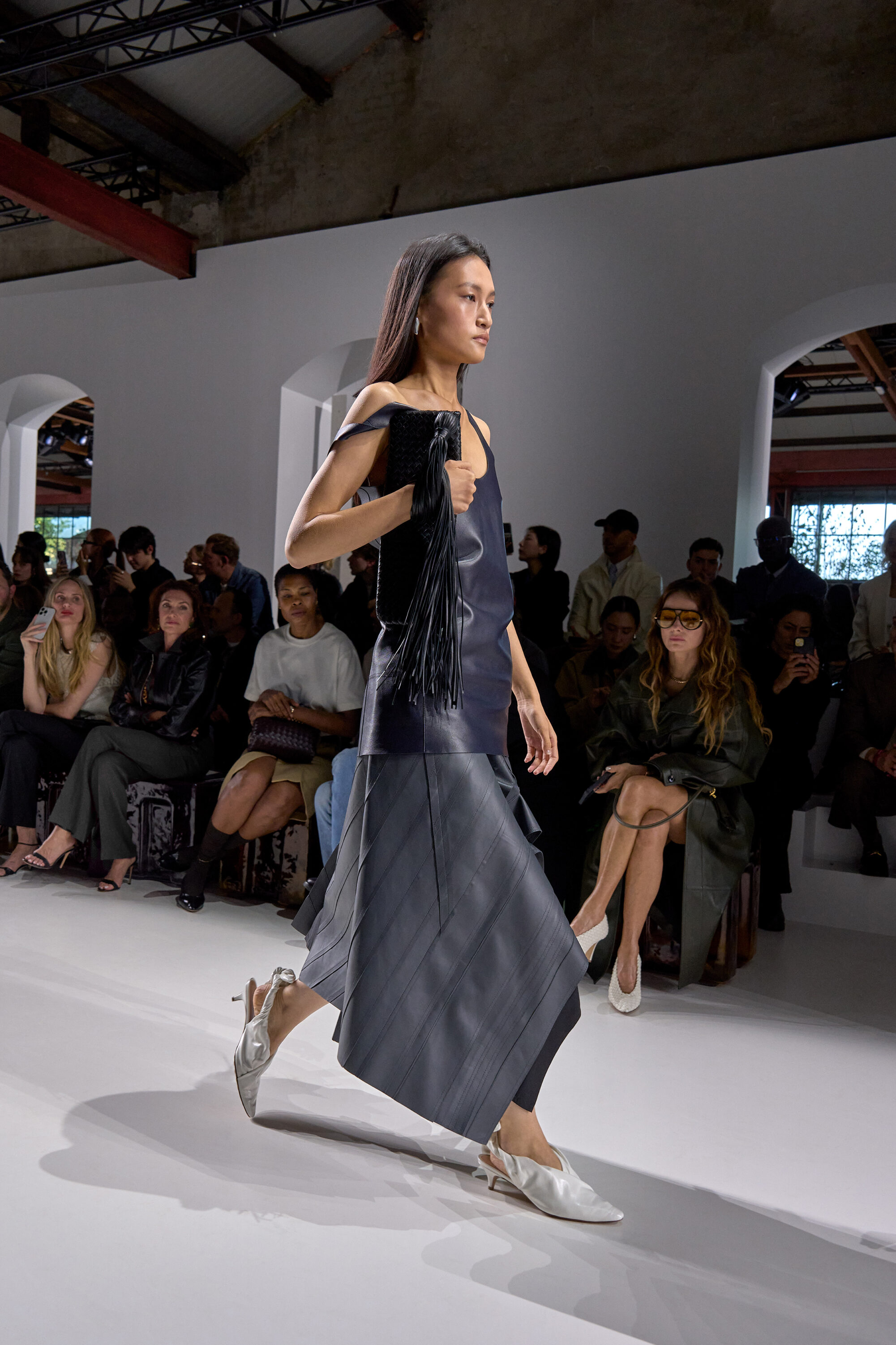 2026 年春夏米蘭時裝週,Bottega Veneta 再度選址於米蘭有百年歷史的古代工廠 Fabbrica Orobia 登場,場外聚集了明星、媒體共襄盛舉,場內卻是一片沉靜的期待,這一夜,Louise Trotter 以 Bottega Veneta 新任創意總監的身份,正式揭開她的首個系列。