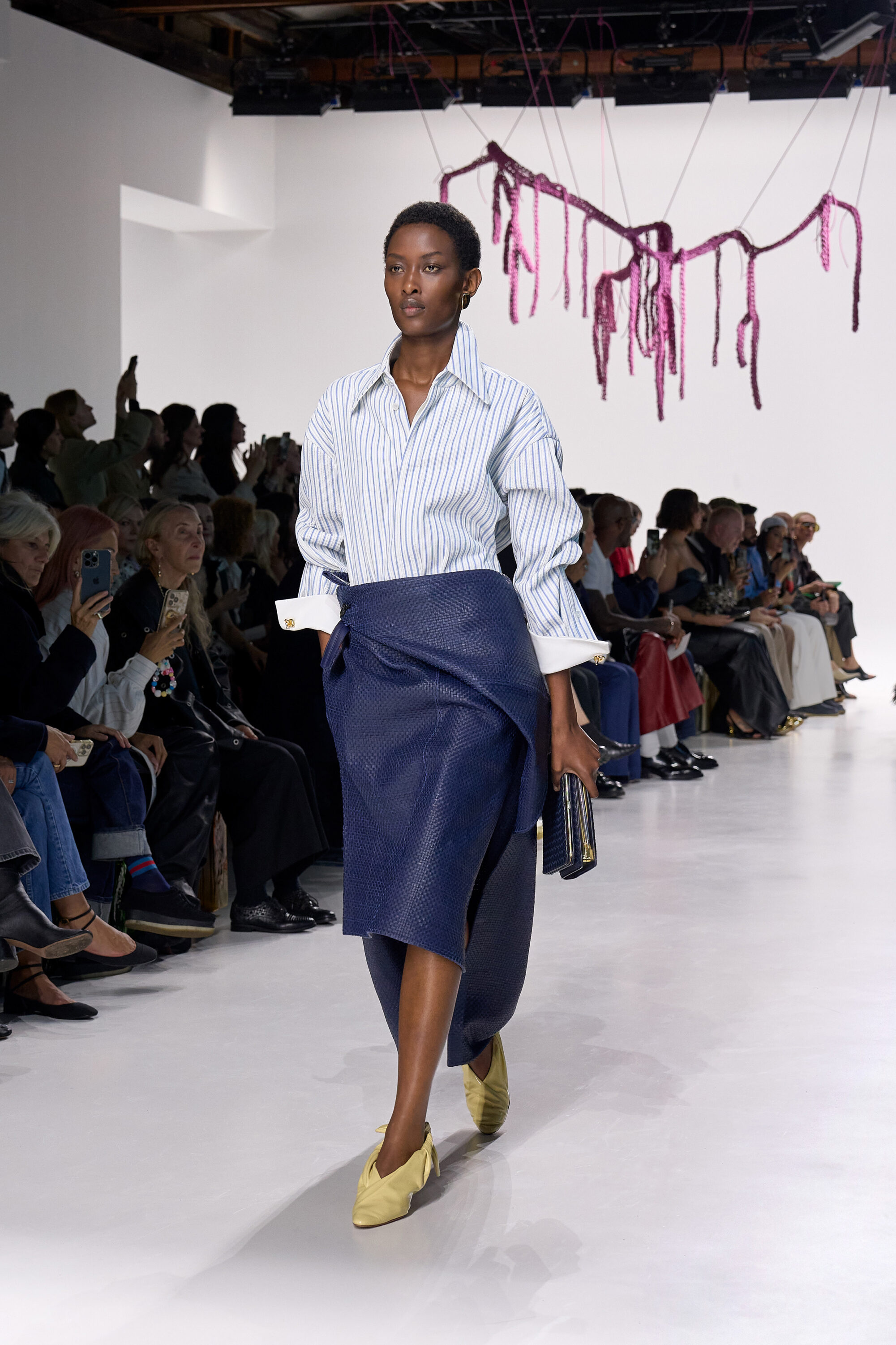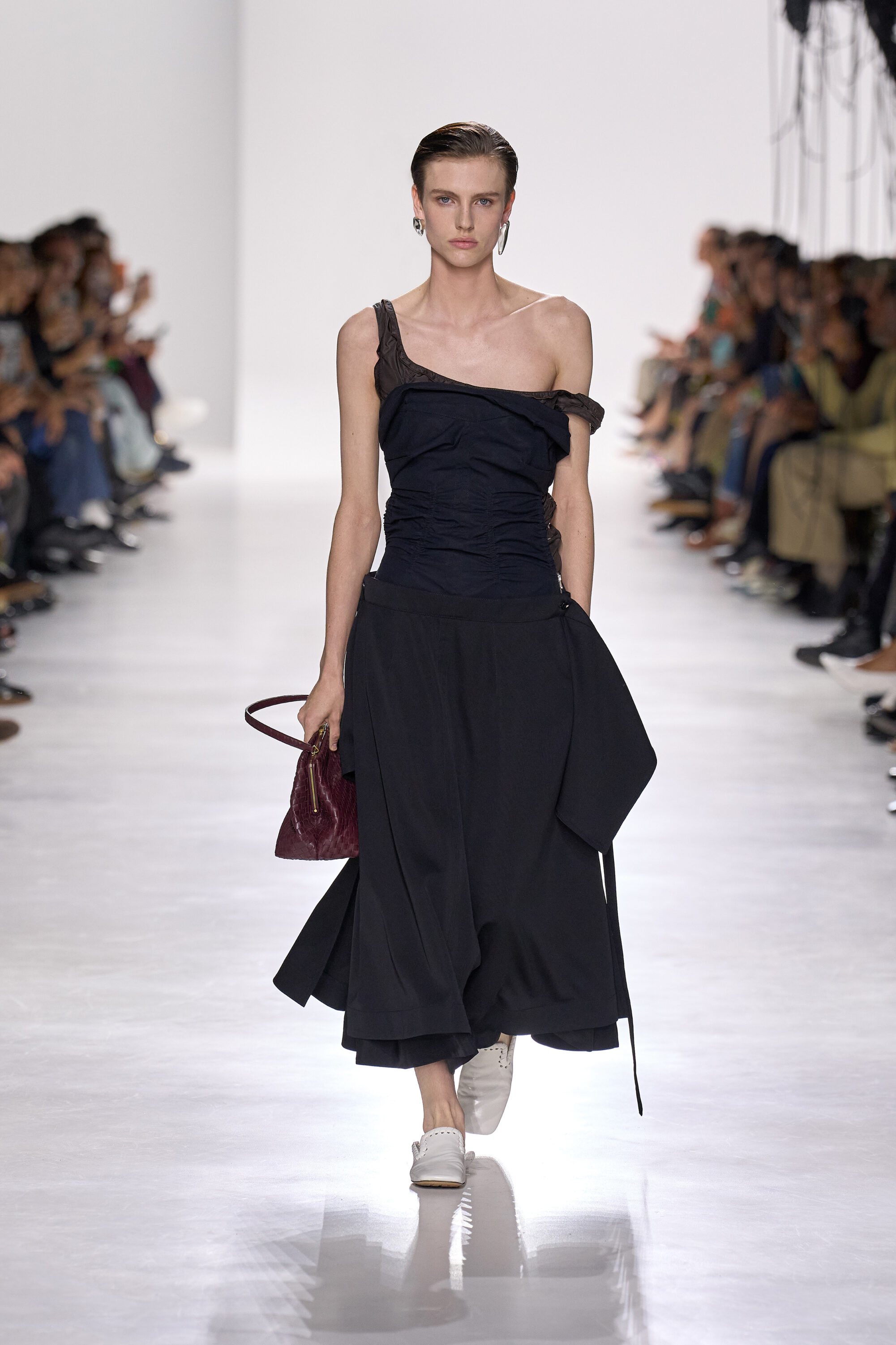 不同於前任創意總監 Daniel Lee 與 Matthieu Blazy 對「視覺衝擊」的追求, Louise Trotter 將焦點放在女性的真實需求,她設計的西裝外套以夏季輕盈面料製作而成,腰身輕輕收斂,寬鬆卻不失精緻;納帕皮革風衣、棉質襯裡晚禮服和雕塑般的針織衫肩線,正因為注入了男裝剪裁的關係,輕輕鬆鬆就能讓舒適與力量並存。