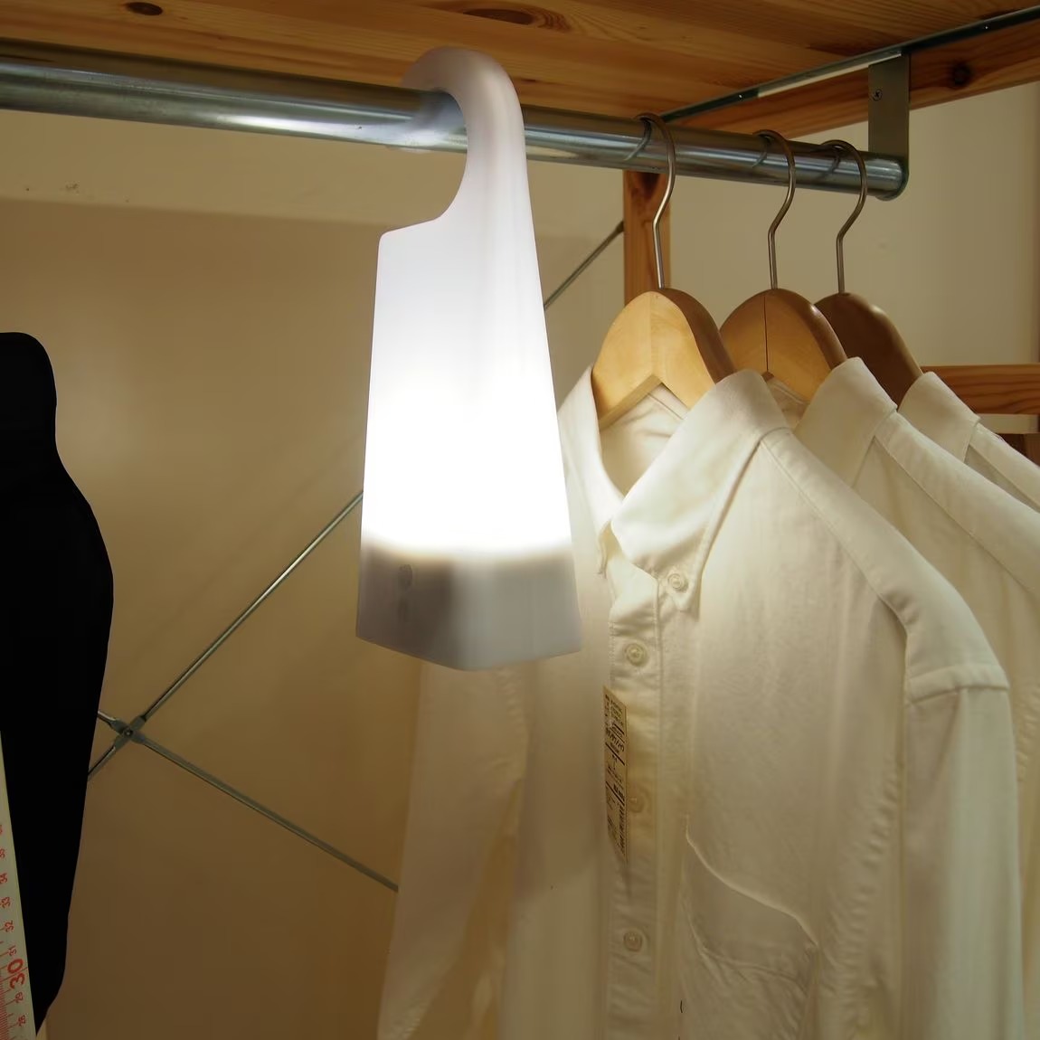 一眼就被這款手提 LED 燈吸引了目光,手柄是特別的衣架形狀,可以懸掛在家中各個角落,比如衣櫃、牆壁掛鉤處,如此一來就不用摸黑找衣服,或者夜間上廁所、哺乳等等光線也不會太亮,可連續照明 6 小時左右。