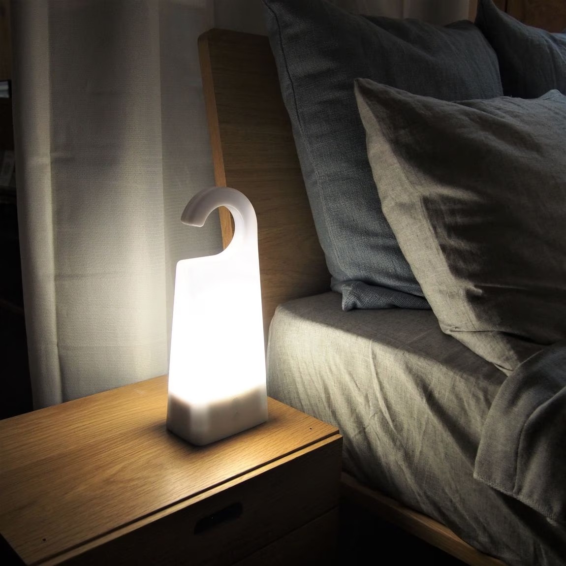 這款 LED 定時燈外殼是柔軟有彈性的矽膠,有貼心定時功能,30 或 60 分鐘後會自動漸暗熄滅,還有兩段亮度可以調整,非常適合作為床頭小夜燈。