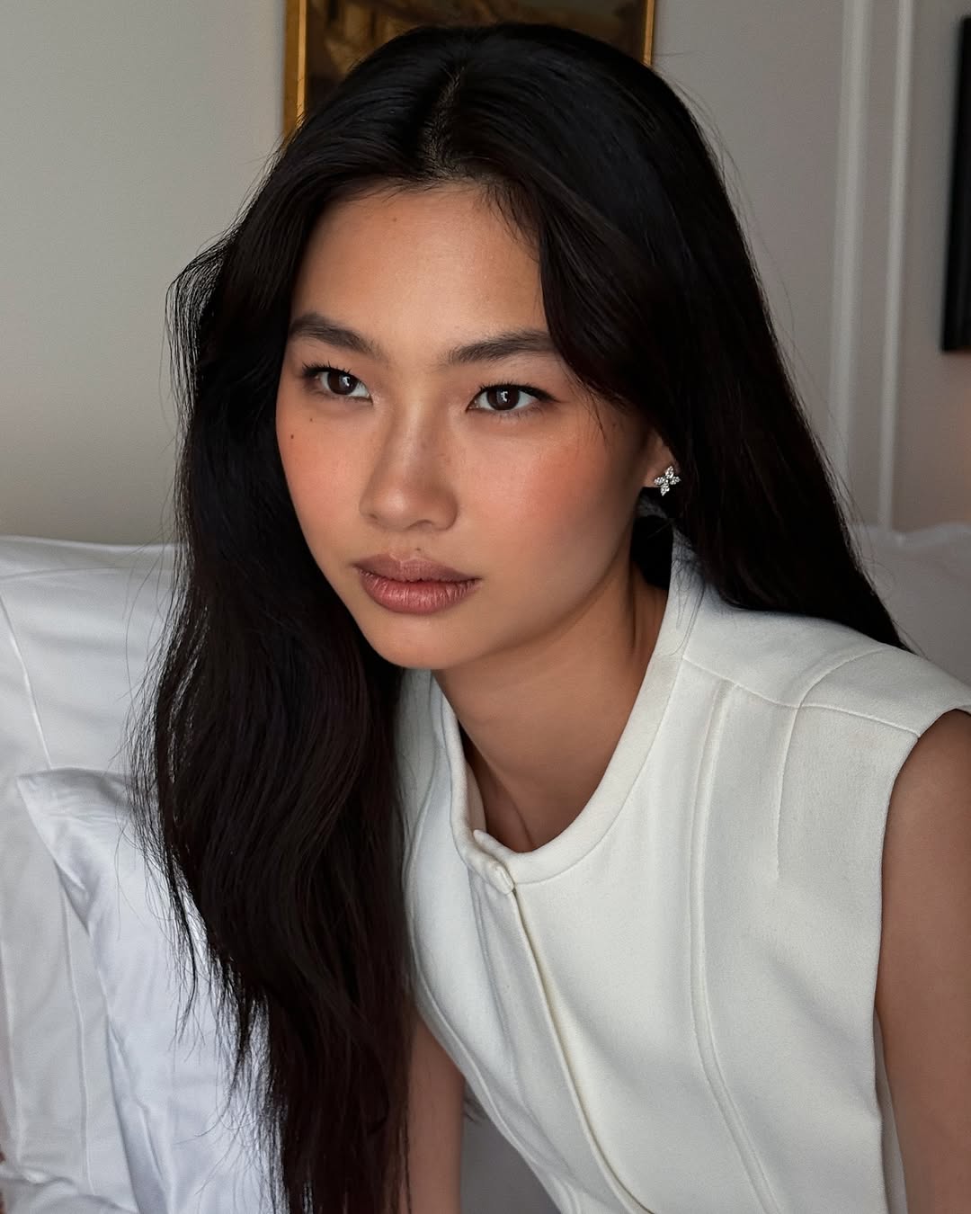 鄭浩妍出席 Louis Vuitton 度假系列大秀時的妝容也是淡淡的裸調,很有烤土司的味道。