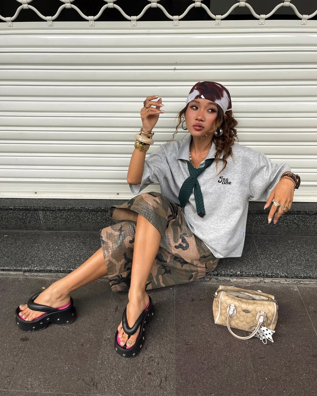 看完 @roxannelele 許多創意的穿搭照,是否也激起了你一些不一樣的靈感呢?除了拍攝手法,她的穿搭也很值得一看。結合了時下年輕世代最愛的流行單品,像是領帶、百褶裙、短版合身上衣、過膝七分褲、球衣,還有寬寬鬆鬆的低腰繭型褲,她的穿搭酷帥中帶點甜美。