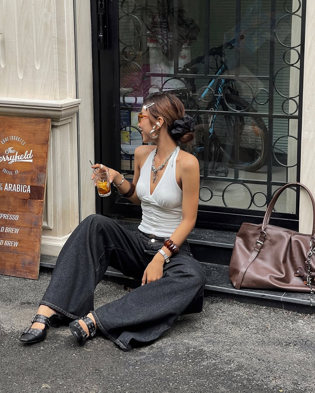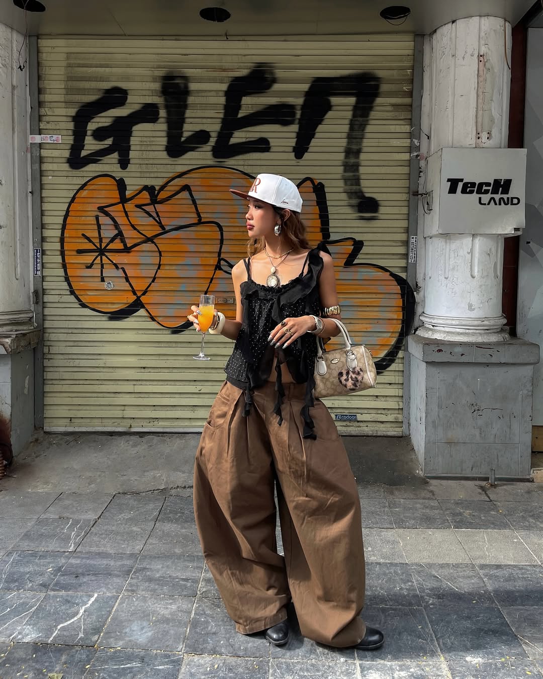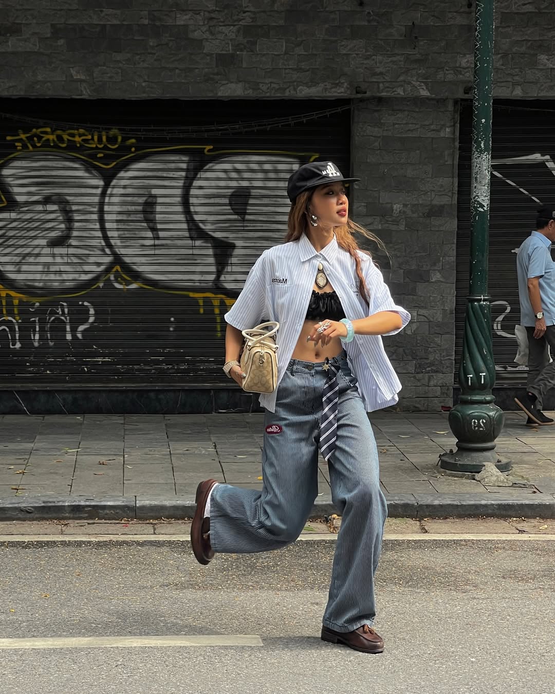 @roxannelele 選擇中性個性的單品時,比如 Baggy Jeans,就會混搭帶點性感的上衣,小露蠻腰,讓整體造型又辣又帥;或者上身的襯衫刻意只扣第一顆,其餘的敞開來穿,露出內搭,率性又辣辣的氣息立刻就出來了。