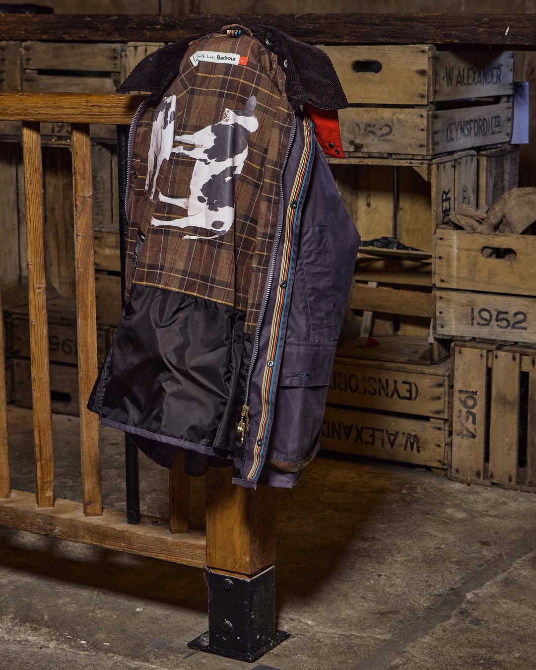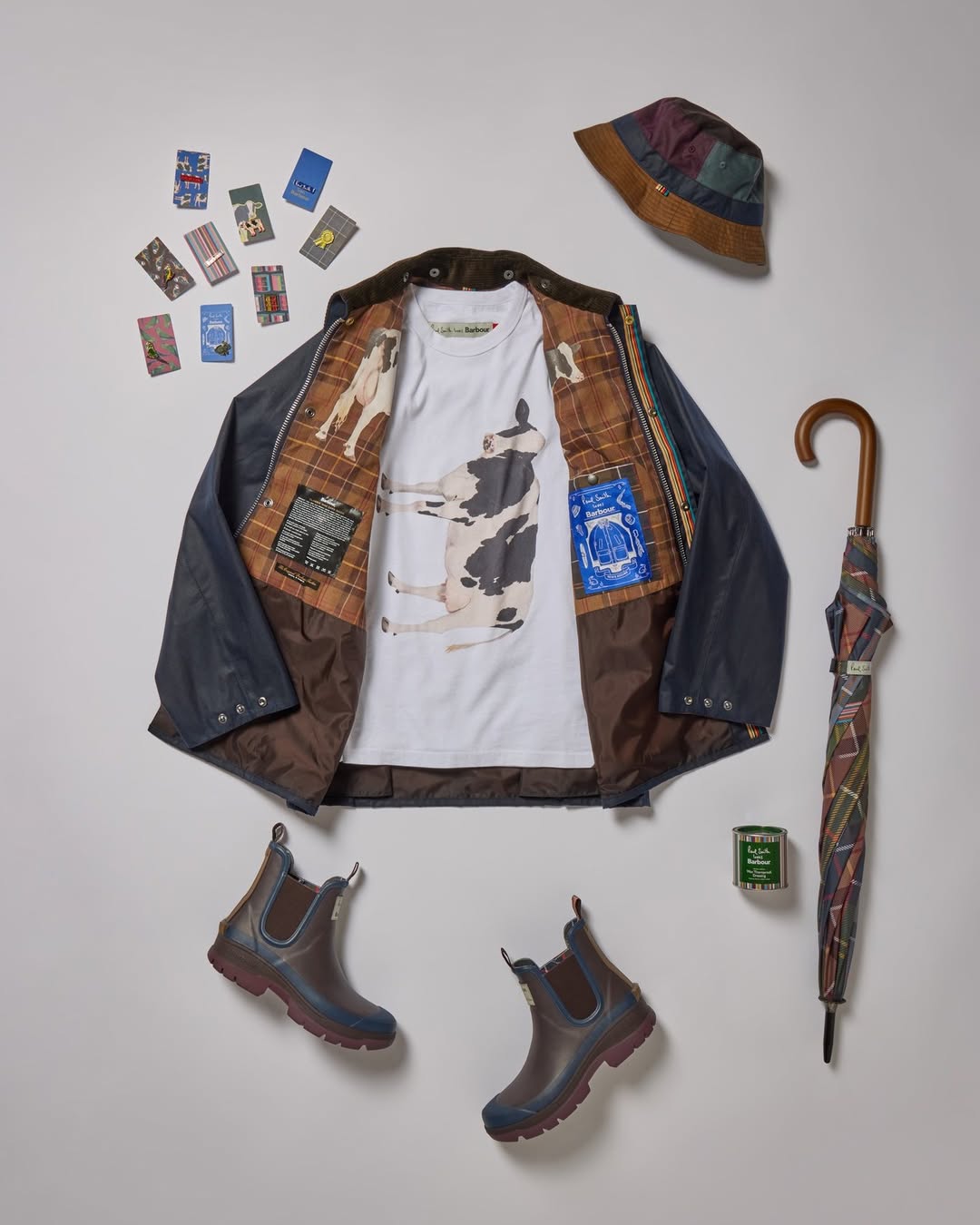 Paul Smith loves Barbour 系列以英國鄉村嘉年華為靈感,讓經典蠟布外套染上繽紛氣息,系列共 33 件單品,從 Bedale 外套、毛衣到傘具….,融合了 Barbour 的實用輪廓與 Paul Smith 標誌性的彩條細節。