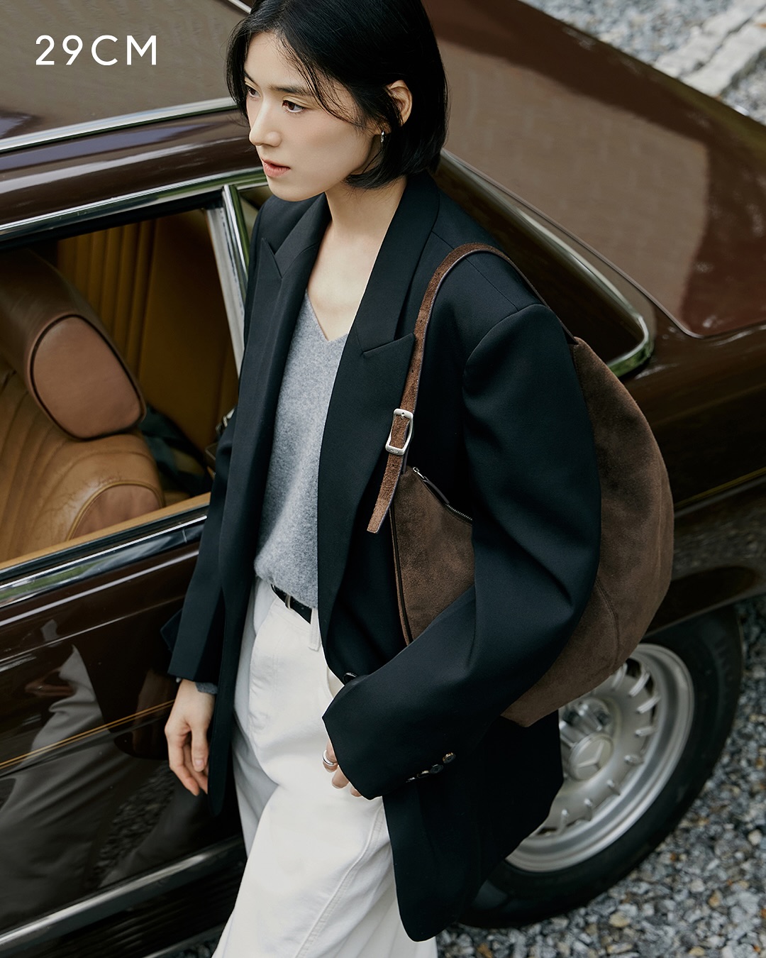 換上麂皮外套和淺色牛仔褲,則多了一份休閒感,很適合上班族複製貼上。