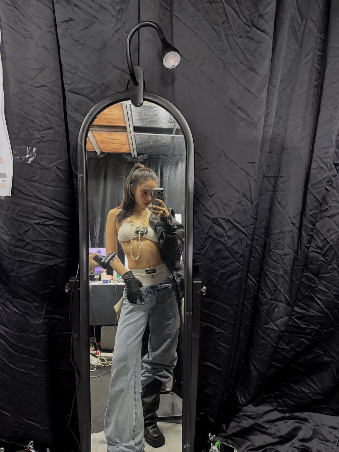 內衣外穿,再套上皮革外套,Jennie 演繹最辣小香造型