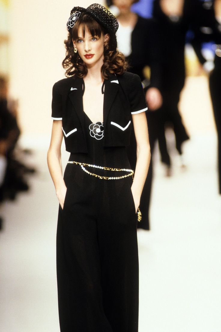 1995 春夏系列同樣是出自 Karl Lagerfeld 之手,有不少短外套搭配內衣的 Look,風格更明亮俏皮,當中也藏了不少經典香奈兒元素,像是鏈條、粗花呢、珍珠、山茶花胸針等元素。