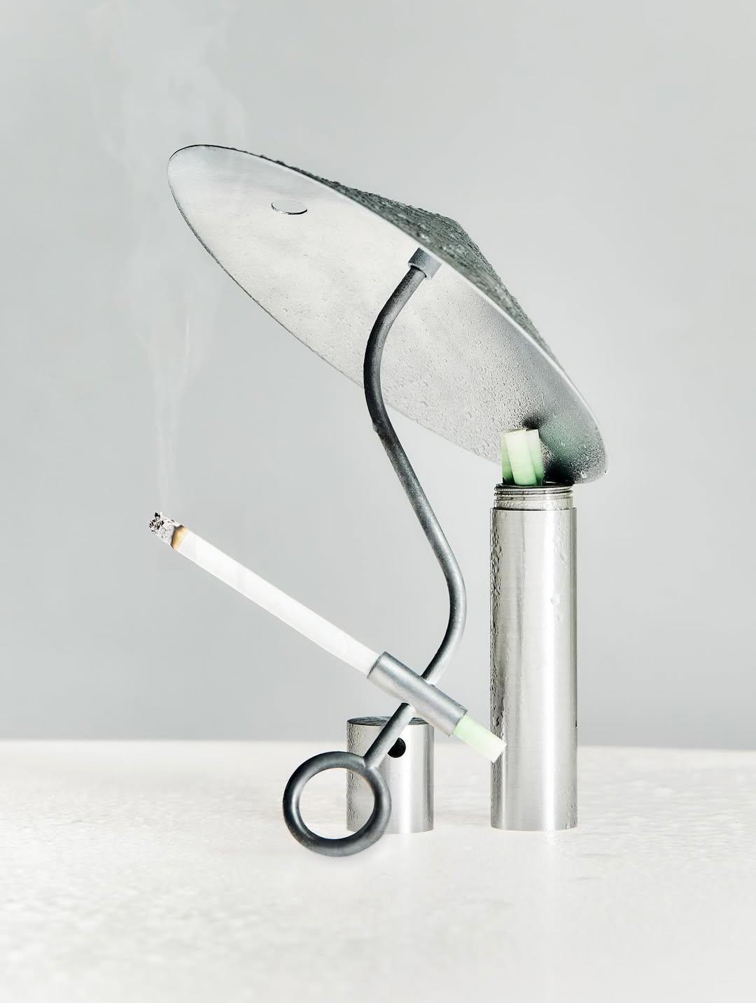 問及平常的靈感多來自哪裡,Yeonsu Na 表示大部分靈感都源自生活中的片刻,用自己的想法去延伸、詮釋,加上一點幽默感,最後轉化成作品。而說到他的畢業作品集” Emerging Absurdity”系列,一共有五件,除了 MagSafe 化妝盒外,其他作品也相當有趣,像是 Dental floss ring 牙線戒指、Cigarette Umbrell 香菸雨傘、Signature ruler 簽名尺、Glue stick candle holder。