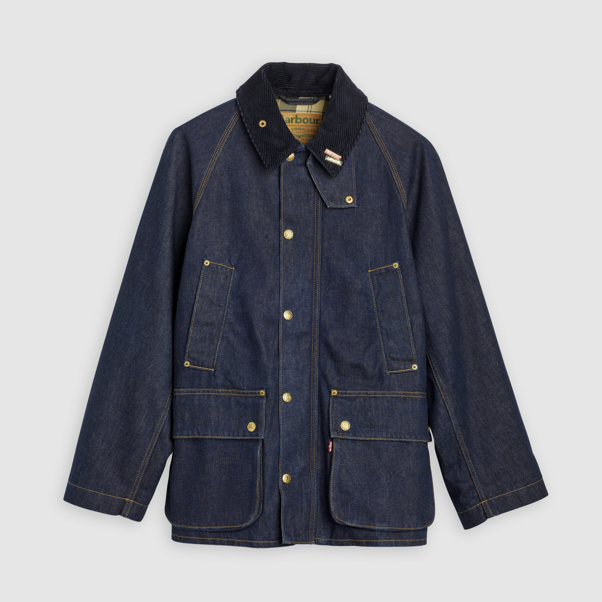 Bedale 外套則推出了兩種截然不同的版本──深海軍藍蠟布配黑色燈芯絨領與現代格紋內裡,散發俐落簡單的質感;另一款則以 Levi’s® 工裝為靈感,加入三針車線、仿舊黃銅金屬件與樹脂洗水處理,呈現歷久彌新的質感。