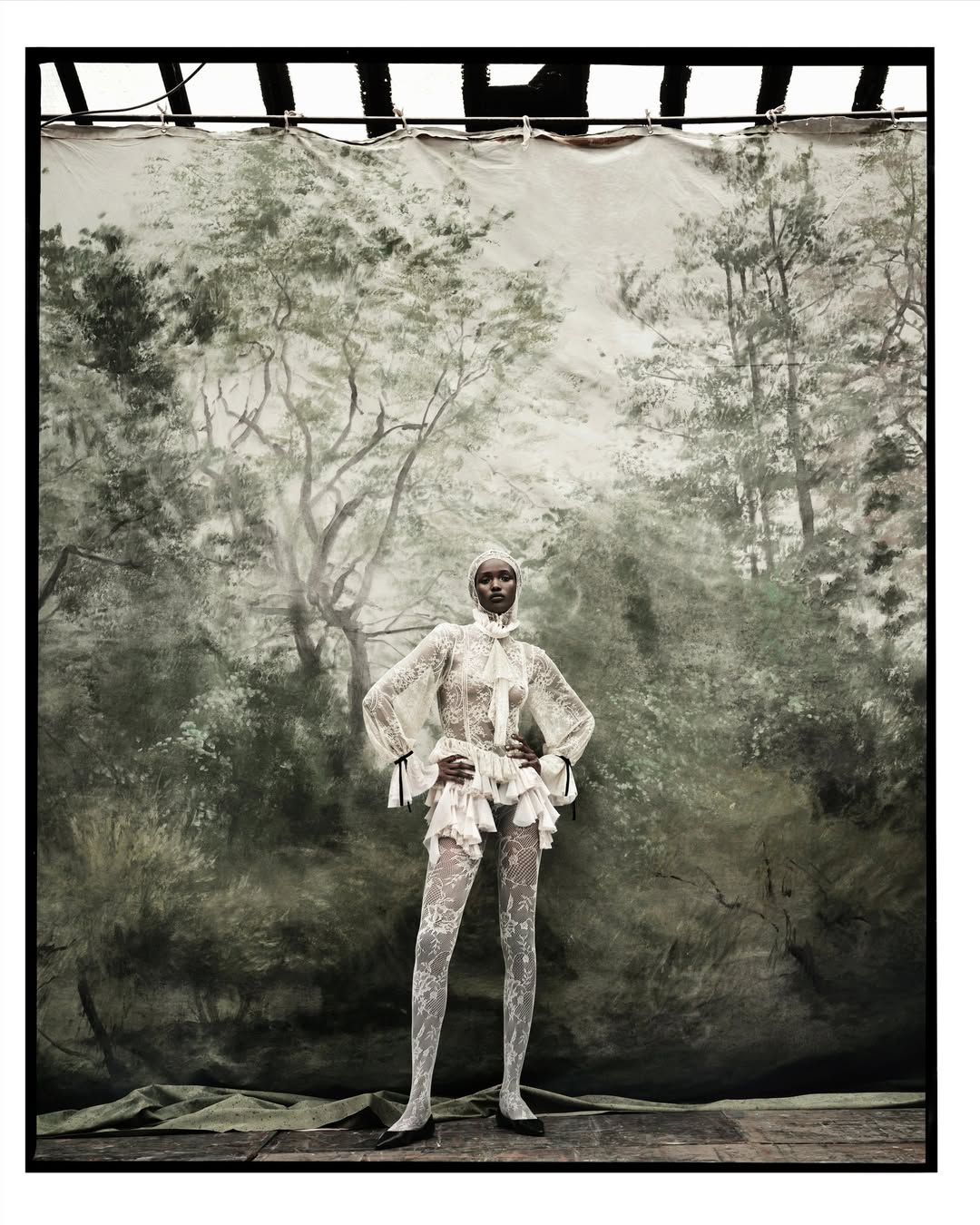 該系列形象廣告由向來以詭譎怪誕風格聞名的匈牙利攝影師 Szilveszter Mako 掌鏡,Yura Romaniuk、Signe Michaelsson 與 Clara Denison 共同演繹,場景設計則出自 Edith Di Monda 之手,第一眼看過去,只能說被深深震撼到了,彷彿鐘樓怪人般扭曲的背部、貼上超現實藝術家達利標誌性的翹鬍子、中世紀瘟疫醫生所配戴的鳥喙面具….,畫面簡潔有力又不失氛圍感,完美呼應了這個系列「介於夢境與現實之間」的主題。