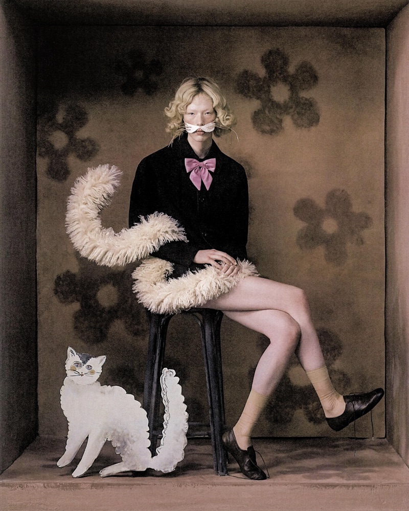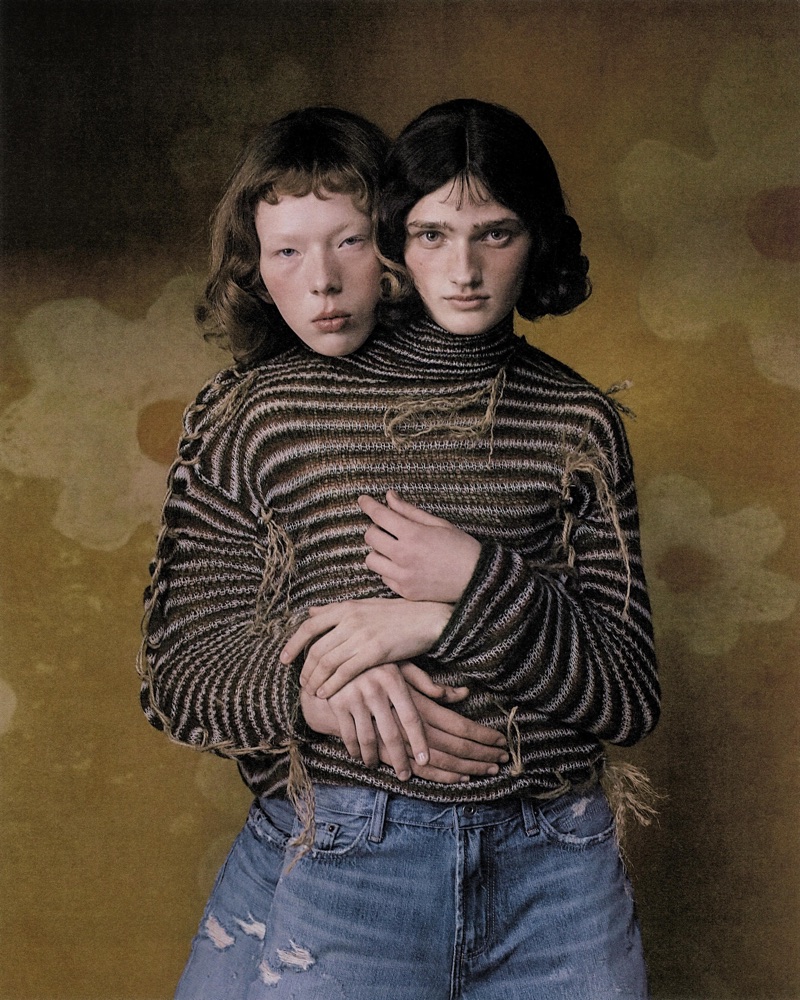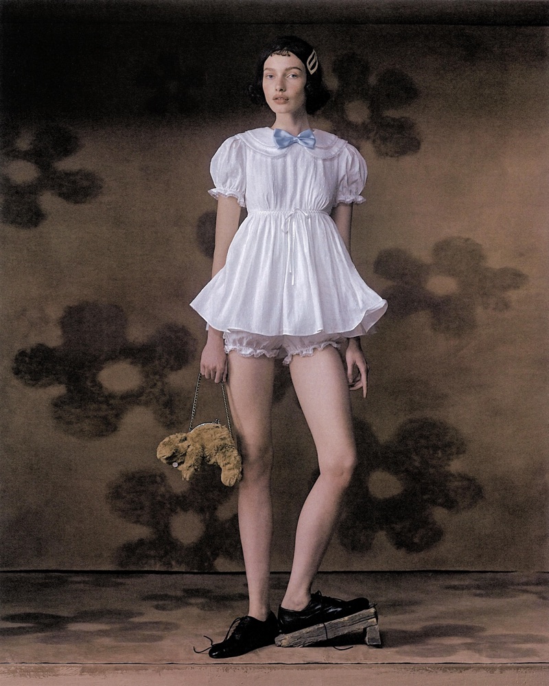 該系列廣告由向來以詭譎怪誕風格聞名的匈牙利攝影師 Szilveszter Mako 掌鏡,Yura Romaniuk、Signe Michaelsson 與 Clara Denison 共同演繹,場景設計則出自 Edith Di Monda 之手,第一眼看過去,只能說被深深震撼到了,彷彿鐘樓怪人般扭曲的背部、貼上超現實藝術家達利標誌性的翹鬍子、中世紀瘟疫醫生所配戴的鳥喙面具….,畫面簡潔有力又不失氛圍,完美呼應了這個系列「介於夢境與現實之間」的主題。