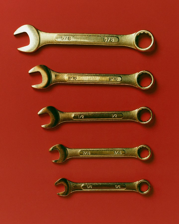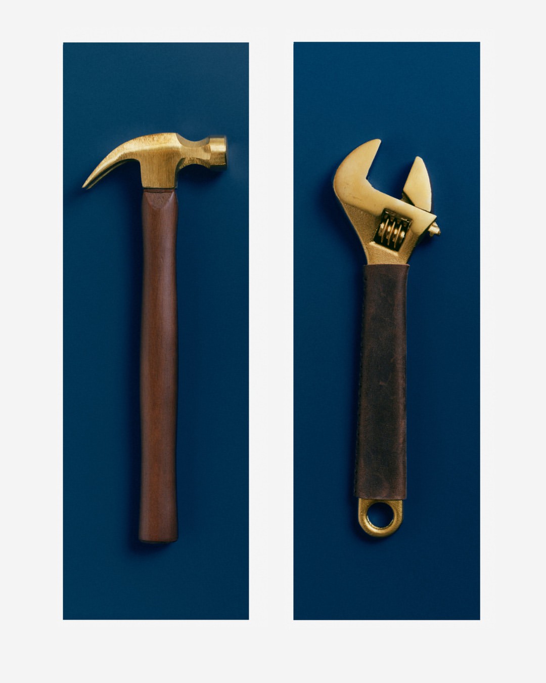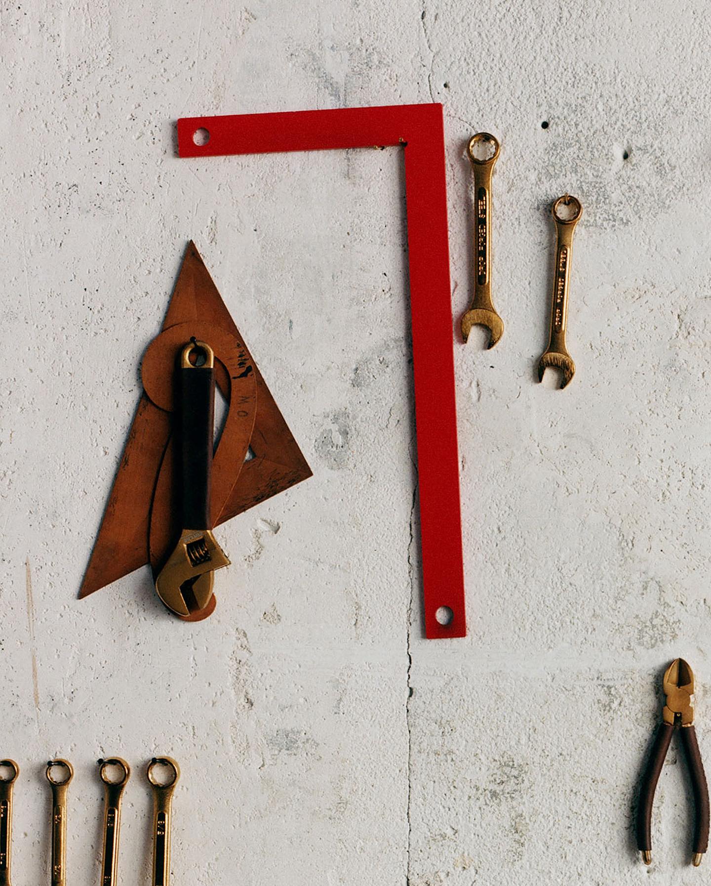 從鍍金扳手、木柄螺絲起子、工具箱到連身工作褲,每個物件都展現出經得起時間考驗的耐用度與細節講究。其中技術棉、蠟感皮革與厚實金屬等材質的混搭,更是大大強調了耐用與機能性,延續了經典工匠文化中的溫潤與剛性外,每個零件也都具有實用價值。