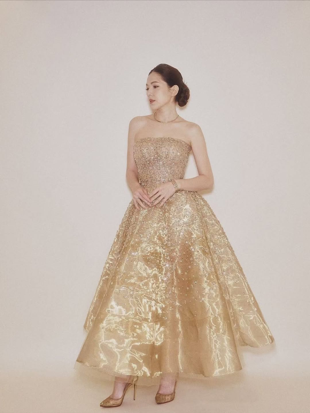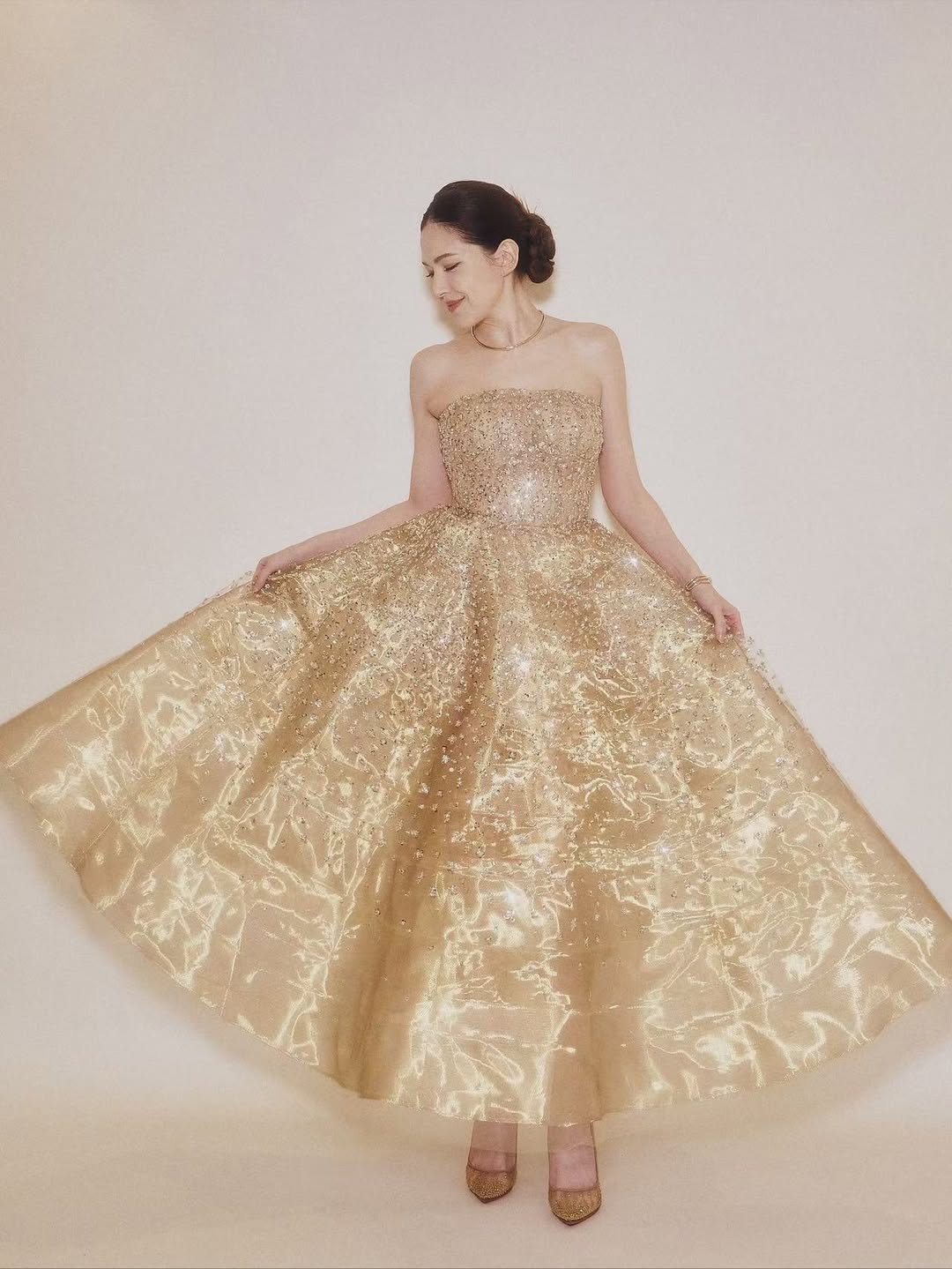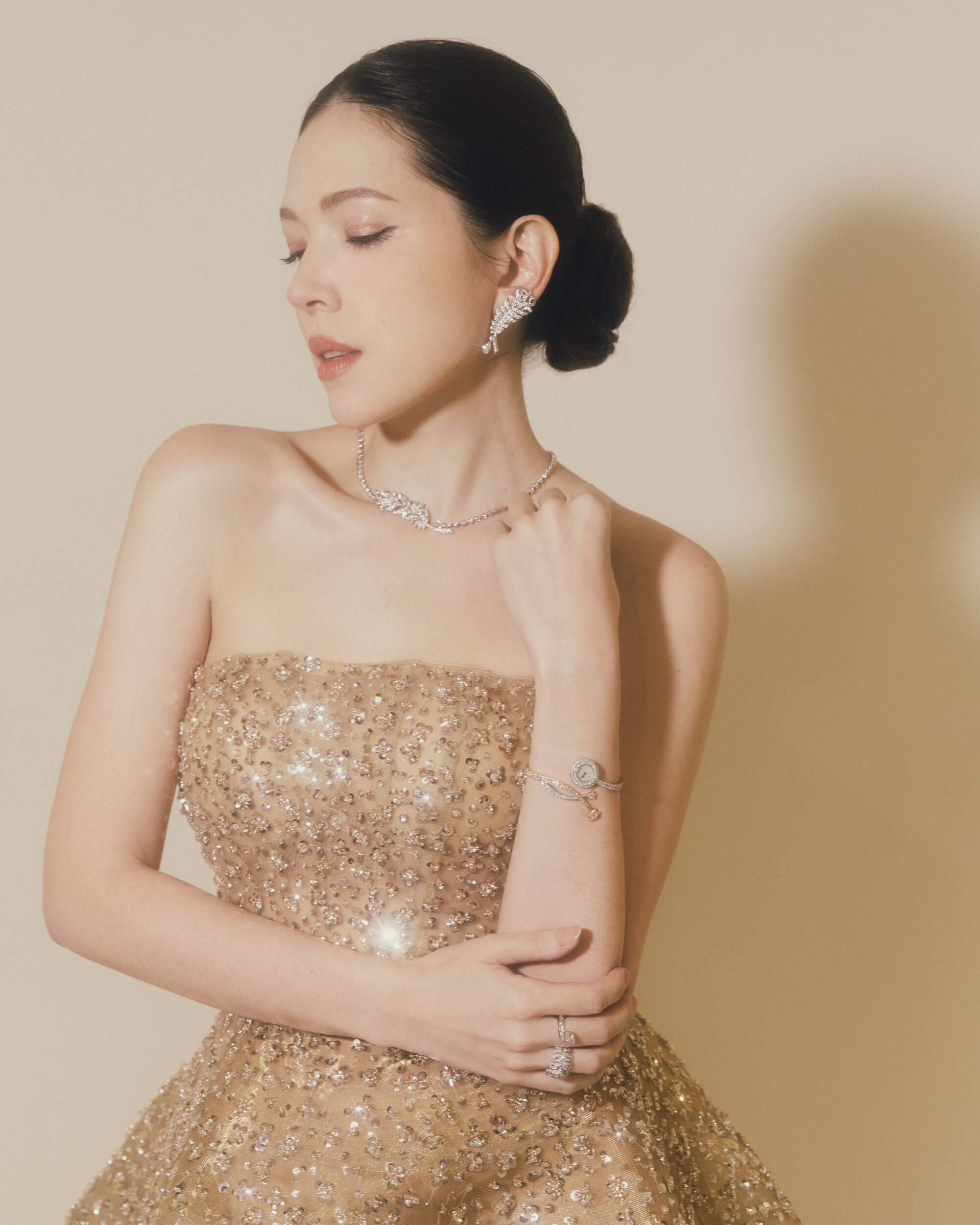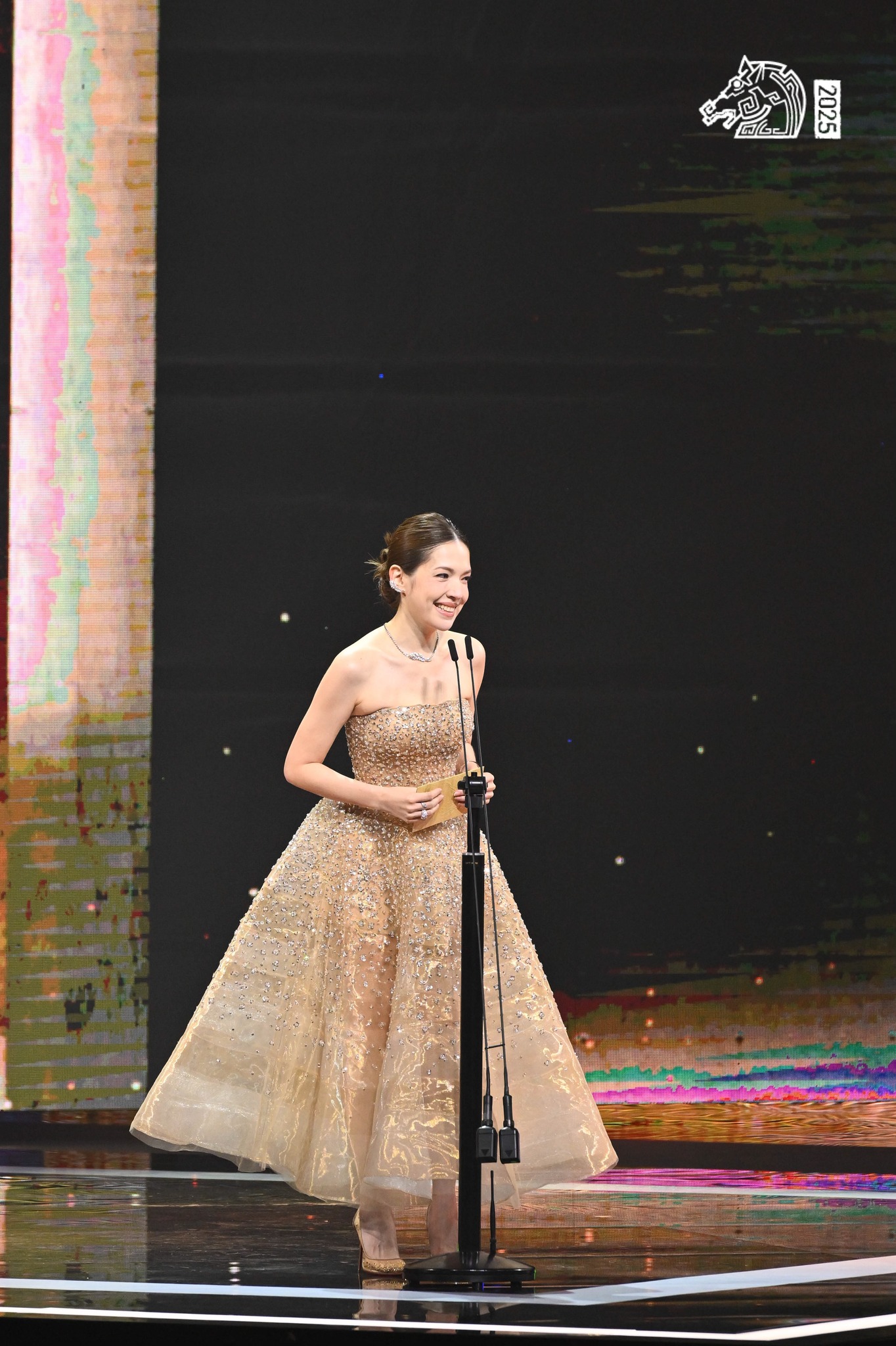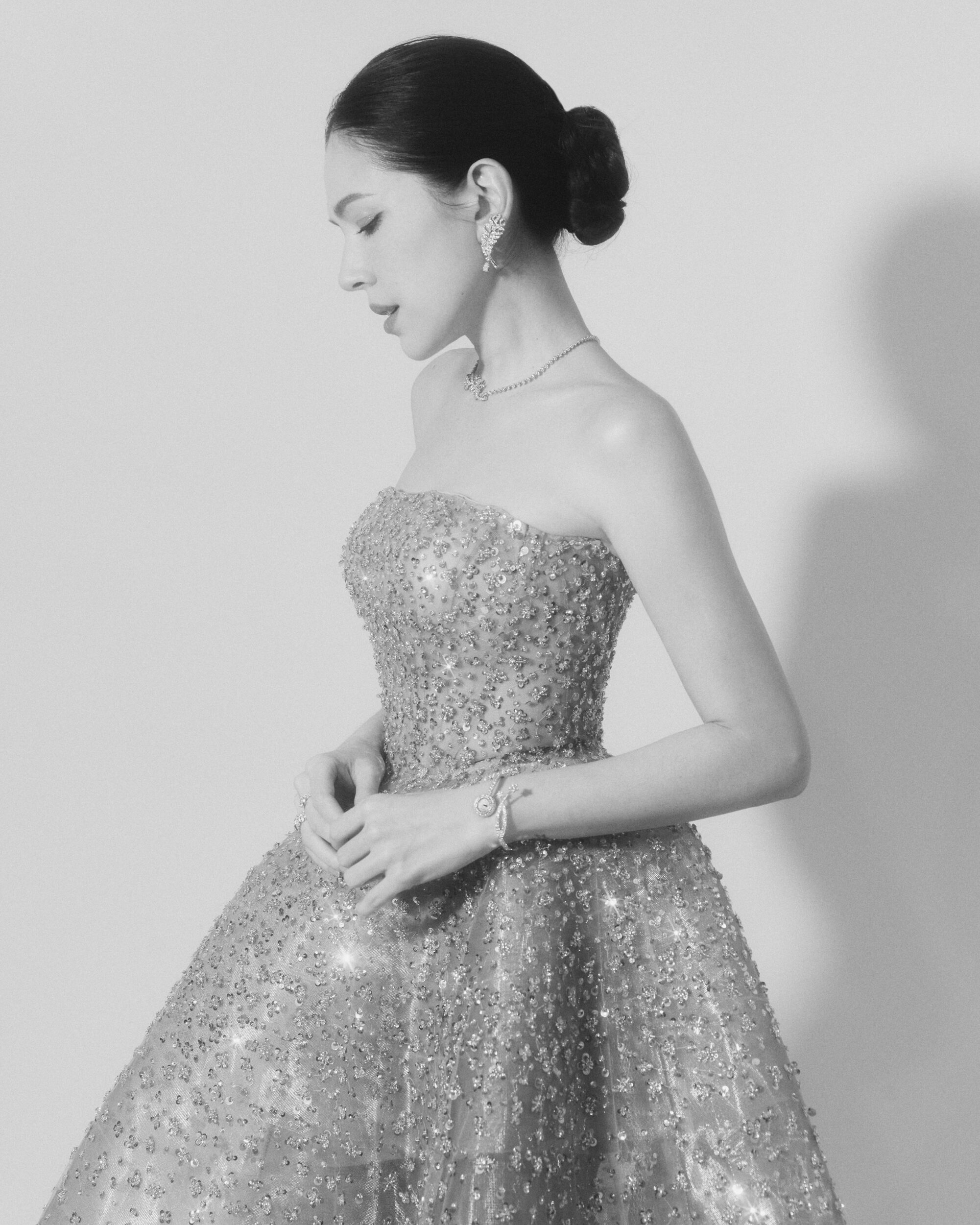 同樣是頒獎嘉賓,許瑋甯身穿 Nicole + Felicia 2026 春夏系列登場,這件禮服佈滿手工刺繡水晶,相當夢幻,並隨著燈光微微閃耀出光芒,整個人像個小仙女,並搭配 CHANEL 頂級珠寶系列,包含 PLUME DE CHANEL 項鍊、耳環、戒指,以及 COMÈTE ENTRELACS 腕錶。