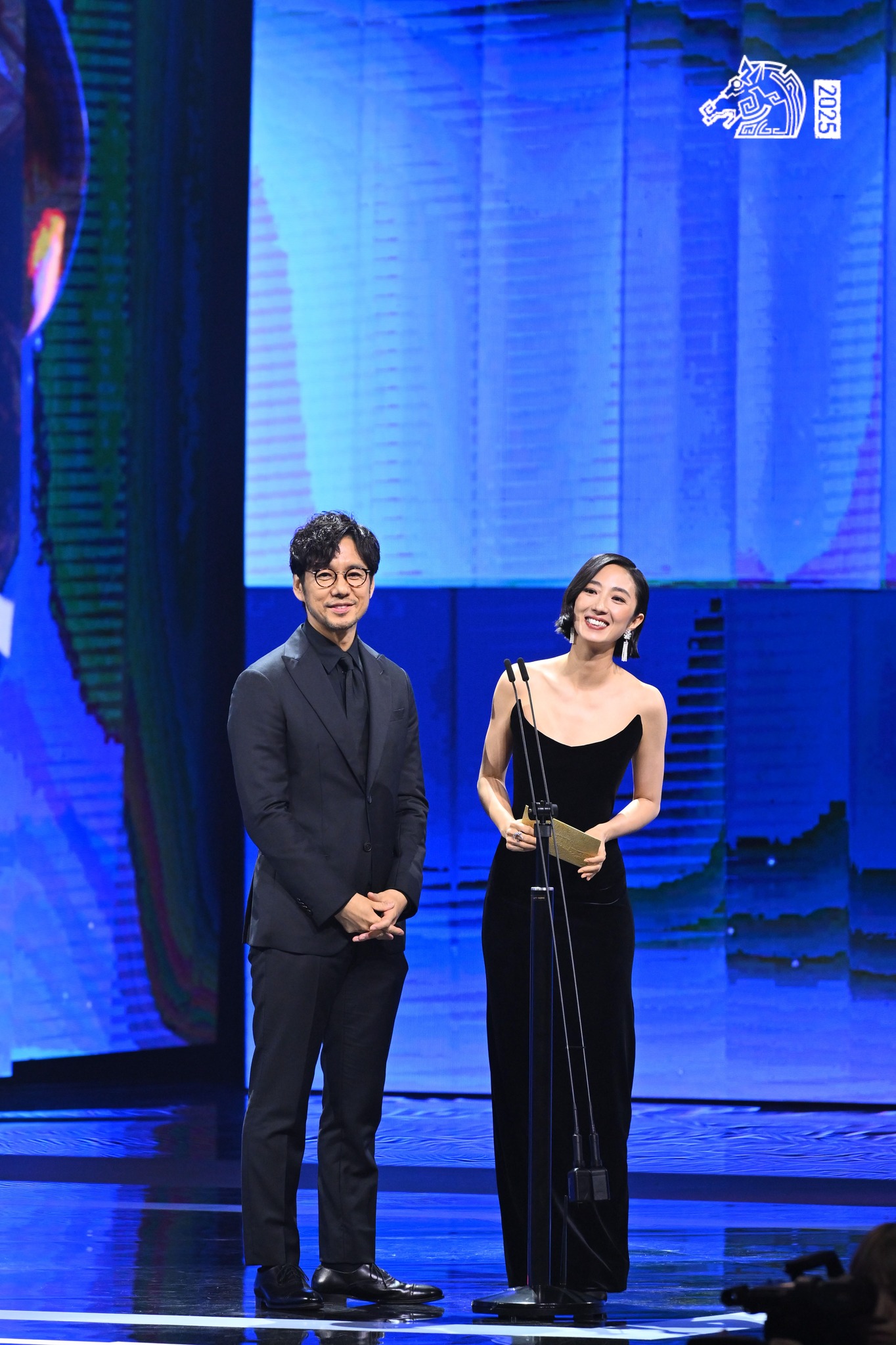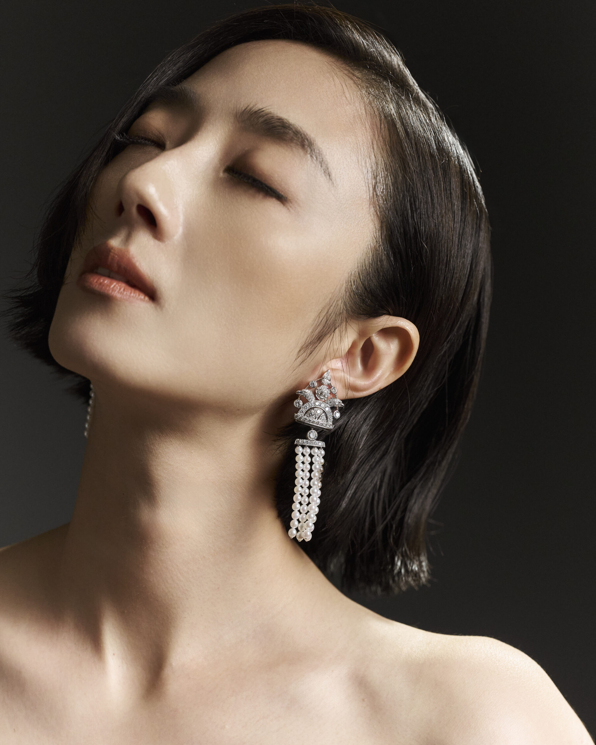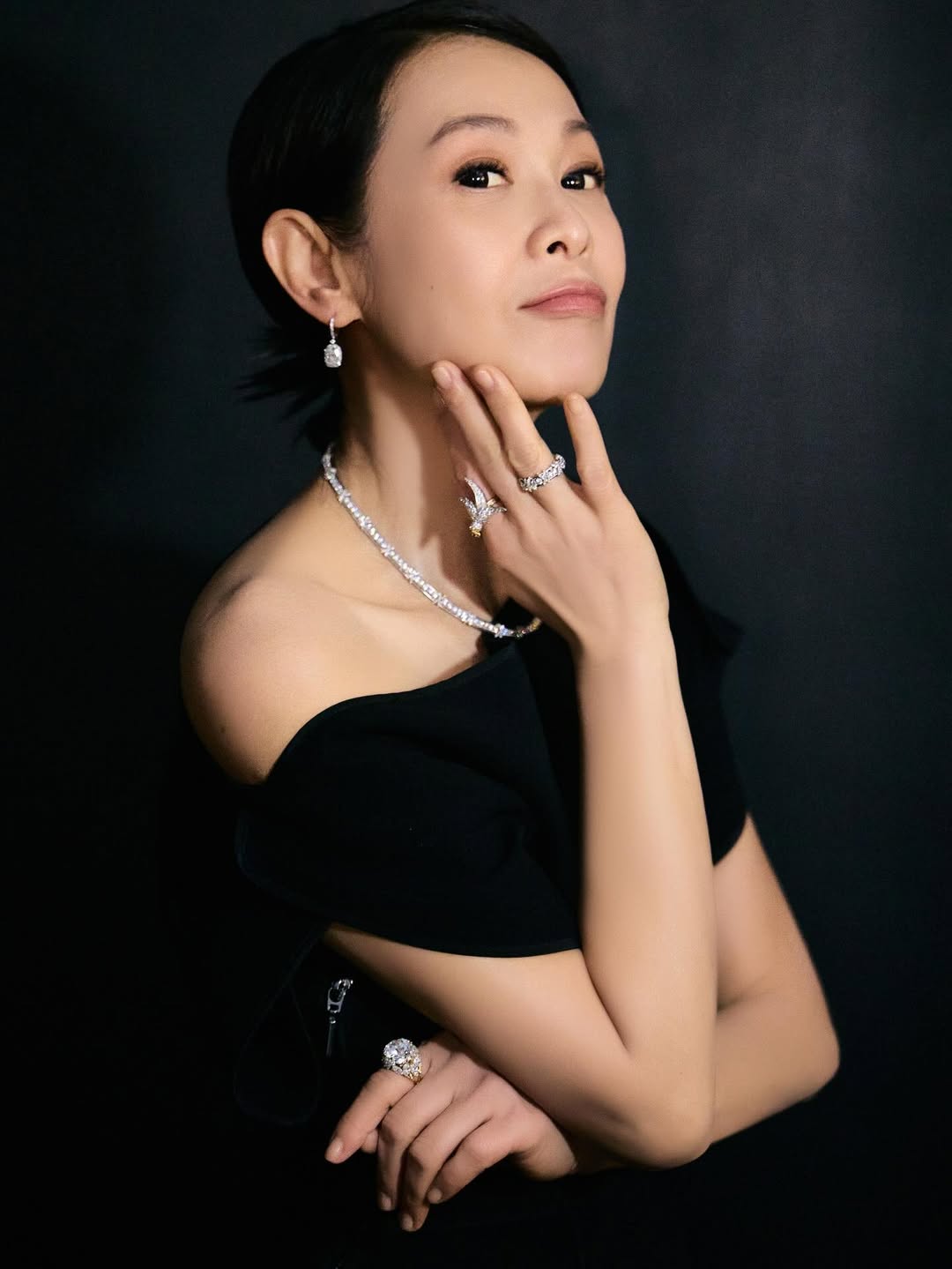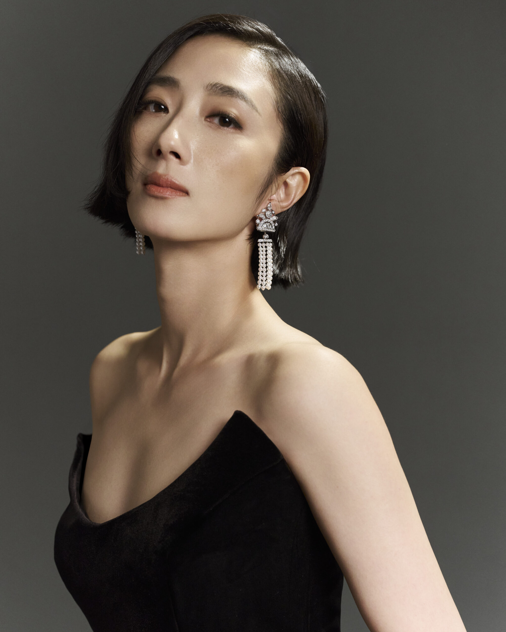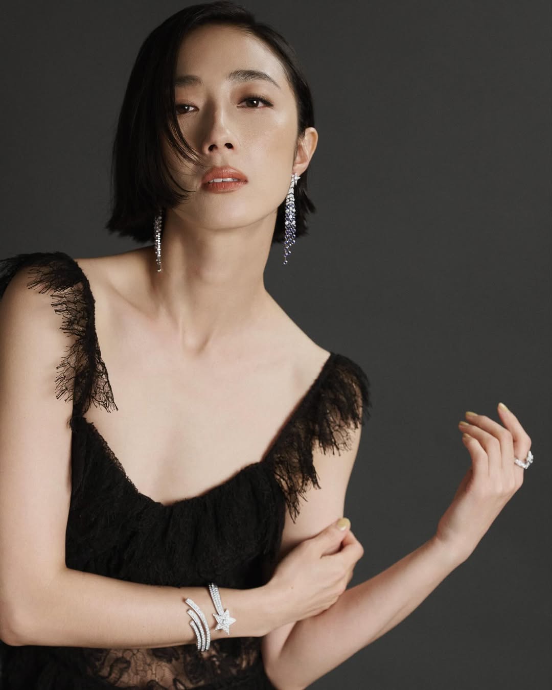 頒獎典禮上,桂綸鎂換上另外一套黑色禮服,來自 Nicole + Felicia 的設計,風格轉為簡約俐落,佩戴 CHANEL 頂級珠寶 RUSSE 圖騰耳環與 LUNE TALISMAN 戒指。