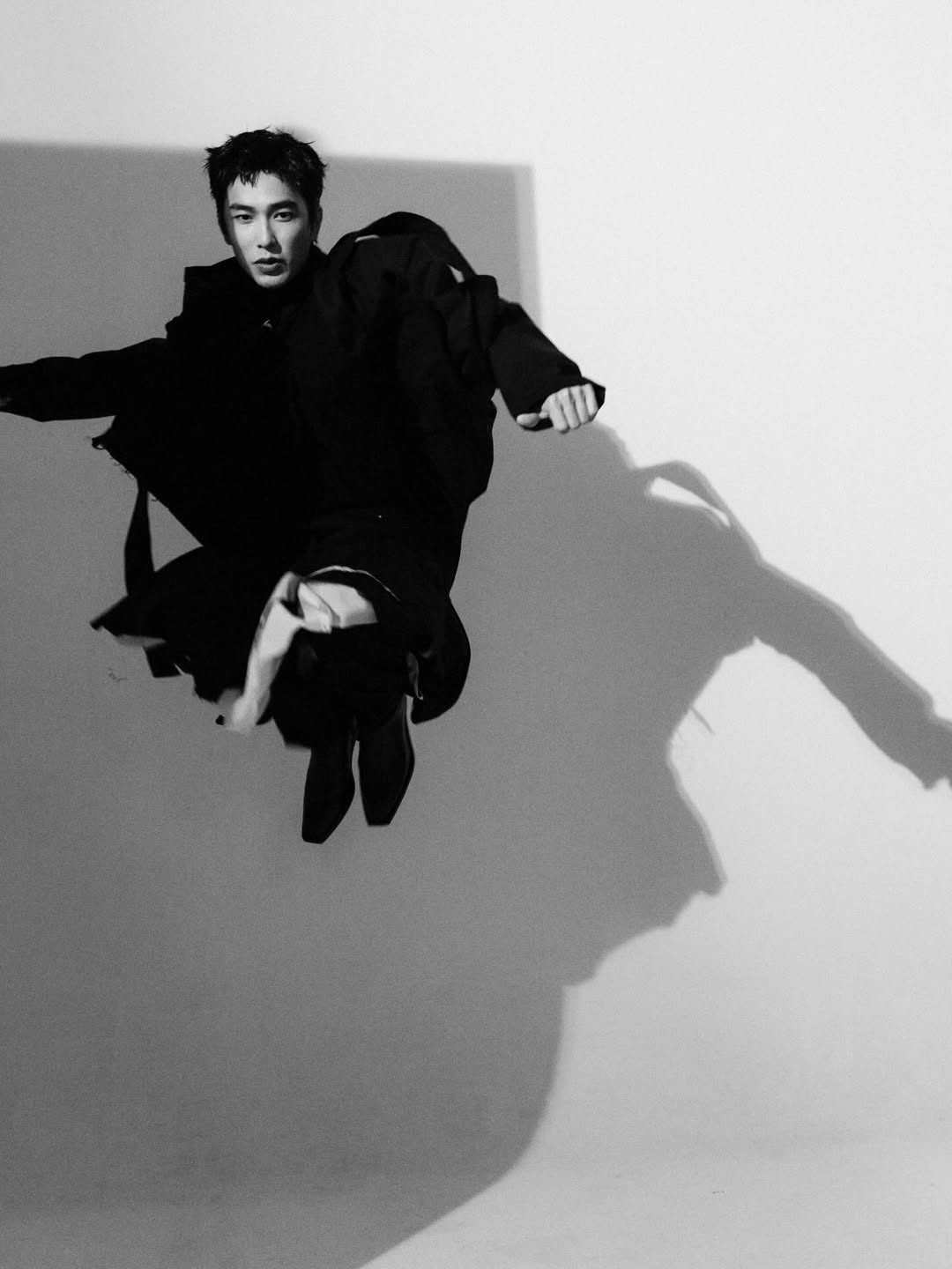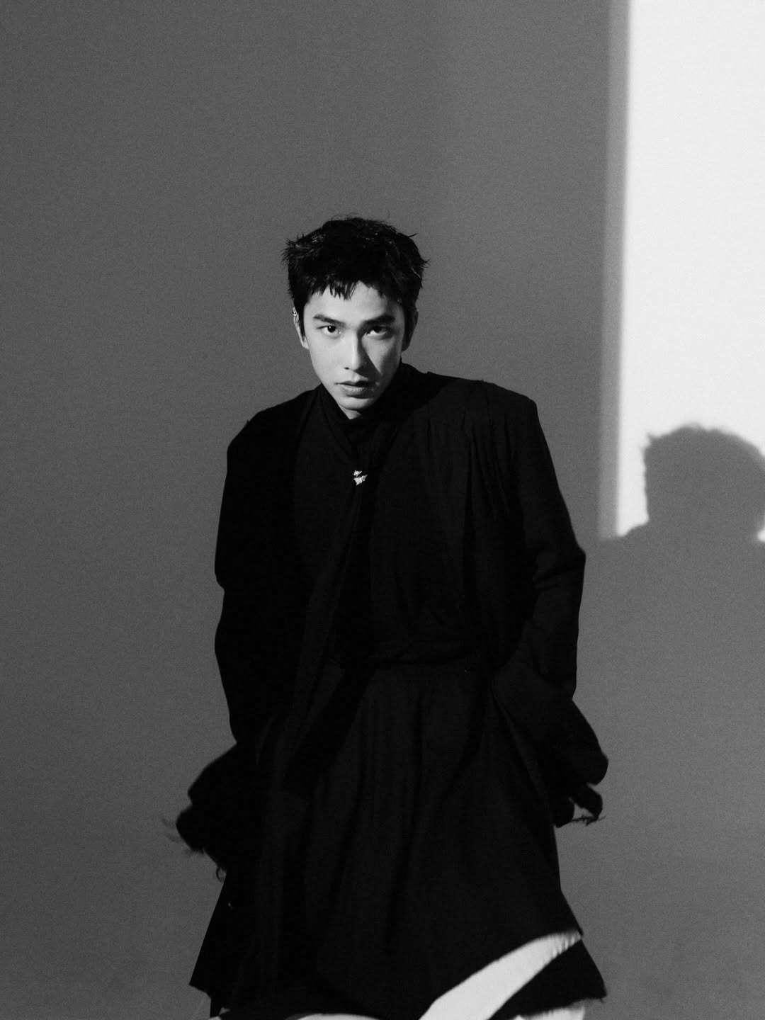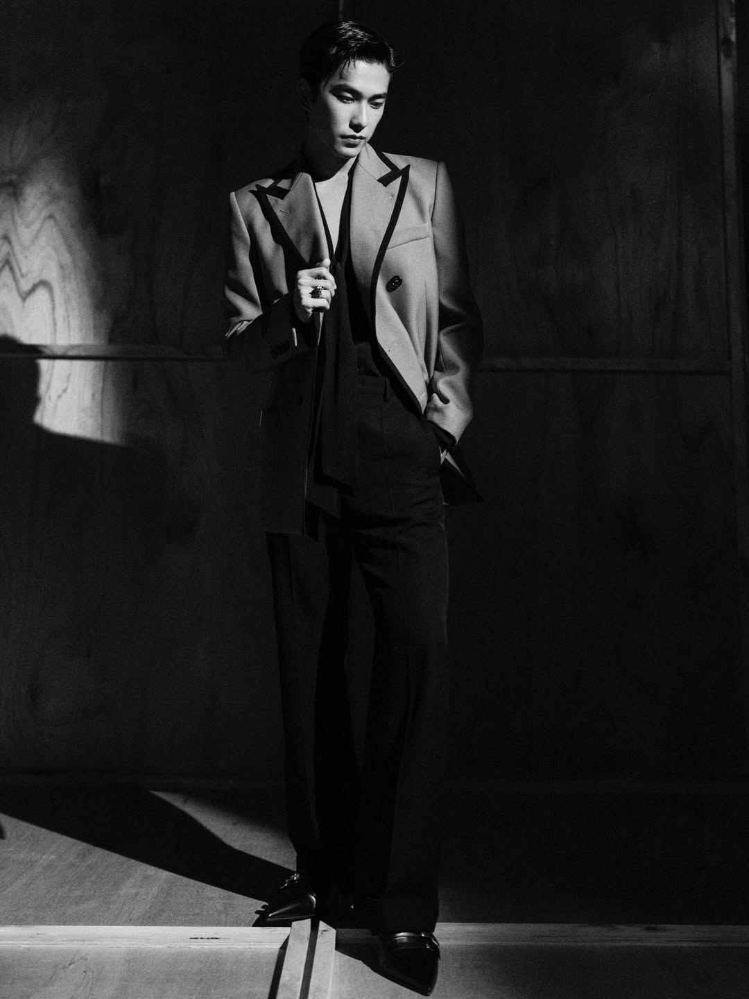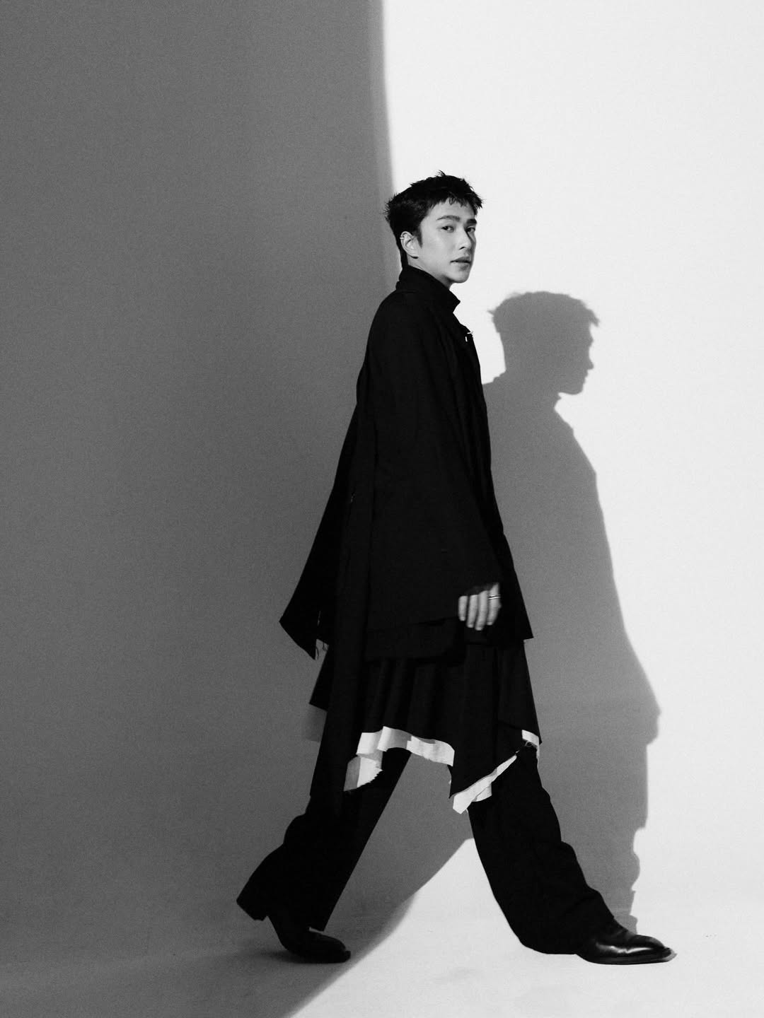 典禮上他選穿了設計師品牌 Rhyzem 黑色連身西裝裙與長褲,並搭配 Boucheron Quatre