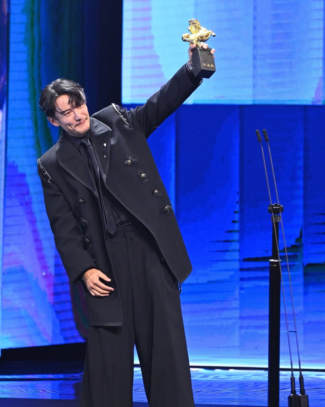 繼第 58 屆金馬獎《緝魂》後,張震二次封帝,以《幸福之路》奪得最佳男主角,今回他身穿 Maison Margiela 黑色西裝,有著雙排釦與白邊,相當有設計感,而身為 Cartier 品牌大使的他,珠寶選擇了 Cartier 的 Santos de Cartier 鏤空腕錶、LOVE Unlimited 手環及戒指,領片上還有 Panthère de Cartier美洲豹胸針點綴。