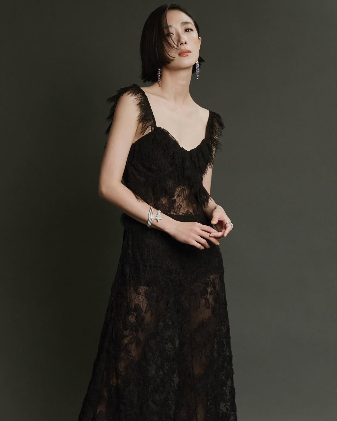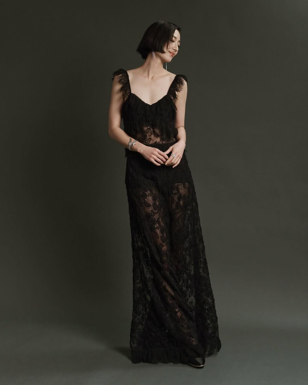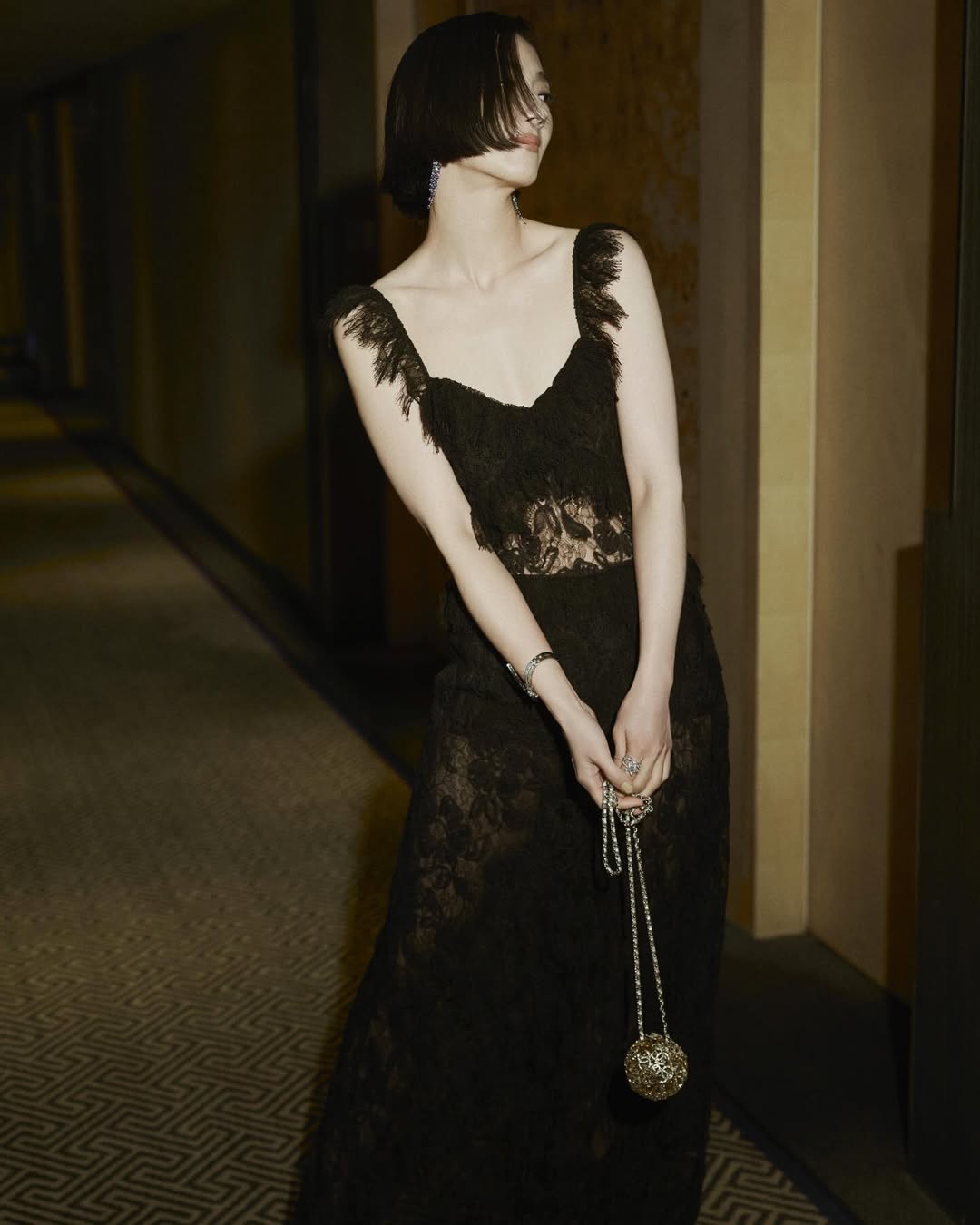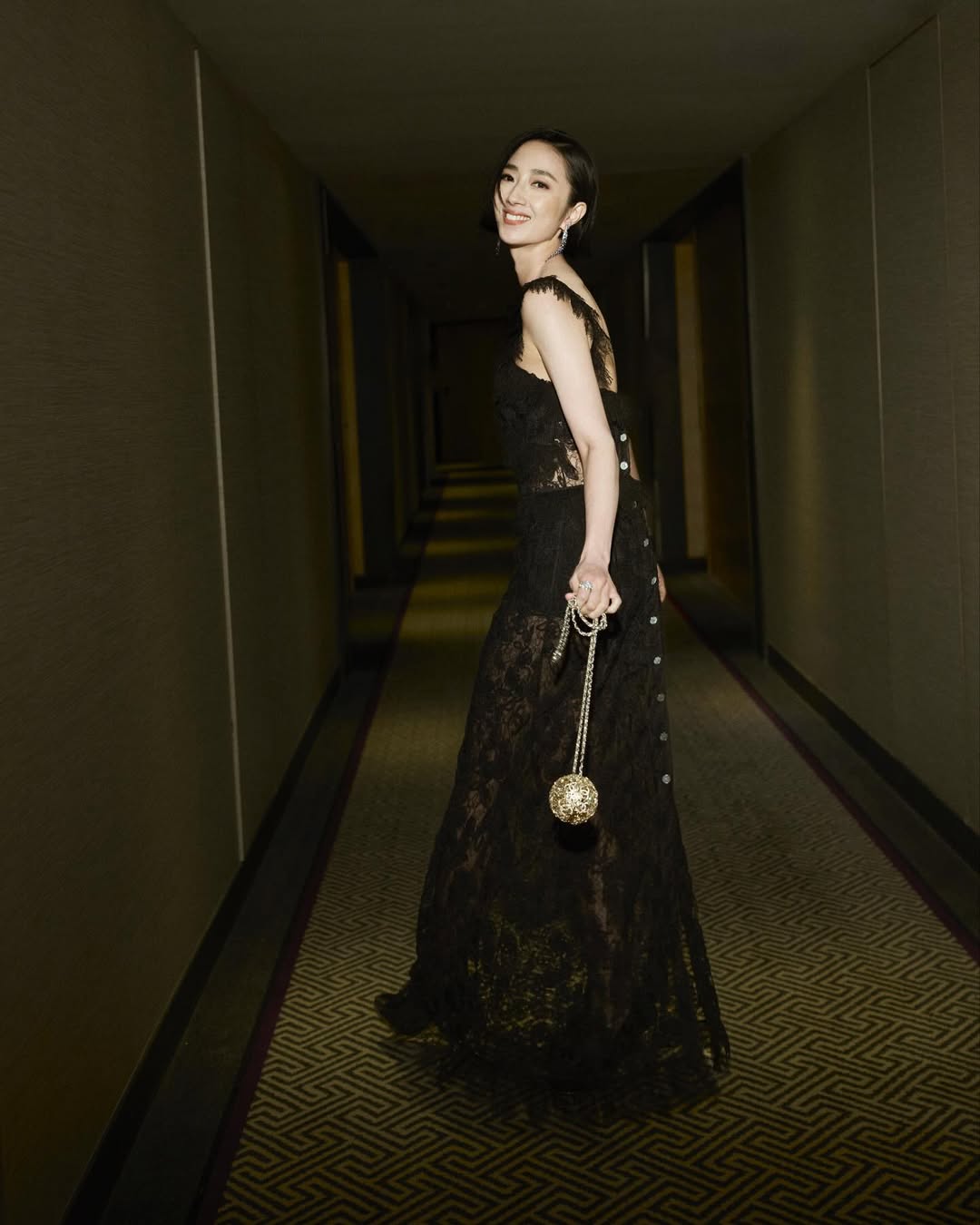 桂綸鎂今年以頒獎嘉賓身份出席,身為 CHANEL 品牌大使得她選穿 CHANEL 2026 春夏前導系列走上紅毯,這件黑色蕾絲荷葉邊無袖長洋裝風格唯美浪漫,加上 2025/26 Cruise 度假系列水鑽球型晚宴包,瞬間變得俏皮,珠寶部分選擇 CHANEL 頂級珠寶耳環、手鐲以及戒指,恰到好處的點綴,展現絕佳氣質。