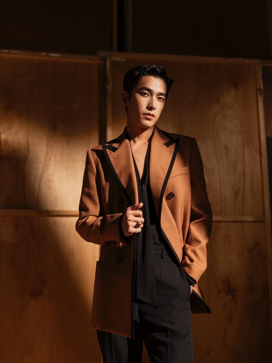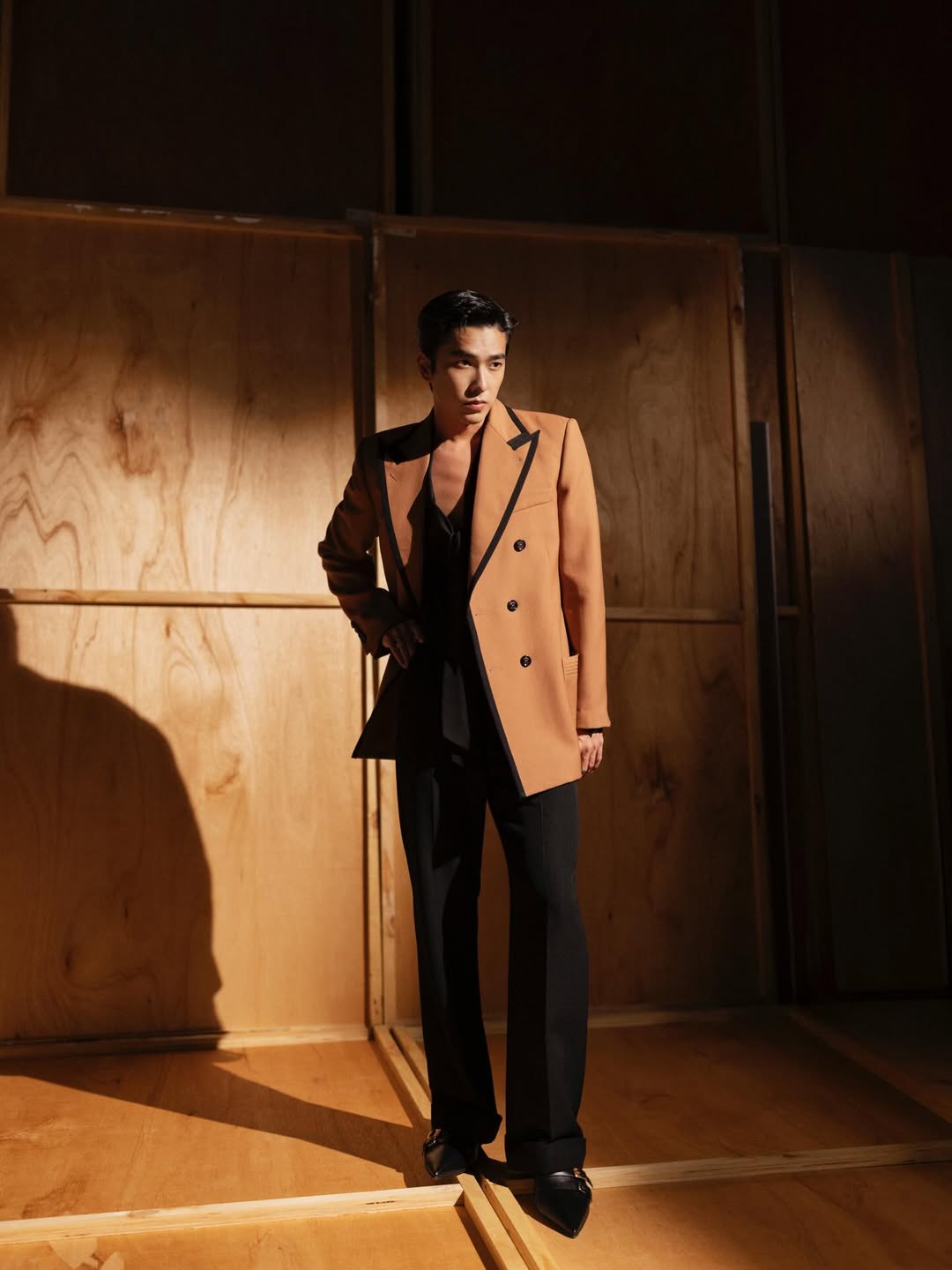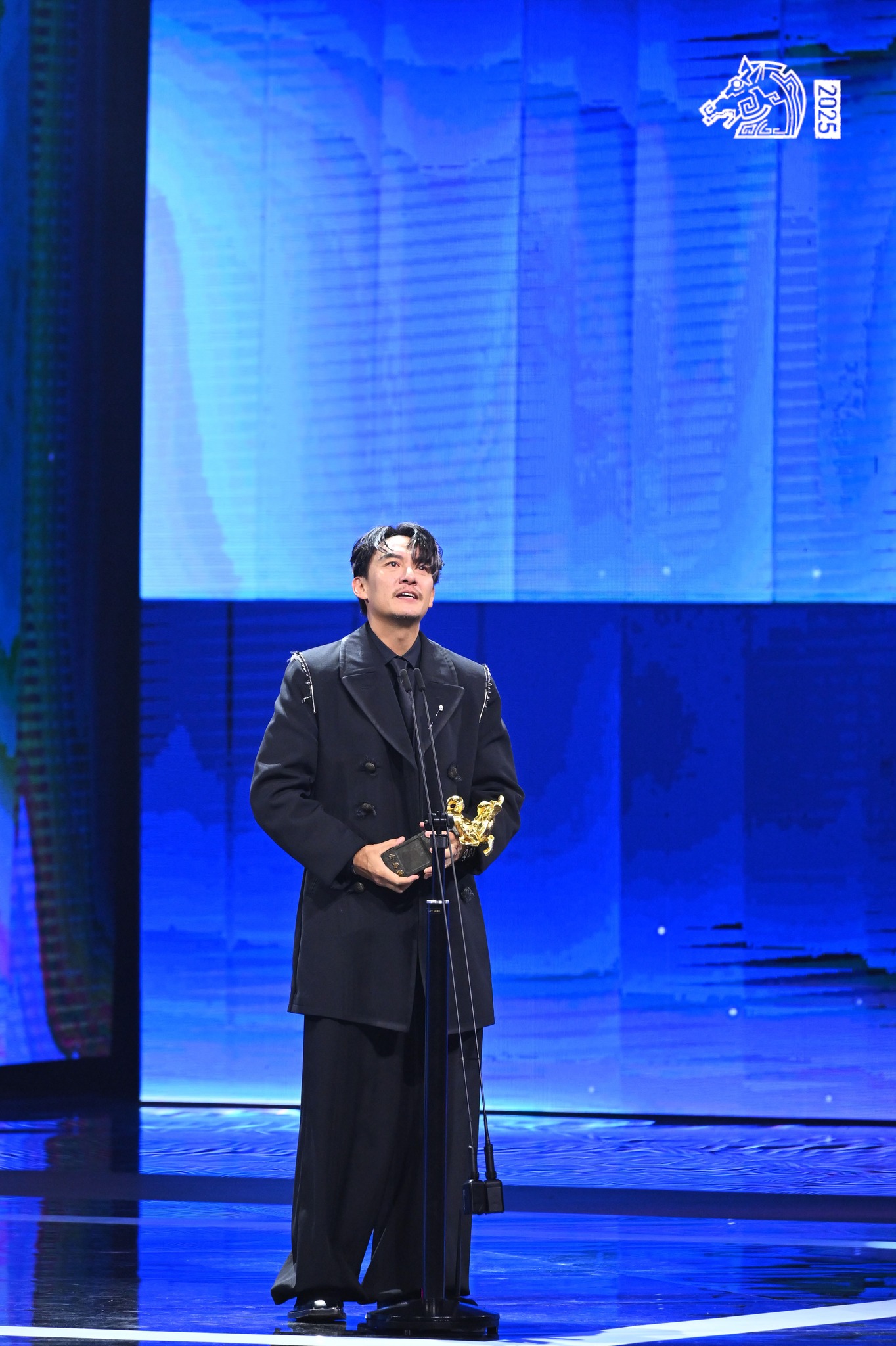 以《我家的事》榮獲最佳男配角獎的曾敬驊,以一襲 Valentino 2026 早春系列的造型現身紅毯,焦糖色雙排扣西裝外套有著深色滾邊設計,手上還有個可愛的小亮眼,那就是 Boucheron 的 Animaux 動物系列 Fuzzy 豹貓戒指。