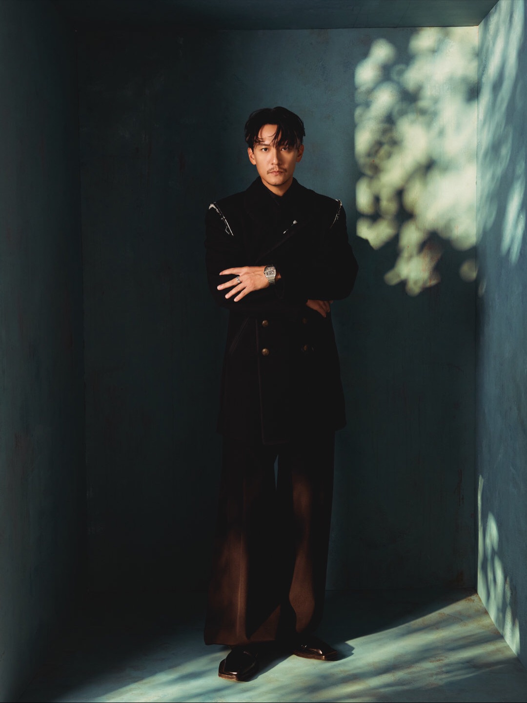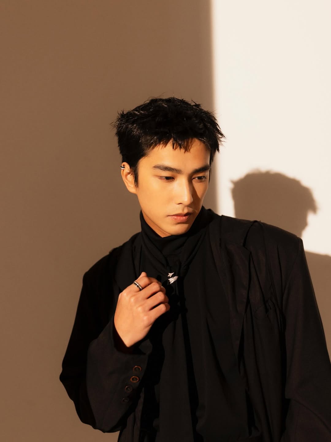 Black 系列耳扣與戒指,領巾上還有 Flèche系列戒指作為造型亮點,被大讚是本屆金馬最會穿的男星,不僅穿得好看,還很有個人風格。