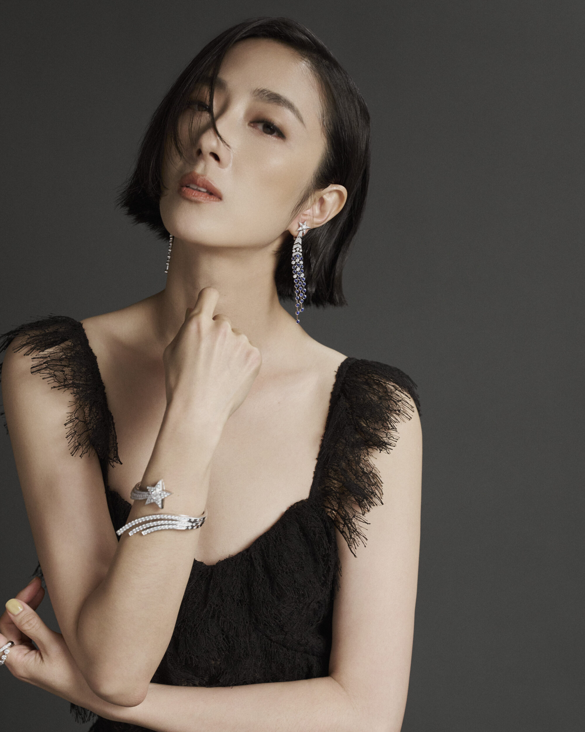 平面模特兒出身的馬士媛憑藉《左撇子女孩》拿下最佳新人獎,紅毯中她身穿一襲透膚長禮服,盡顯好身材,搭配 Tiffany HardWear 白 K 金鑲嵌鑽石耳環、T1 白K 金鑲嵌長方形切割與明亮式切割鑽石項鍊、T1 白 K 金鋪鑲鑽石寬板手環、T1 白 K 金鑲嵌鑽石窄版戒指以及 Sixteen Stone by Tiffany 鉑金鑲嵌鑽石戒指,展現俐落性感的一面。