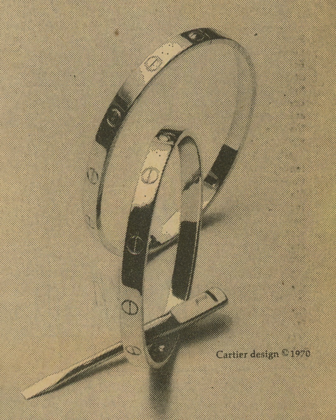 設計師 Aldo Cipullo 用螺絲鎖住愛,打造出那只非得要用螺絲才能解開的手環,從那時起,”LOVE”就成為了一種具體且堅定的承諾,頗有「至死不渝的愛情」意味。