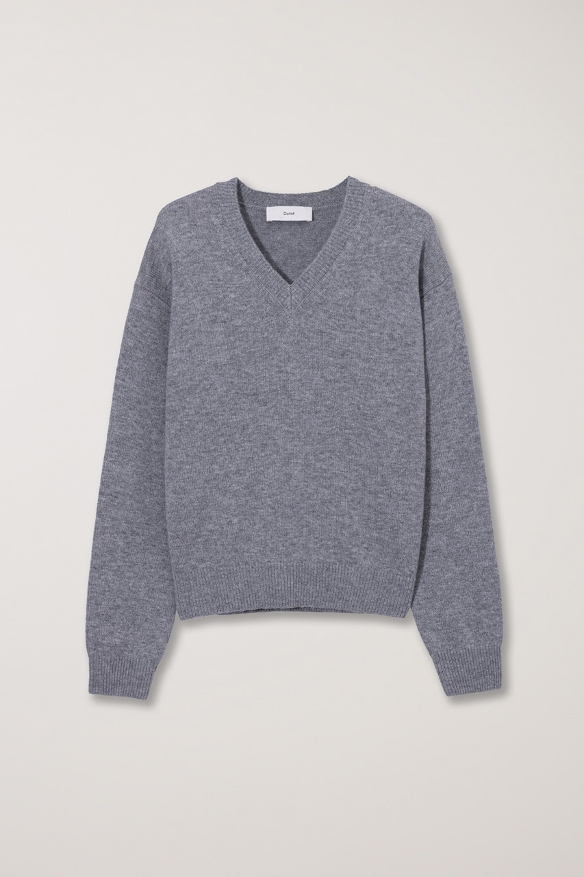 - DUNST UNISEX CASHMERE V-NECK SWEATER MELANGE GREY USD 140