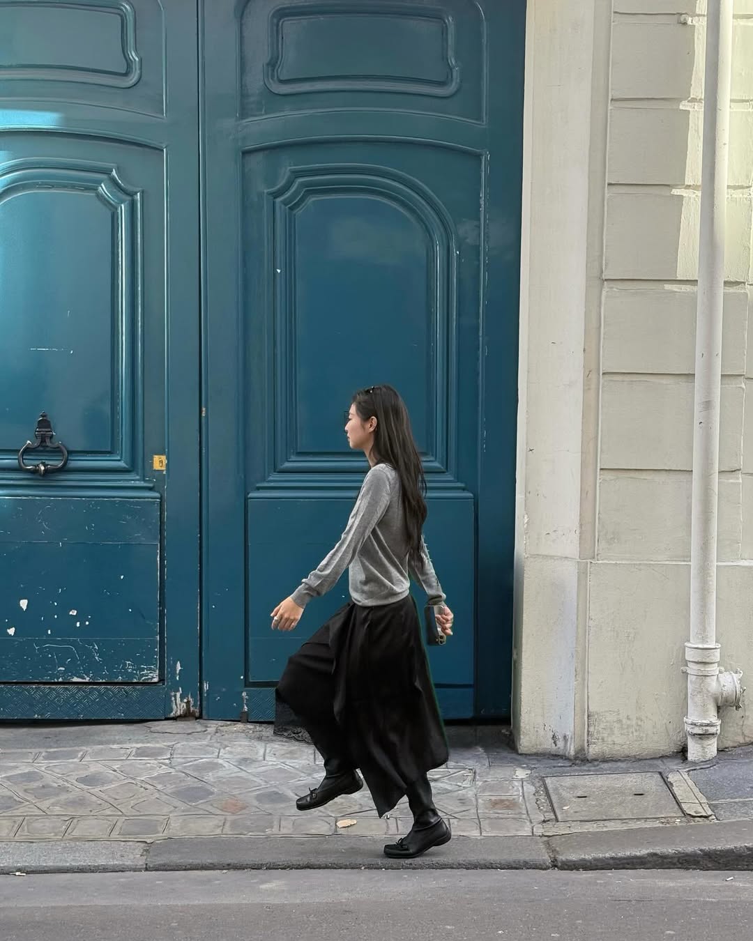>>> 看似衝突的組合意外好看,今年冬天試試「針織上衣+絲綢裙」