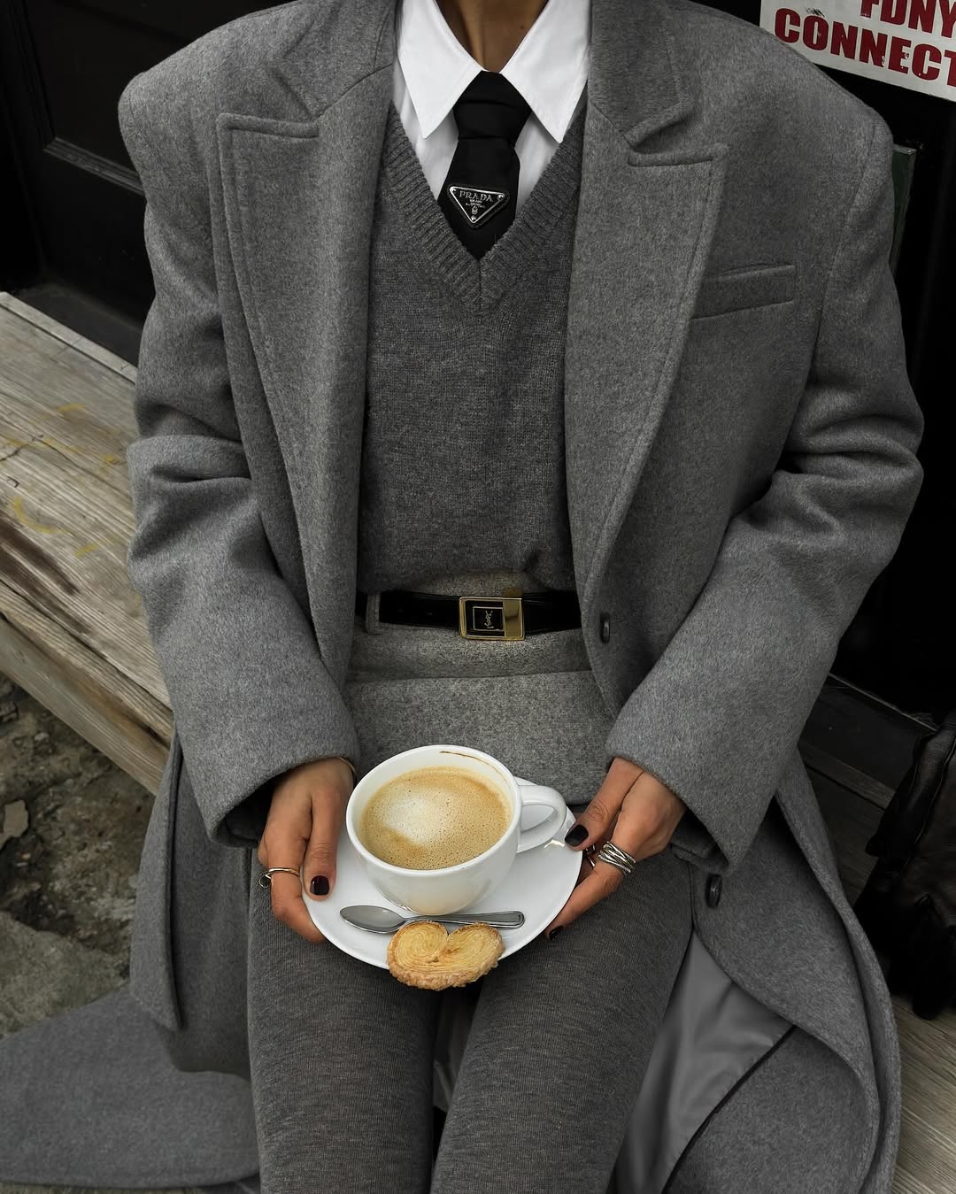 翻翻其他穿搭人士的頁面,也見到不少灰色針織衫的蹤跡,百搭的灰色怎麼穿都不容易出錯,本季最推薦入手的是剪裁合身、穿起來不過於寬鬆的款式,單穿時簡約俐落,又可以作為內搭打底,甚至熱一點的時候還能當披肩隨性掛在脖子上,一衣多穿,有夠划算。