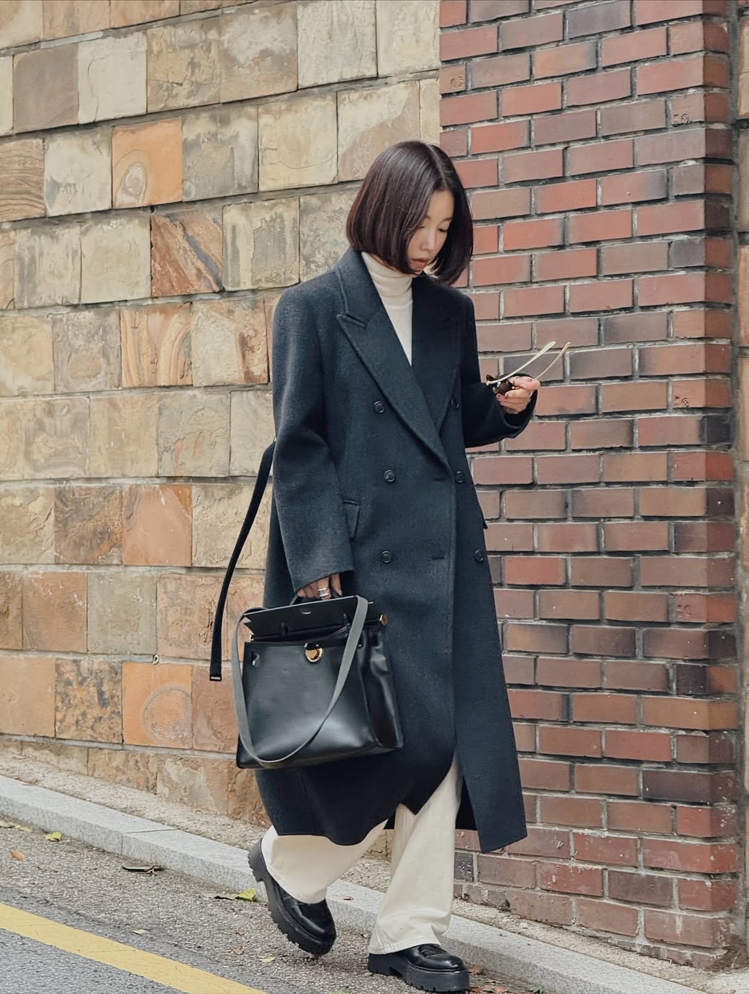 想穿出這樣簡單時髦的樣子,來一件好看的大衣是必要,像是灰色長大衣,裡面搭配高領針織衫和長褲,腳踩雙靴子,再拎個大包就有型得不得了。