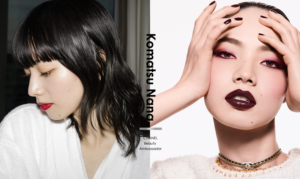自 2016 年成為 CHANEL 時尚大使以來,小松菜奈與品牌建立緊密的合作關係,從時裝秀、形象企劃及各式活動,都可以看到她活躍的身影,在邁入合作 10 年之際,她又收穫一個全新身份—— CHANEL 美妝大使。在新釋出的宣傳照裡,小松菜奈以暗紅色系的大膽唇妝及眼妝出鏡,展現不同以往的冷豔風格。