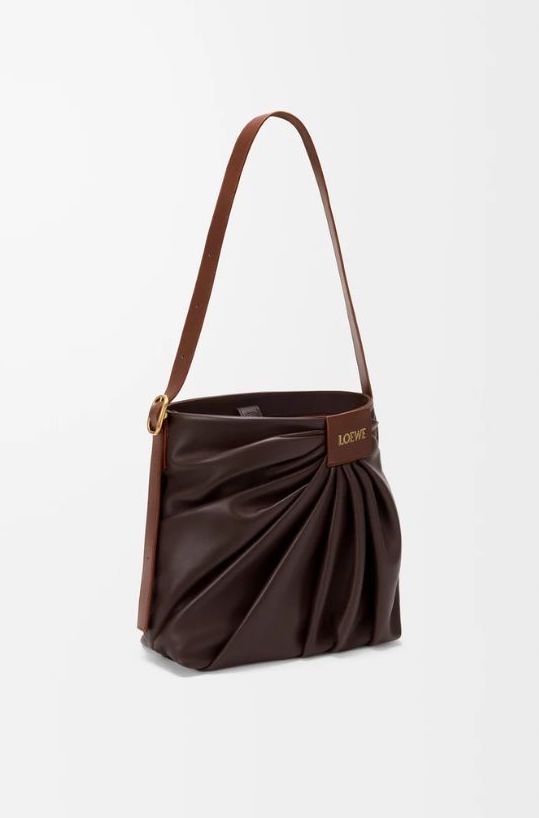 除此之外,深栗色皮革在光線下呈現的柔和光澤,也呼應了 LOEWE 一貫的美學態度,結構與柔軟並存外,更讓皮革也能展現溫柔的姿態。