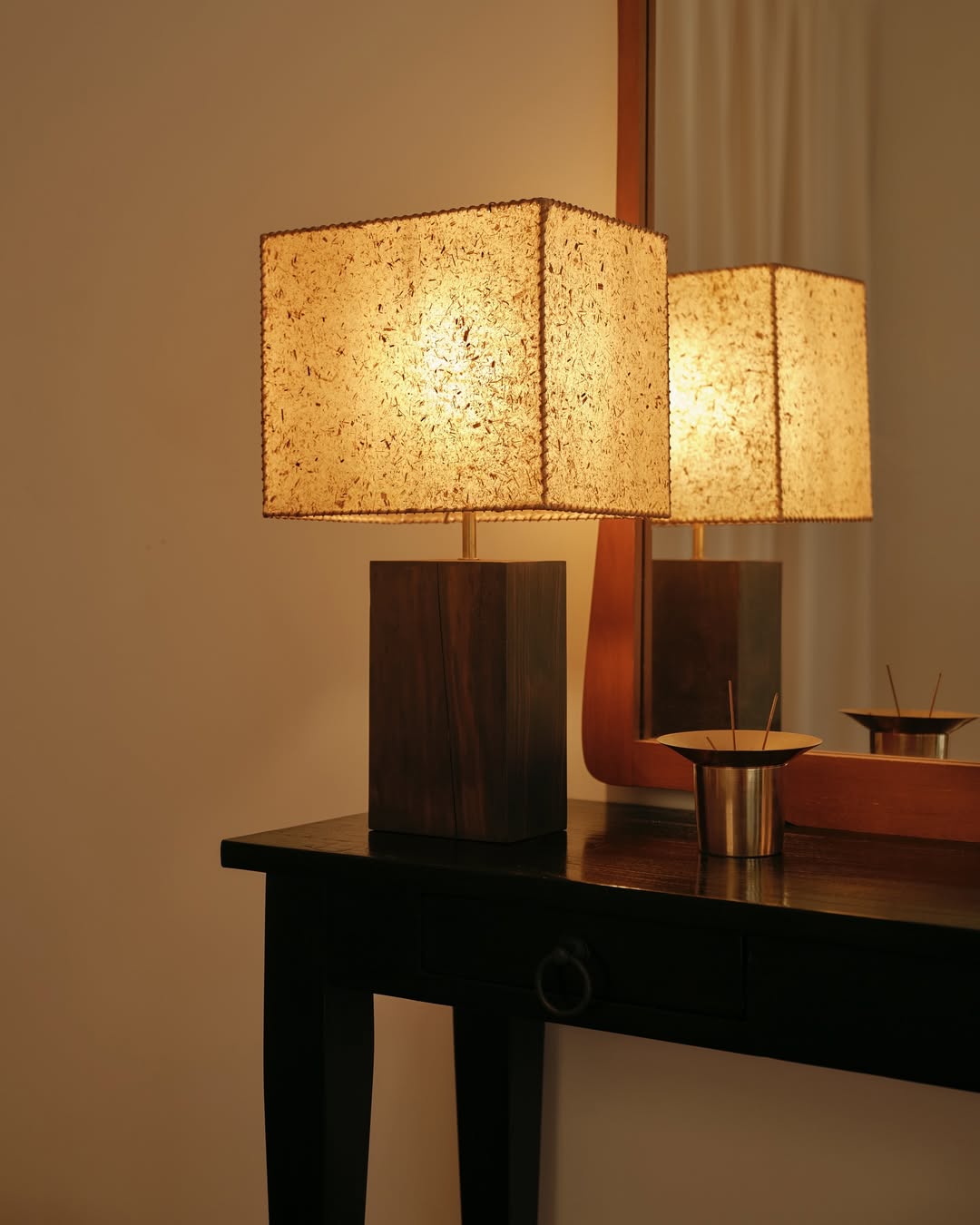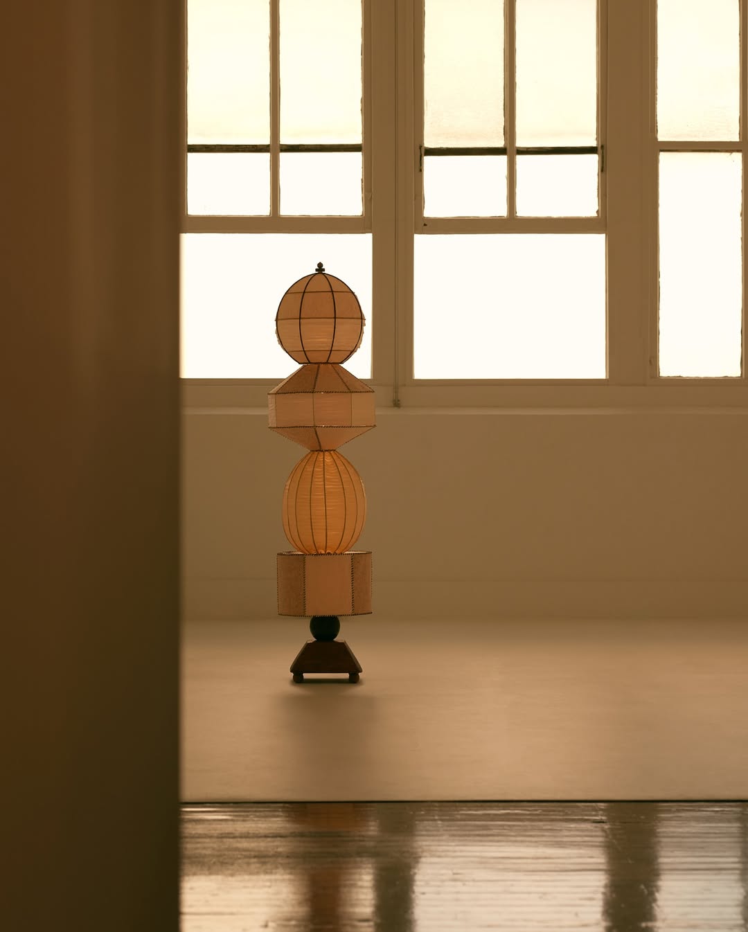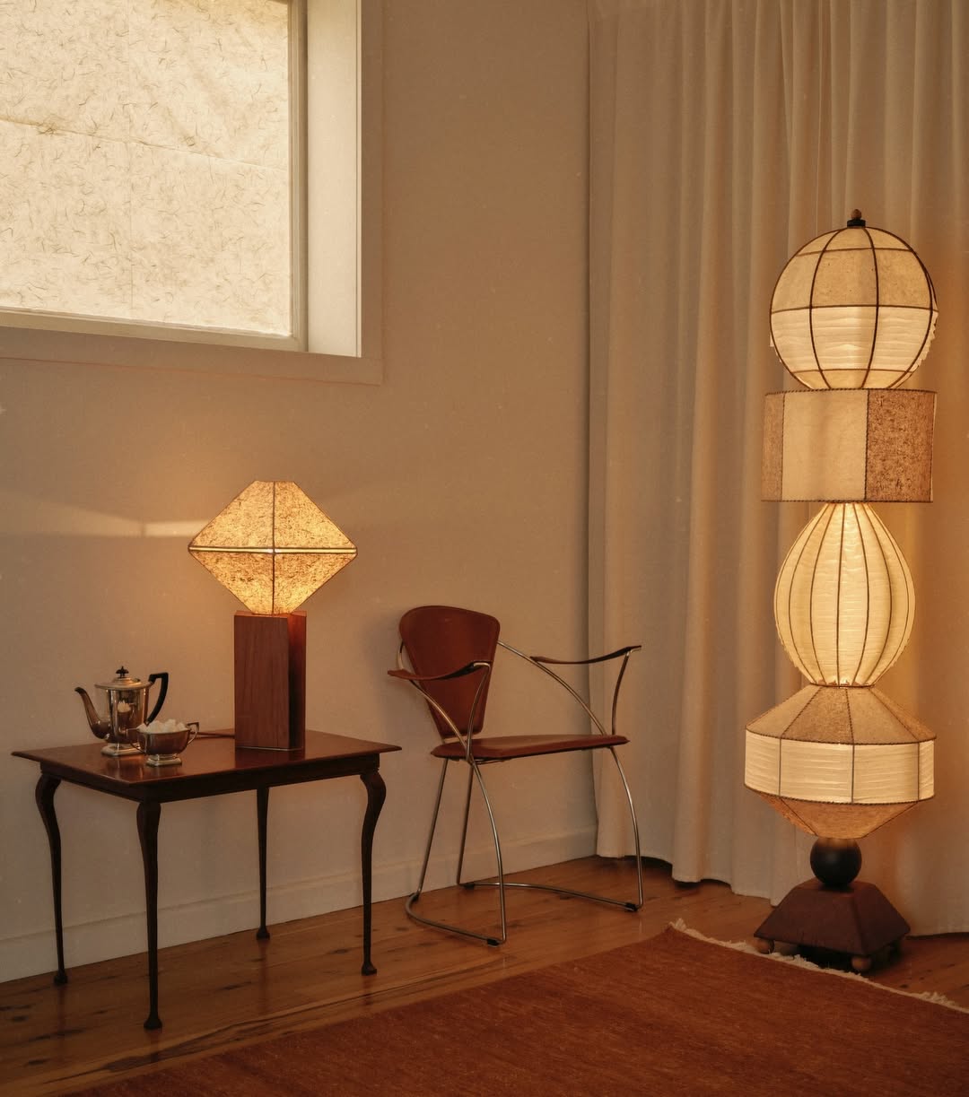 Lana Launay 是來自澳洲雪梨的藝術家,擁有珠寶、紡織品設計以及視覺藝術的背景,設計風格極簡、多以幾何為輪廓,線條乾淨俐落,富有實驗性,擅長運用光影與異材質互動,營造出獨特的照明效果。她時常選用木材,搭配天然材料,如手工紙、蜂蠟和咖啡染色的拉菲草,讓極簡的紙燈作品總給人一種溫暖、樸實的感覺。