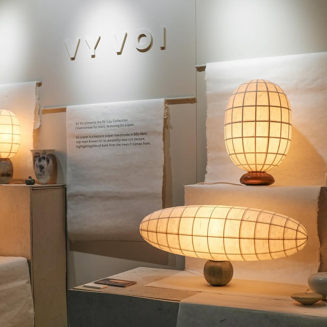 Vy Voi Studio由設計師兼藝術家 Steffany Trần 所創立,工作室位於紐約,專注於打造照明、家具等物件。Steffany Trần 生活於美國,但深受越南文化影響,時常將越南傳統材質與工藝,如dó 紙、陶瓷等元素注入創作之中,讓越南的手作文化在當代重新被看見。她的作品主要使用自然材質,如紙、陶瓷和木材,常帶有溫暖的氣息,也時常以大自然為靈感,創作出來的作品富有流動線條感。