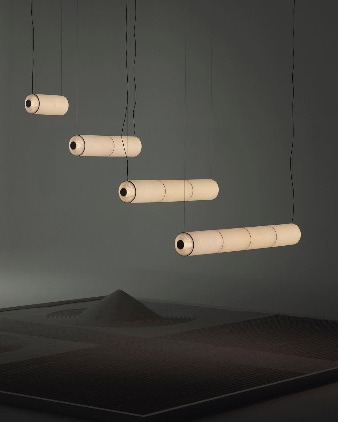 Tekiò 紙燈的靈感源自日本傳統提燈,Anthony Dickens 以磁鐵連接燈罩,並搭配日本傳統和紙,讓燈可以組合成不同形狀,如圓形、直線或環狀,骨架採用金屬支撐,讓視覺美感更加俐落簡潔。
