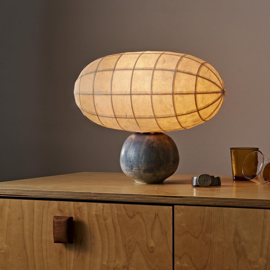 Bennet Schlesinger 擅長以天然材料結合陶土創作,比如會用竹子搭建起雛形,加上竹紙製作而成的燈罩,搭配陶瓷、金屬底座,並刻意保留手工製作的痕跡,略帶不規則的線條使得每一件燈具都如同雕塑藝術品。