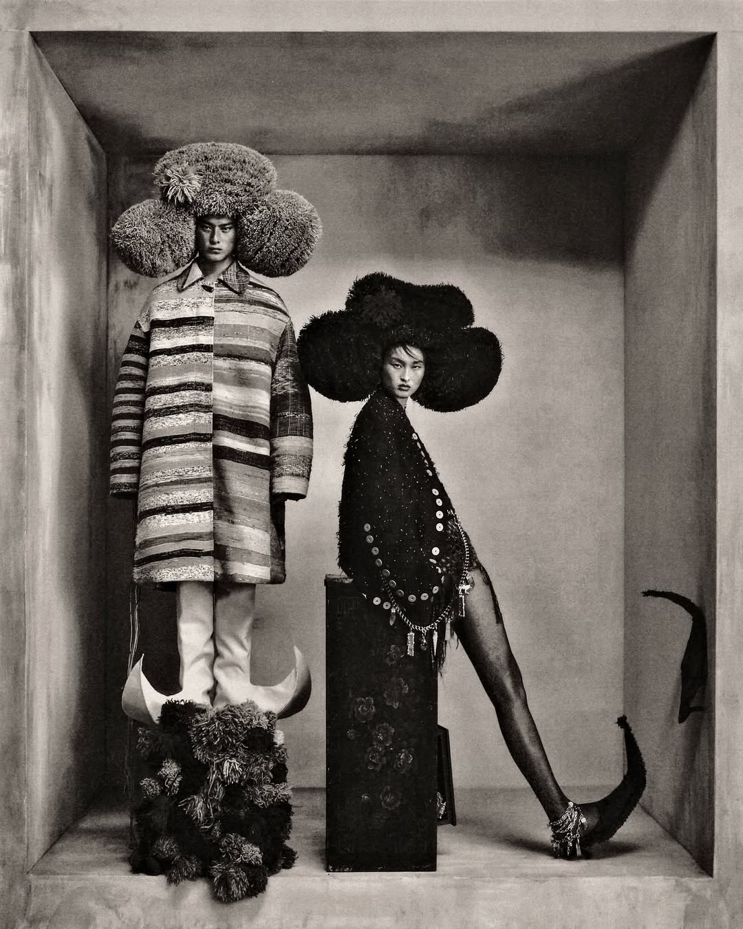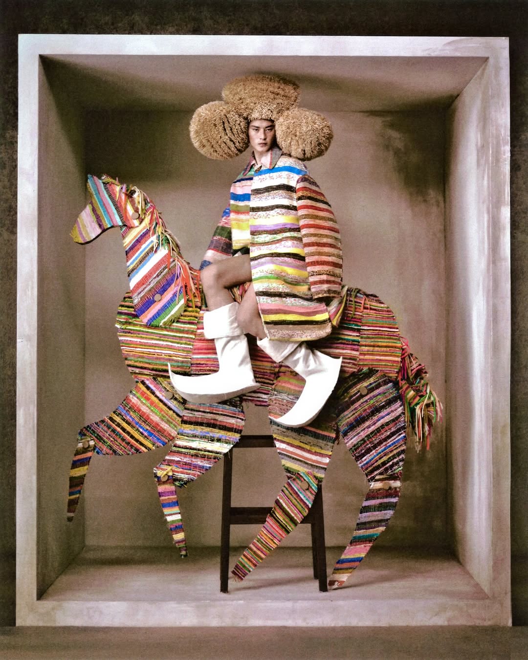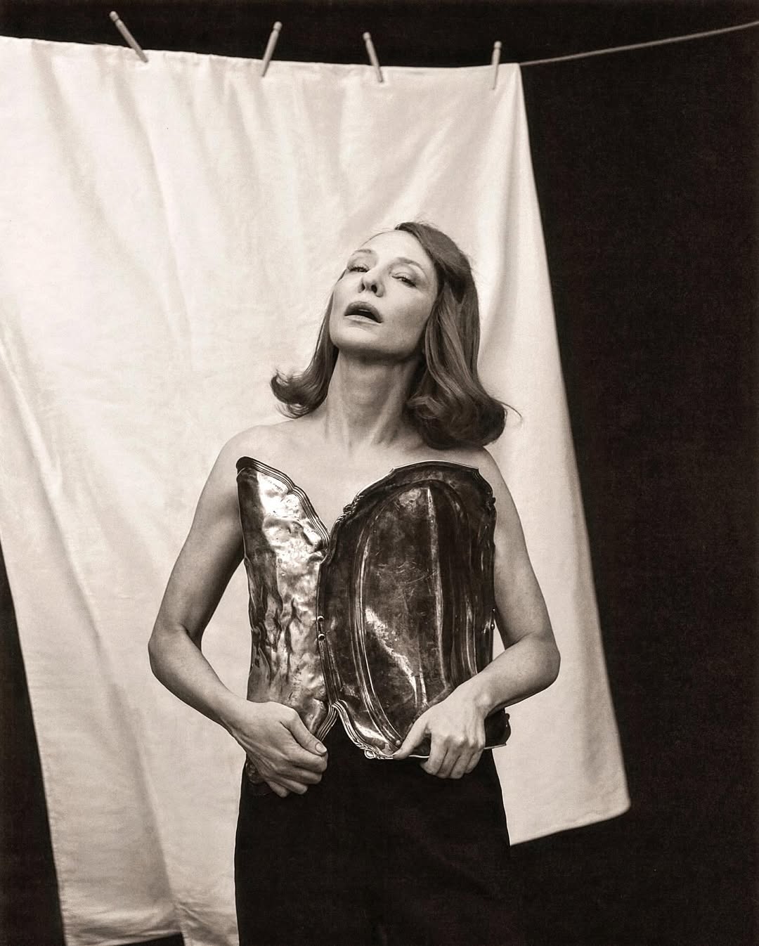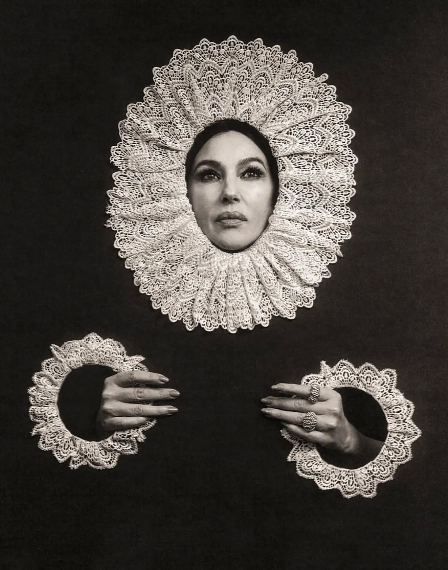 Szilveszter Makó 的攝影並不追求真實,而是企圖「再造記憶」,一如 Cate Blanchett 就曾在他的鏡頭下被包裹進紙製禮盒;Willem Dafoe 置身於玩偶屋裡,像一尊擺錯年代的雕像;Monica Bellucci 則化身靜物畫中的早餐餐桌…..等等。
