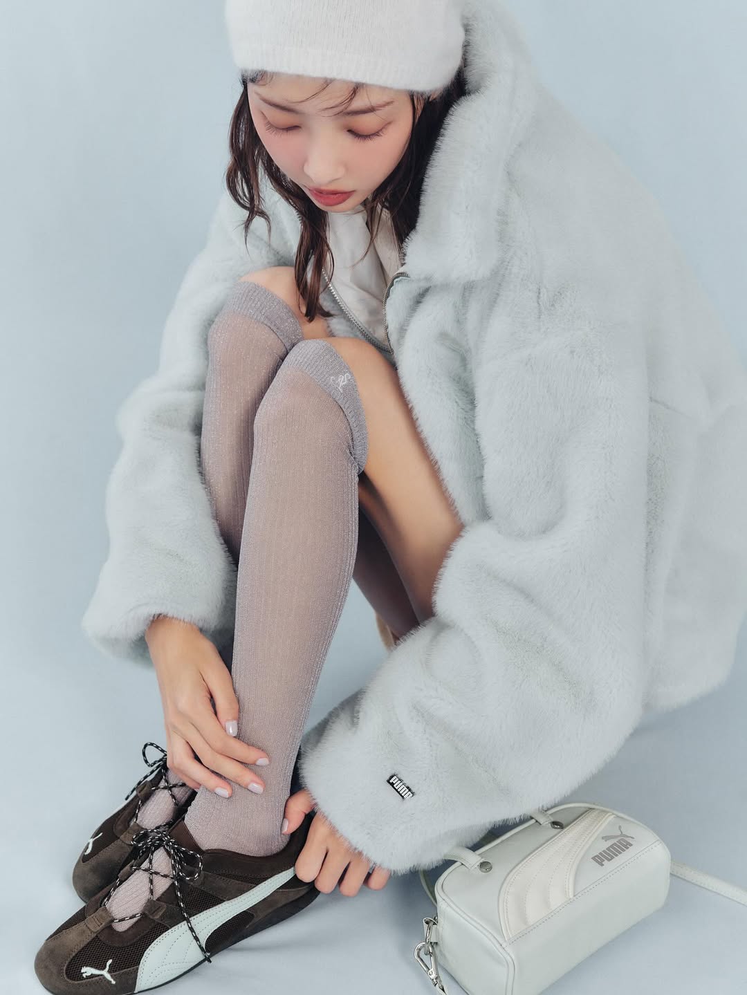 今次 Puma x SNIDEL 聯名系列以柔和的淡藍色與深棕色為主調,包含 Speedcat Go、包款、夾克、拉鍊運動上衣、華夫格外套、兩件式上衣等,風格既有運動休閒的街頭感,也很有品牌日系夢幻優雅的風格。