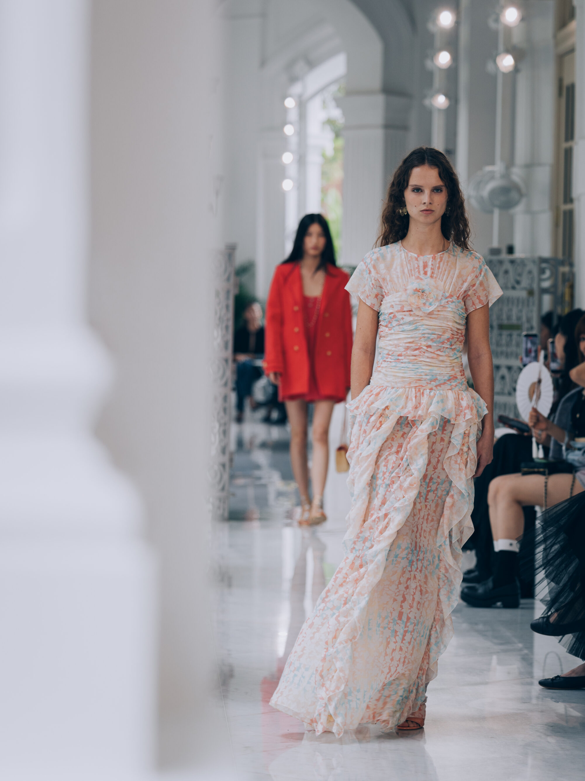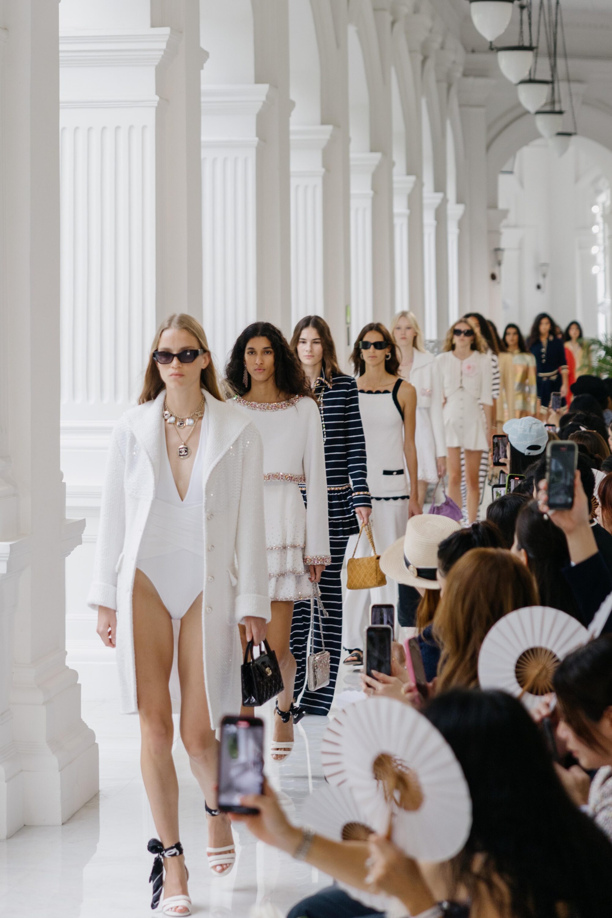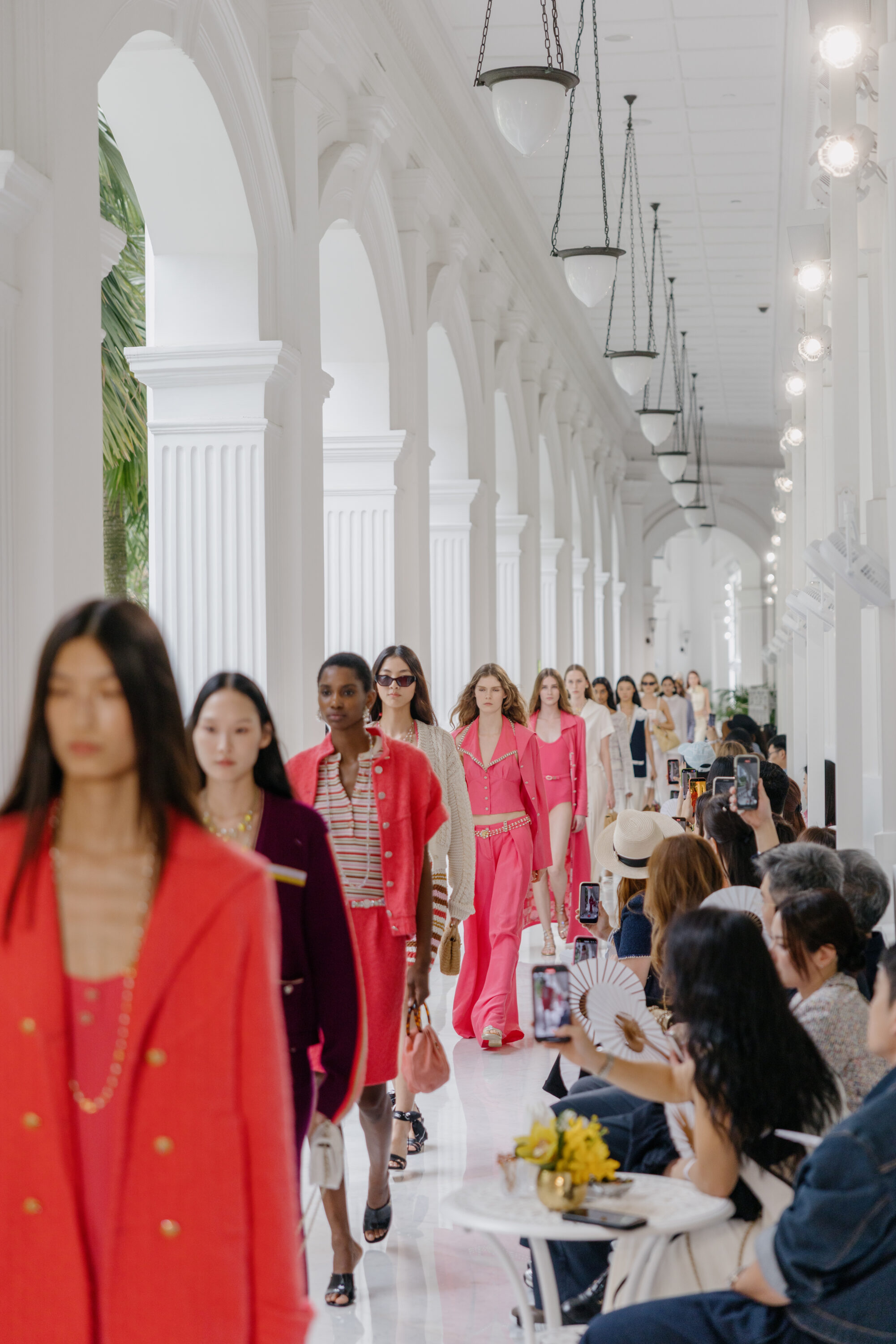 CHANEL 2025/26 CRUISE 度假系列大秀早先於義大利傳奇埃斯特別墅(Villa d’Este)登場,這次移師新加坡萊佛士酒店舉行。