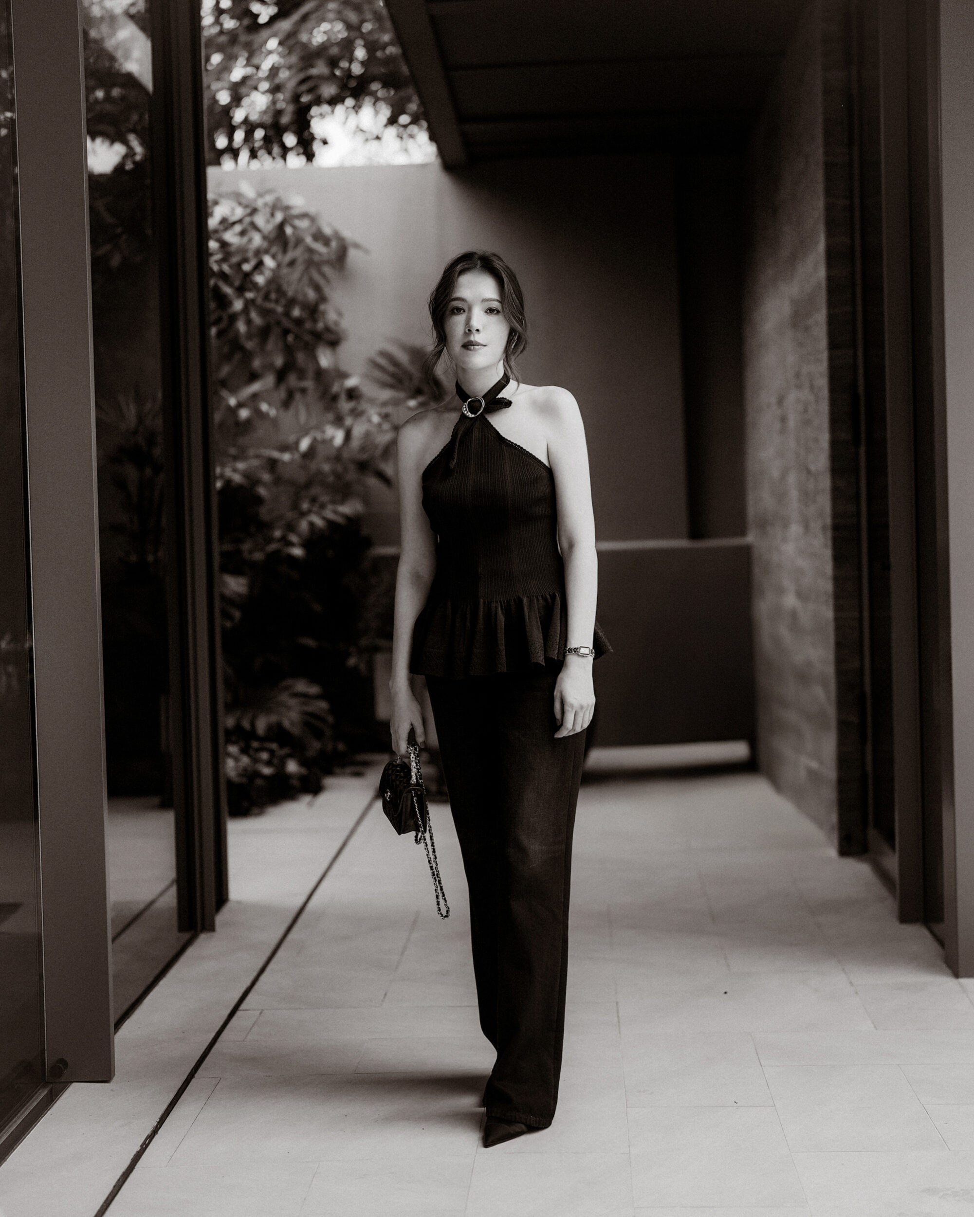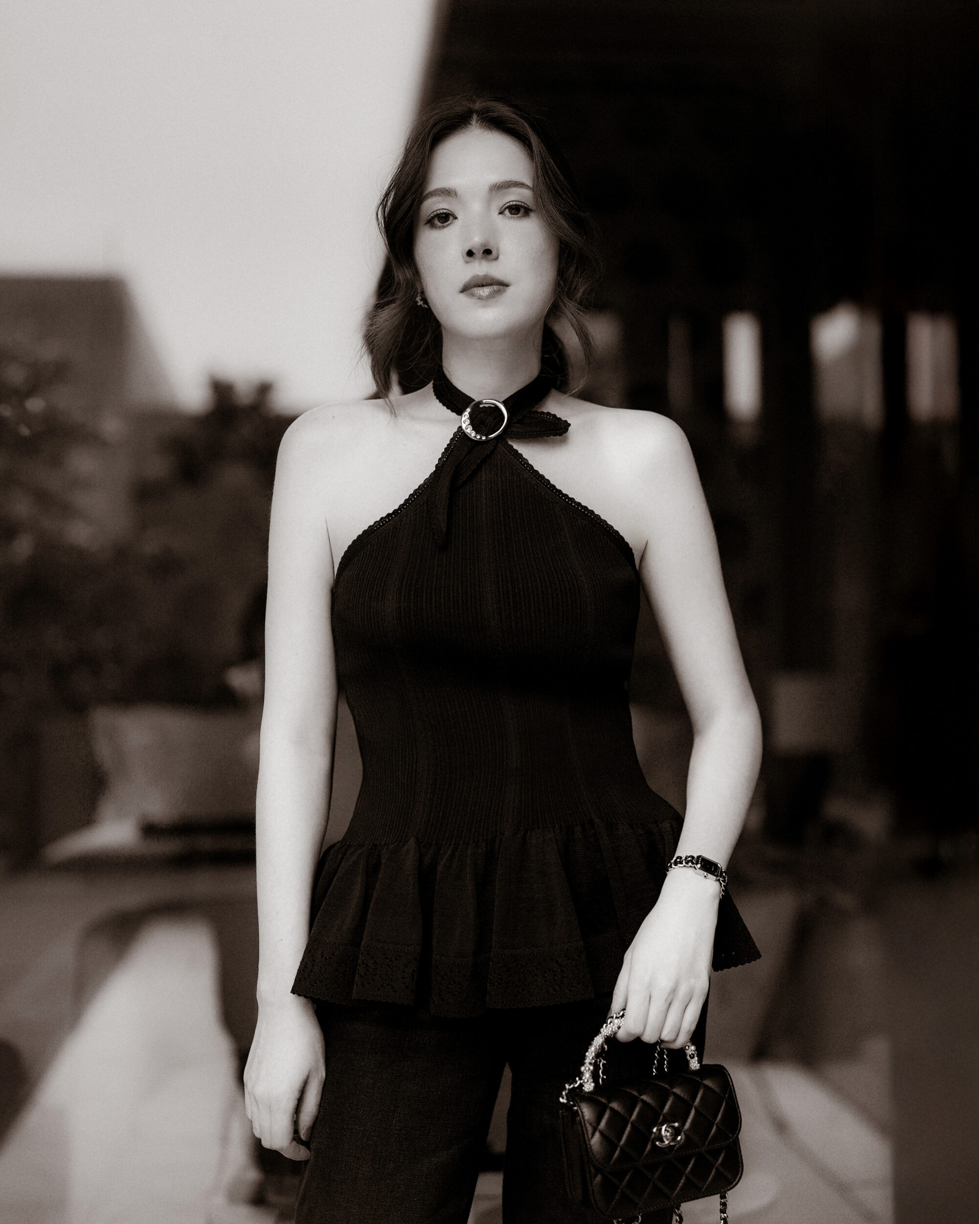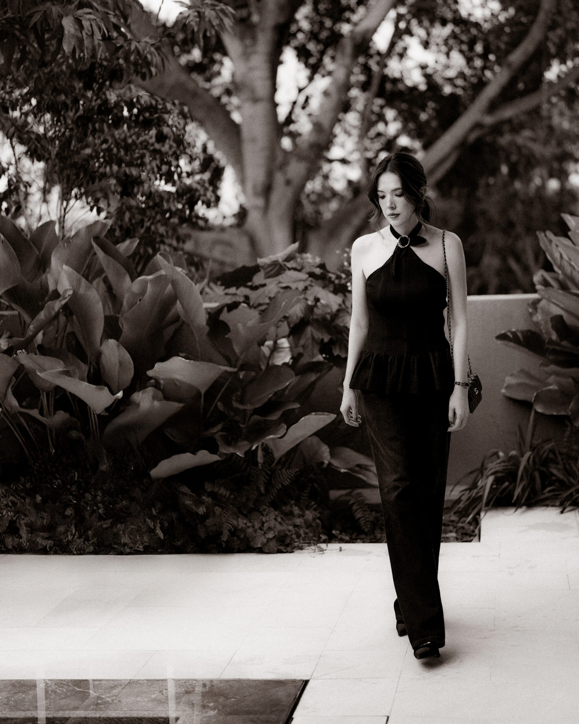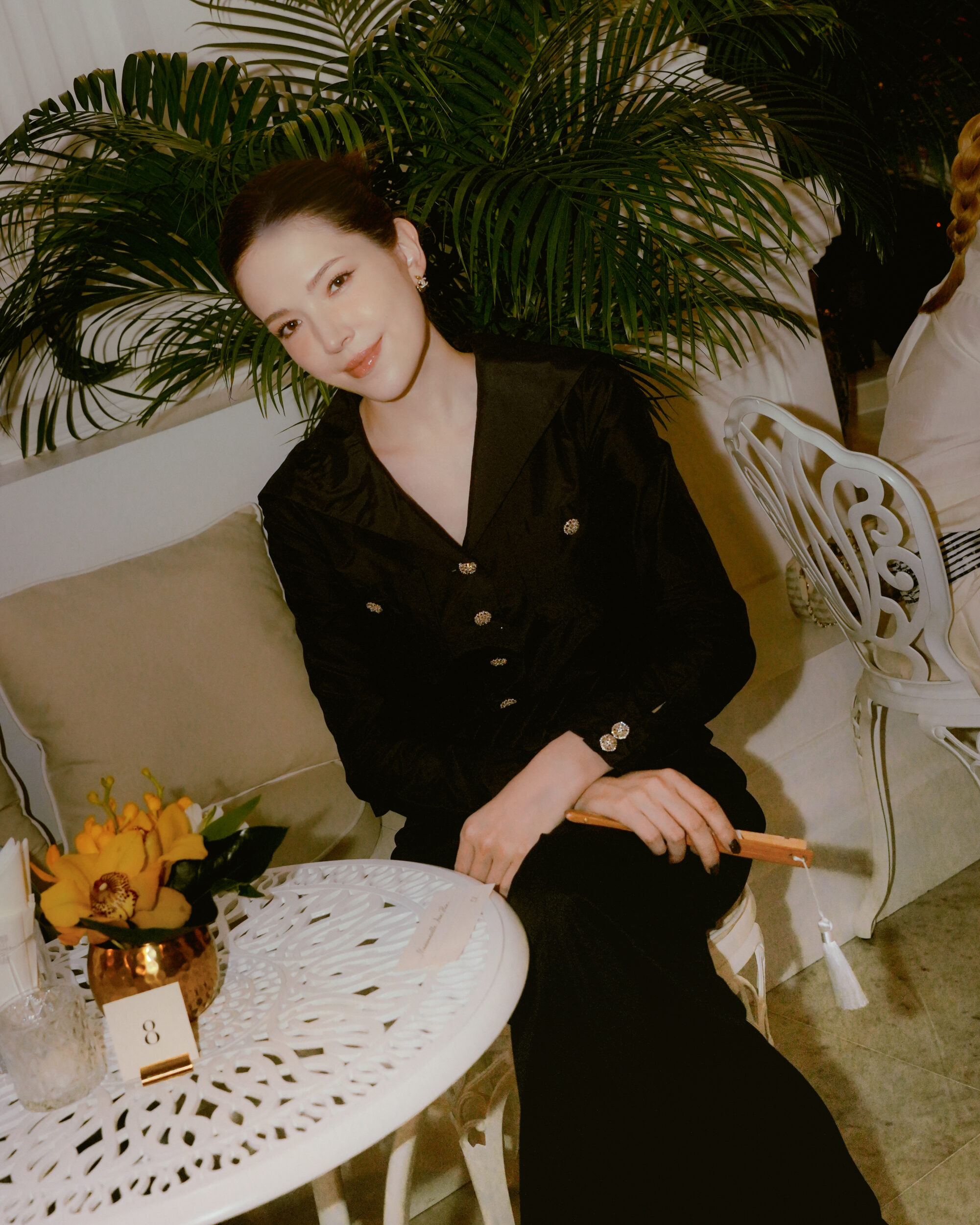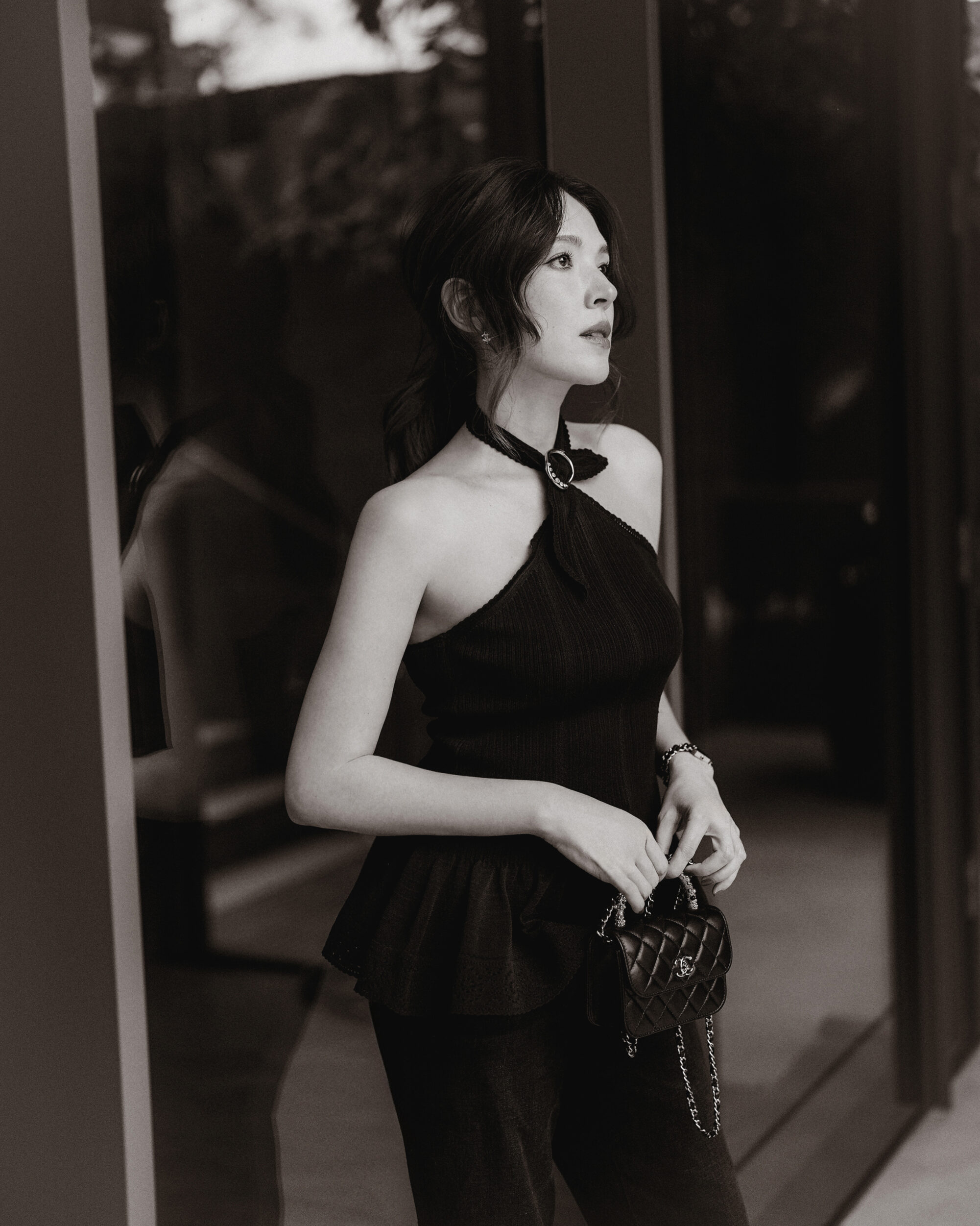 大秀前夕的晚宴,許瑋甯一改白天的休閒裝扮,換上削肩背心搭配長褲現身,這一套來自 2025/26 Cruise 度假系列,掛脖設計展現出肩頸線條,讓她舉手投足間帶著柔中帶剛的自信氣場,加上俐落的長褲,稍稍平衡了上身的女人味,整體造型低調又不失精緻,有一種成熟女人的從容魅力。