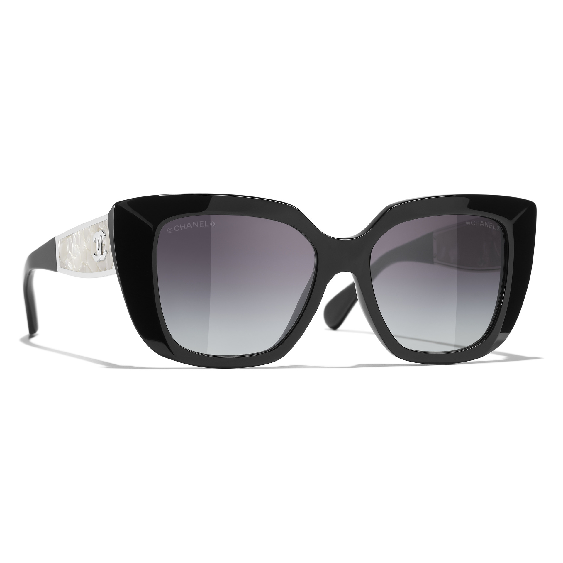黑白色雙 C LOGO 蝴蝶形太陽眼鏡;黑色雙 C LOGO 漆皮露趾高跟鞋