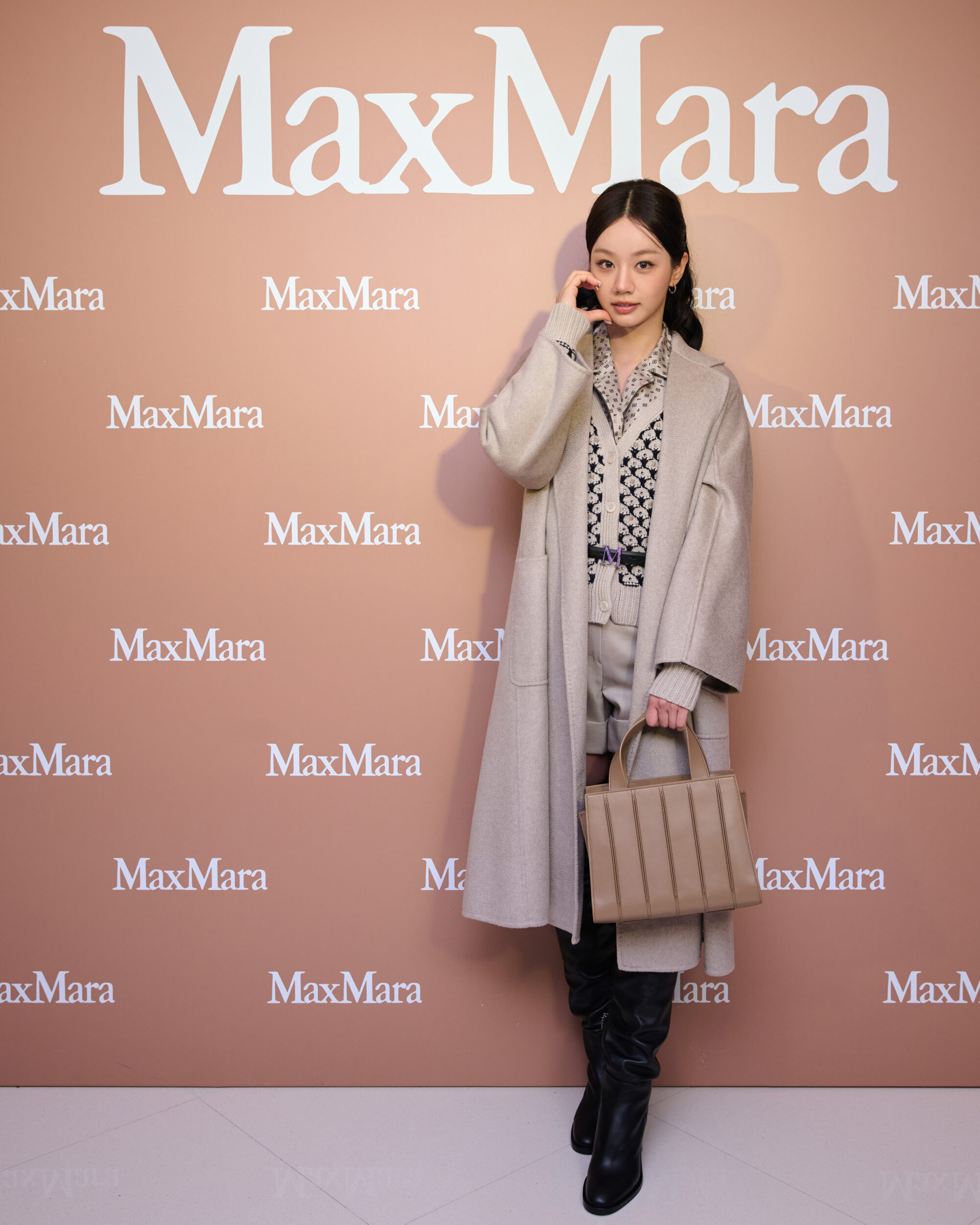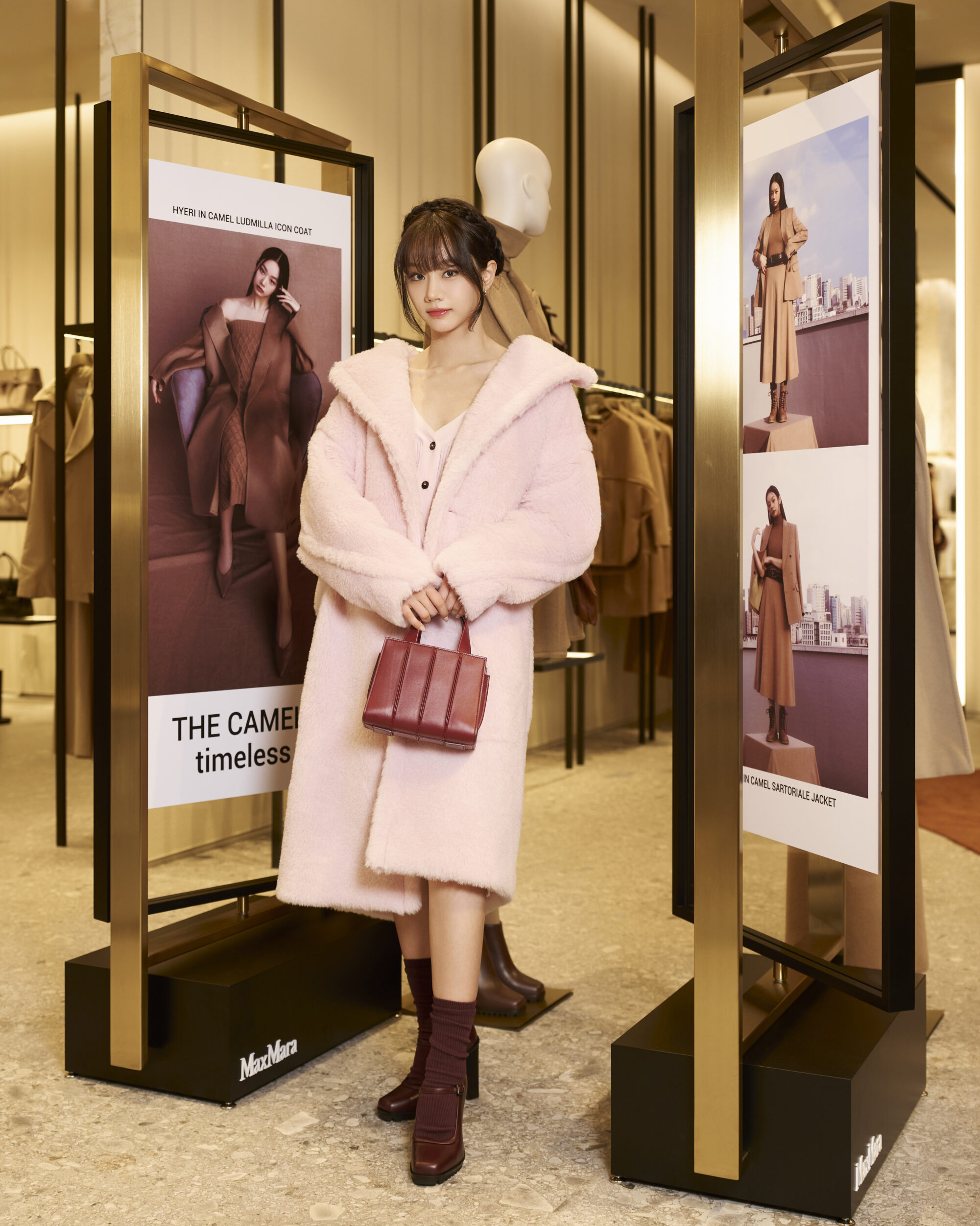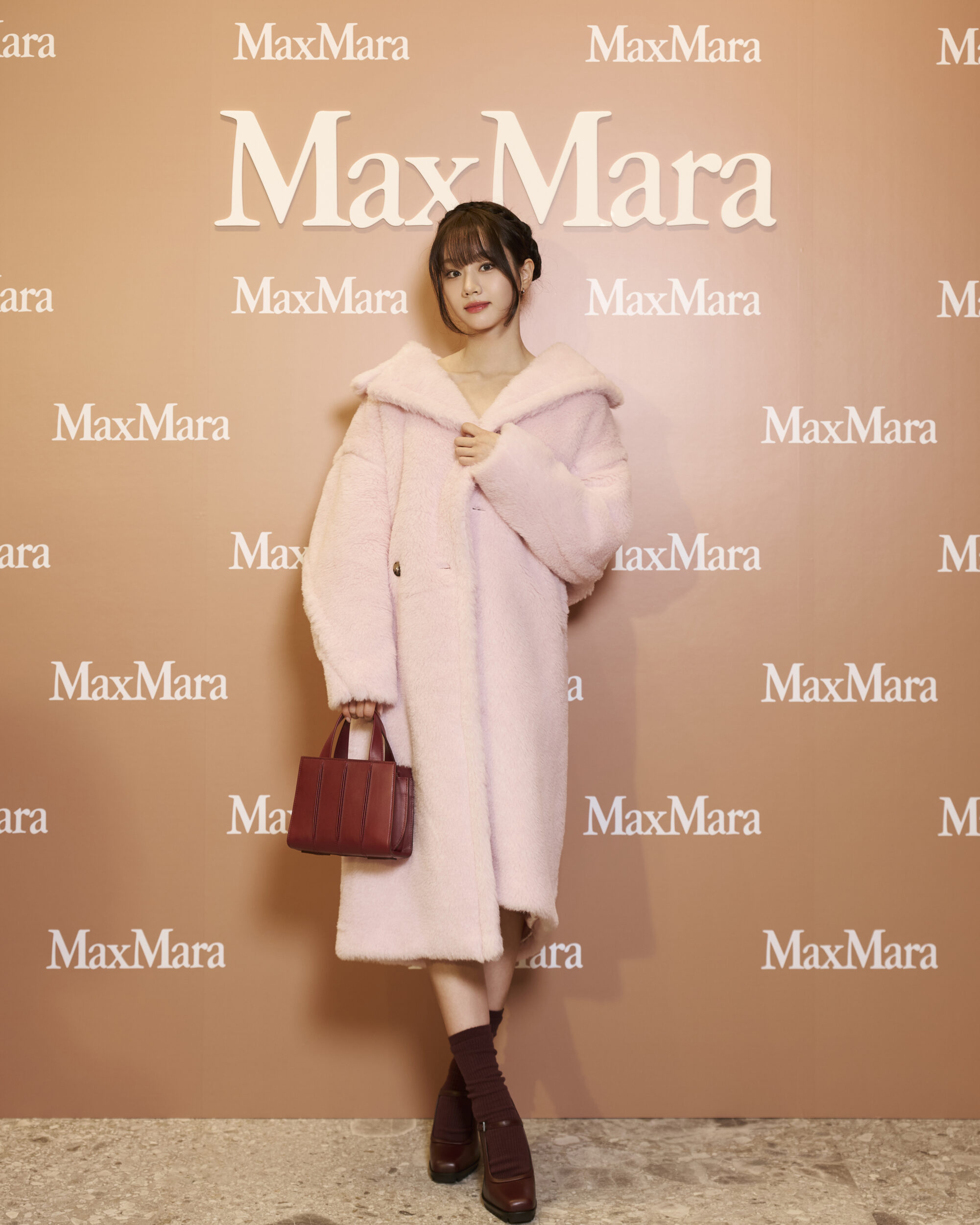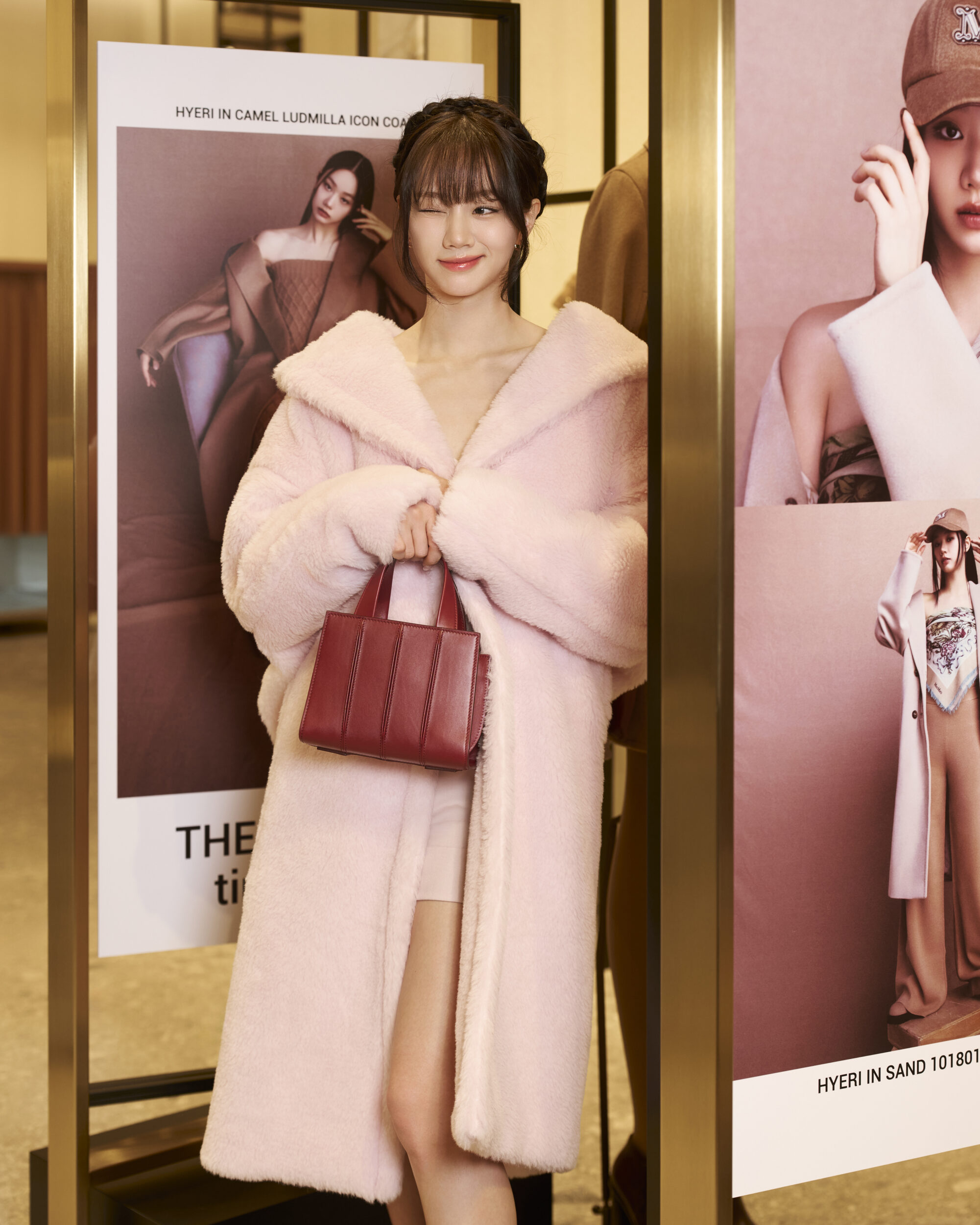 在 Max Mara 台北微風南山專門店煥新開幕當天,惠利將頭髮盤起,身穿柔粉色針織衫與柔粉色 Teddy Icon Coat,搭配酒紅色 Whitney Bag,整個人精緻貴氣十足,一時之間還有點夢回《善意的競爭》的千金形象呢。