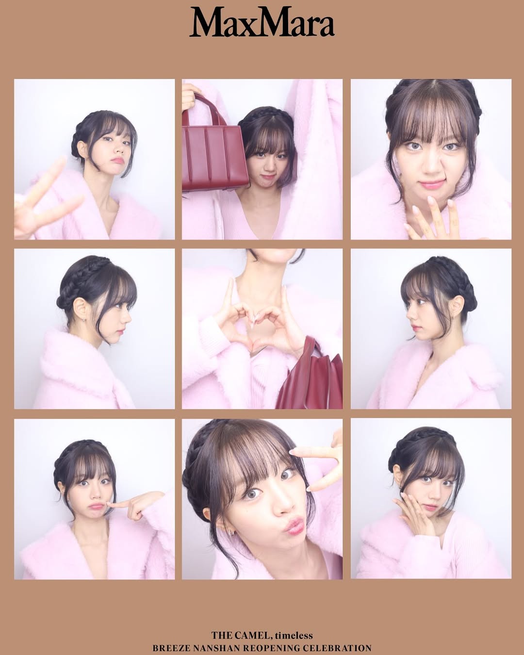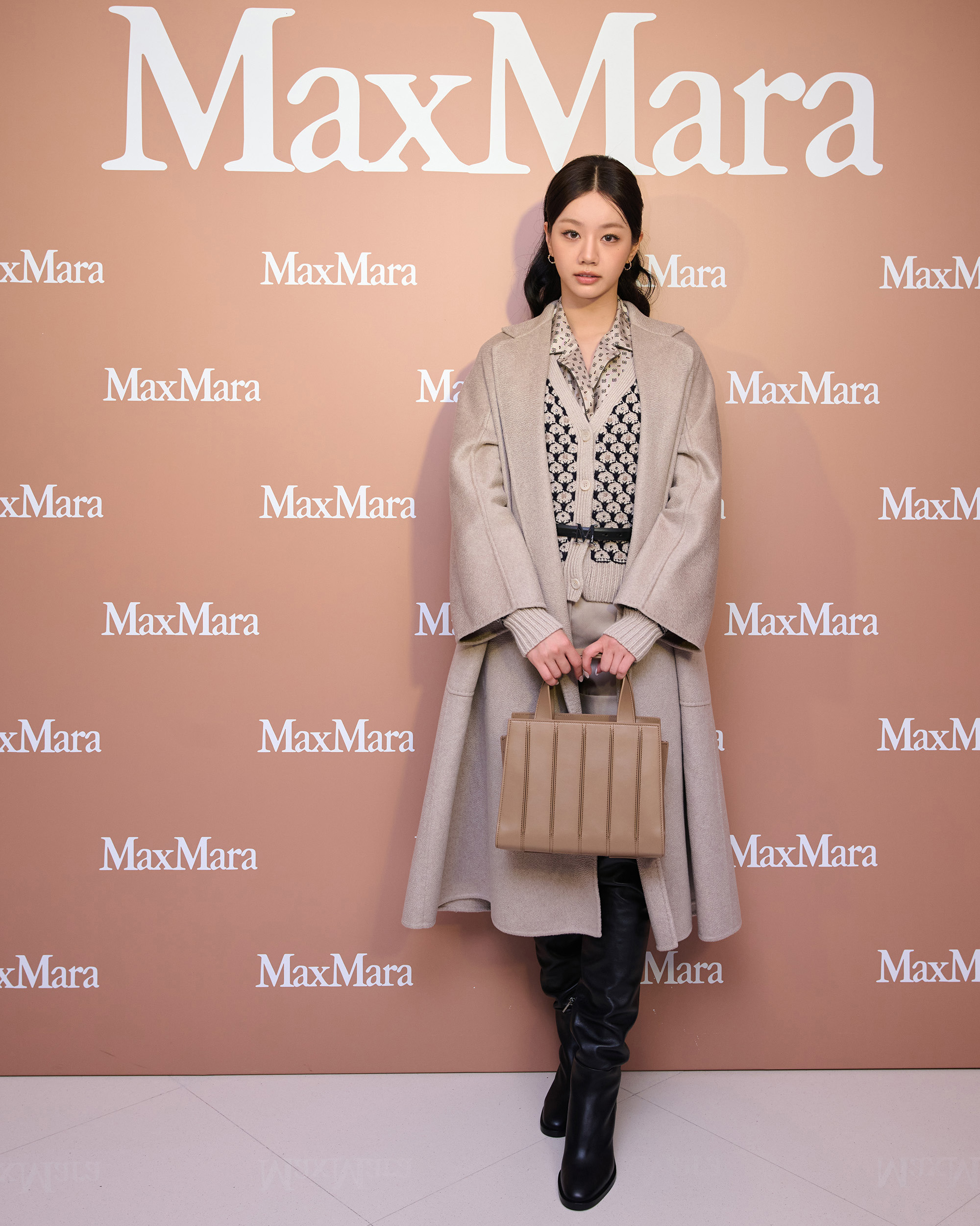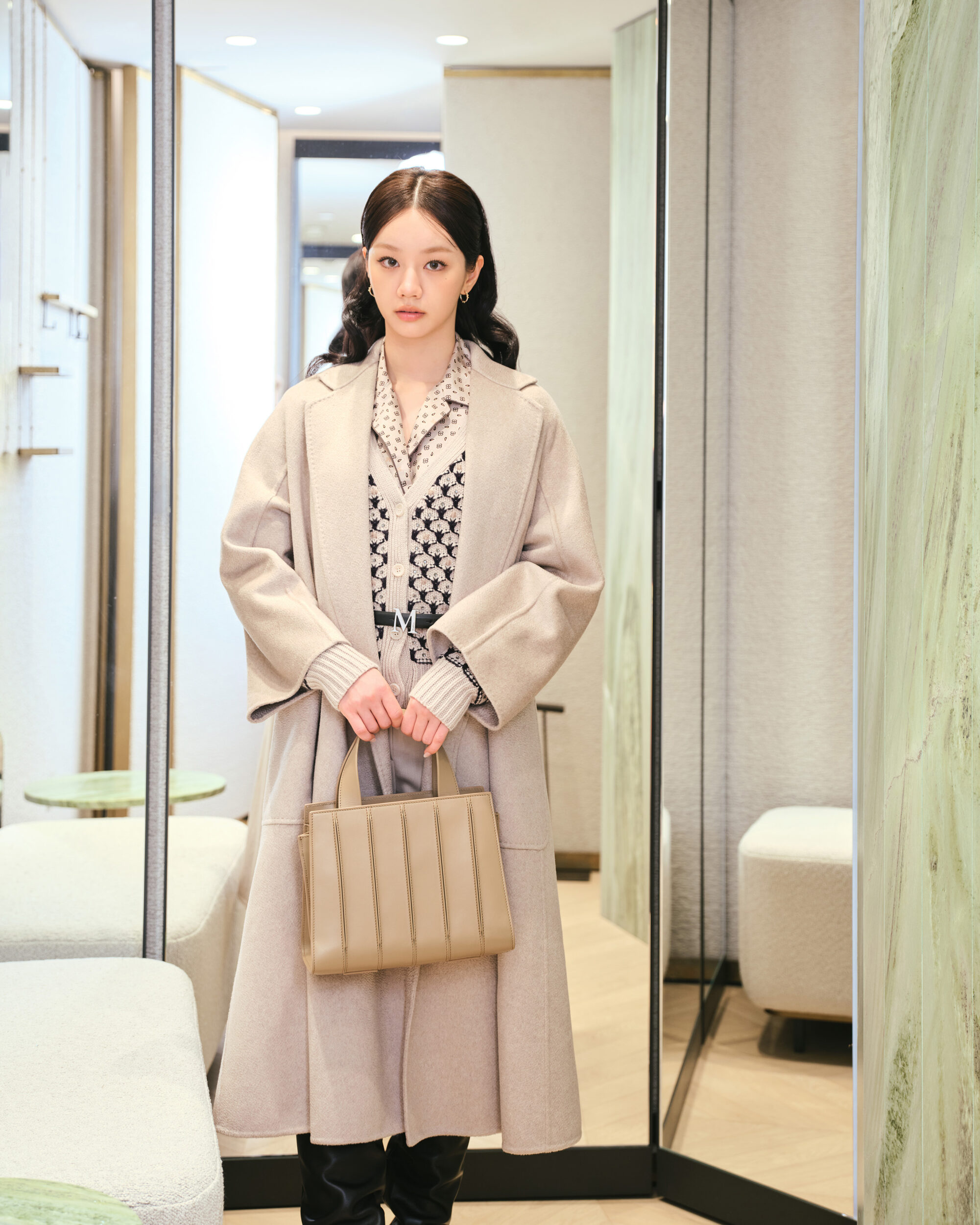 在 Max Mara 台北微風南山專門店煥新開幕當天,惠利將頭髮盤起,身穿柔粉色針織衫與柔粉色 Teddy Icon Coat,搭配酒紅色 Whitney Bag,整個人精緻貴氣十足,一時之間還有點夢回《善意的競爭》的千金形象呢。