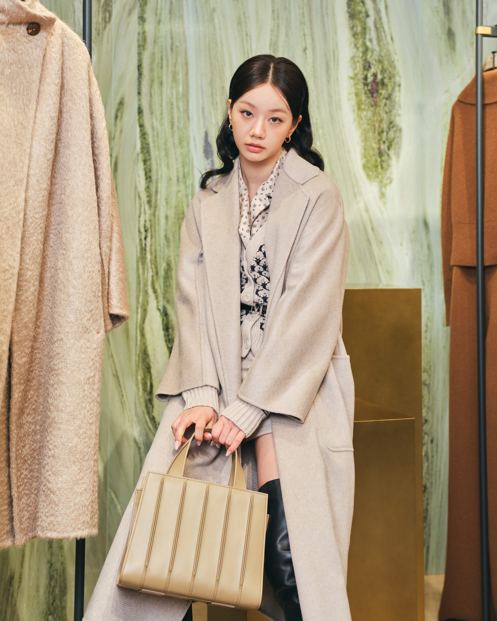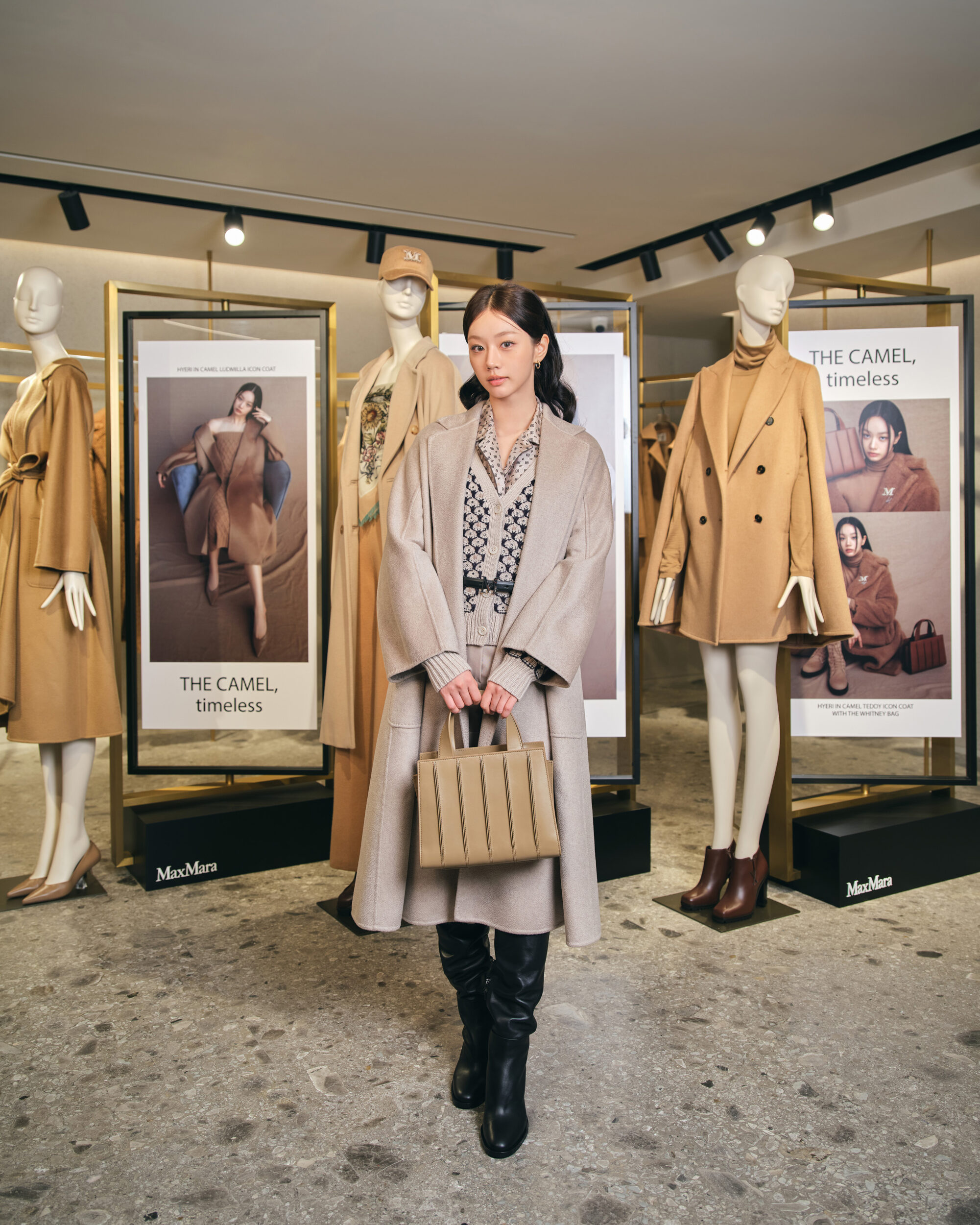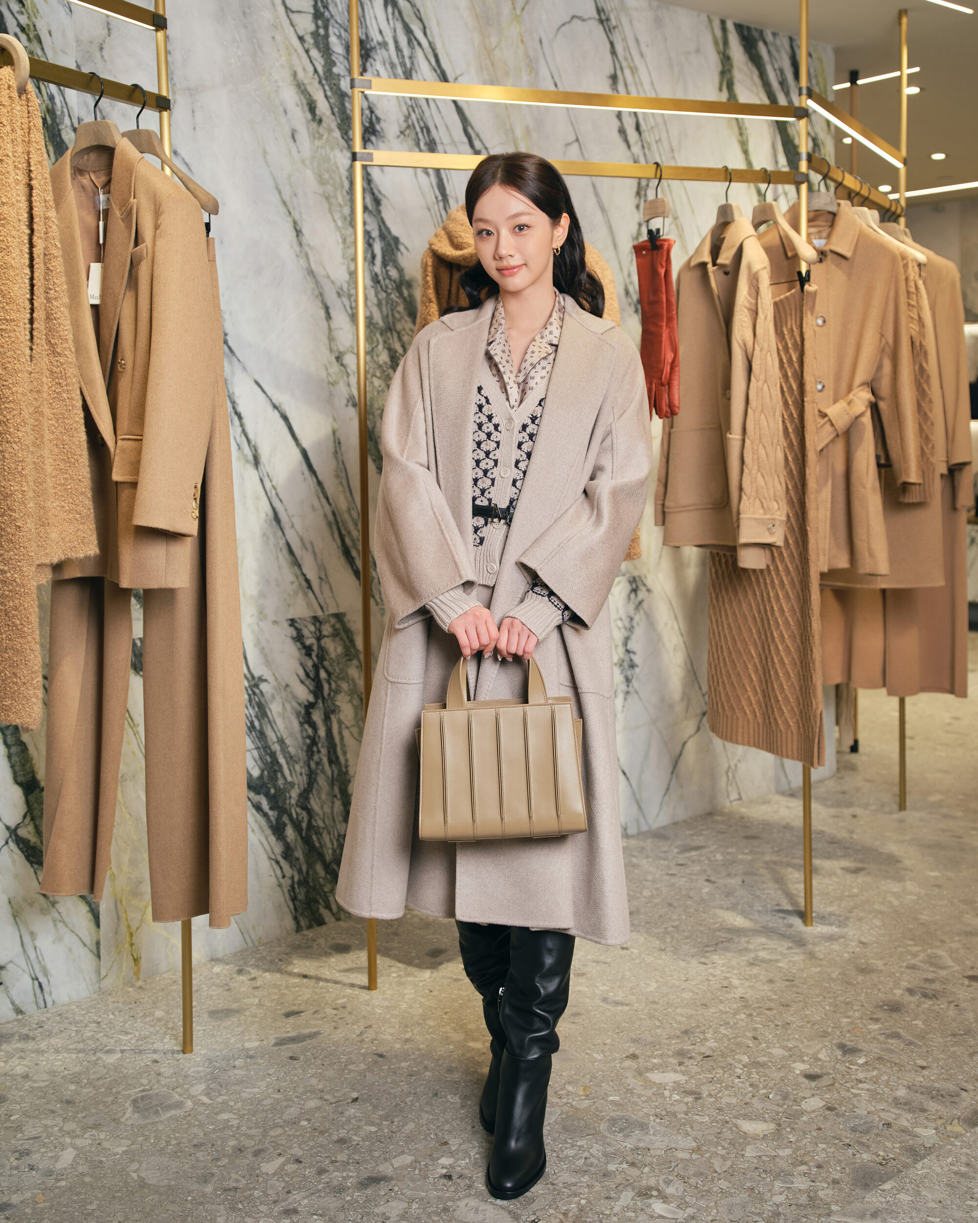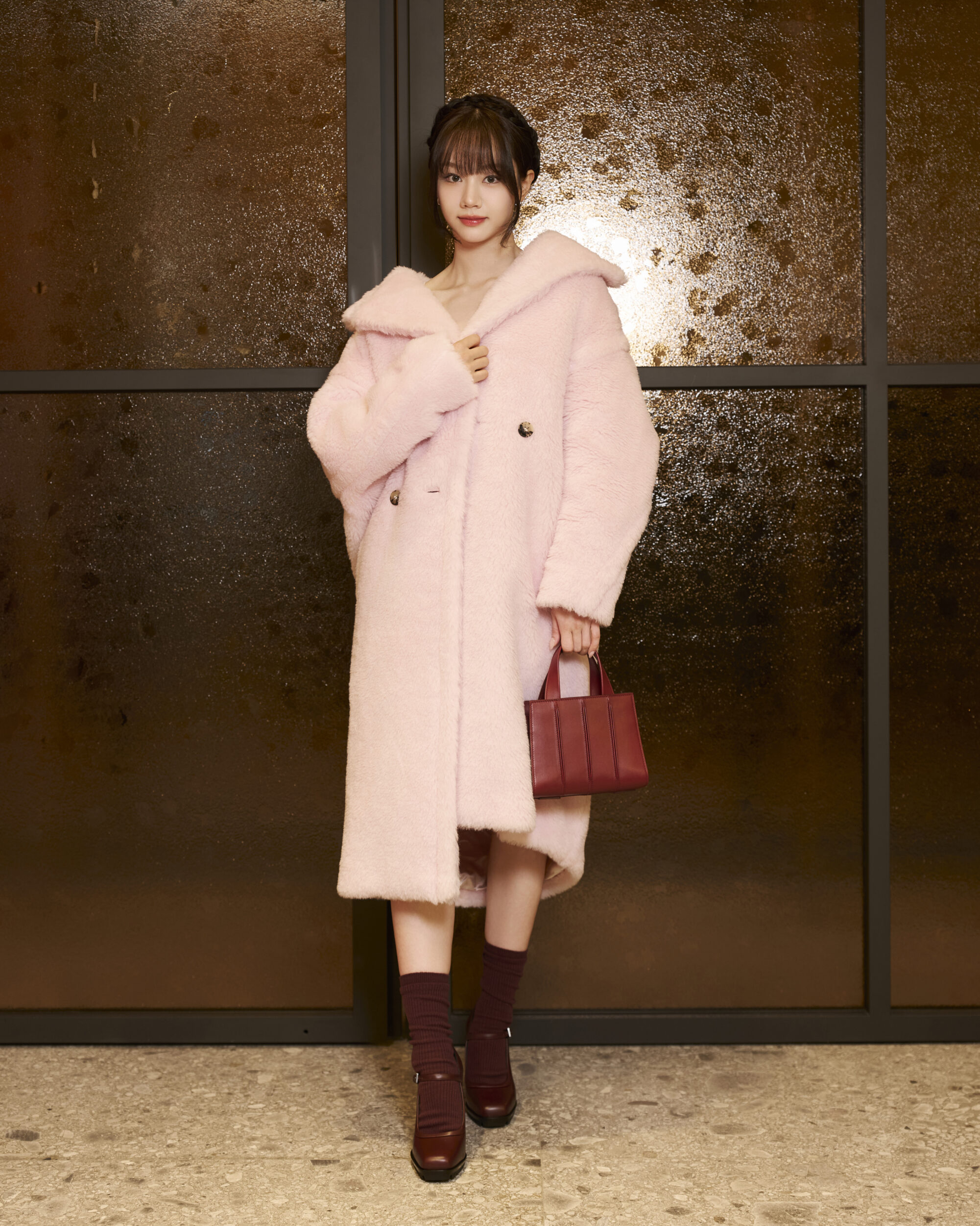 在 Max Mara 台北微風南山專門店煥新開幕當天,惠利將頭髮盤起,身穿柔粉色針織衫與柔粉色 Teddy Icon Coat,搭配酒紅色 Whitney Bag,整個人精緻貴氣十足,一時之間還有點夢回《善意的競爭》的千金形象呢。