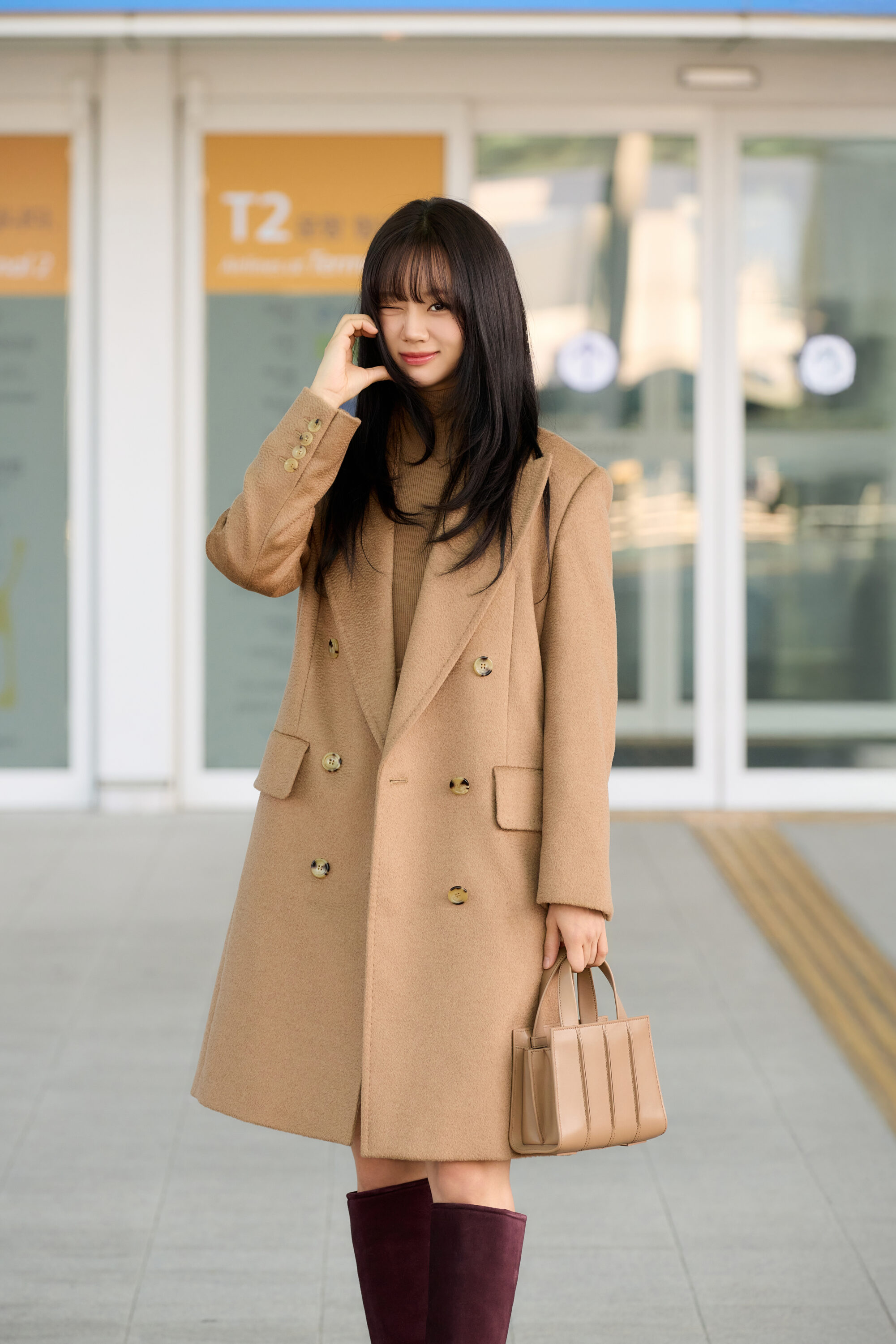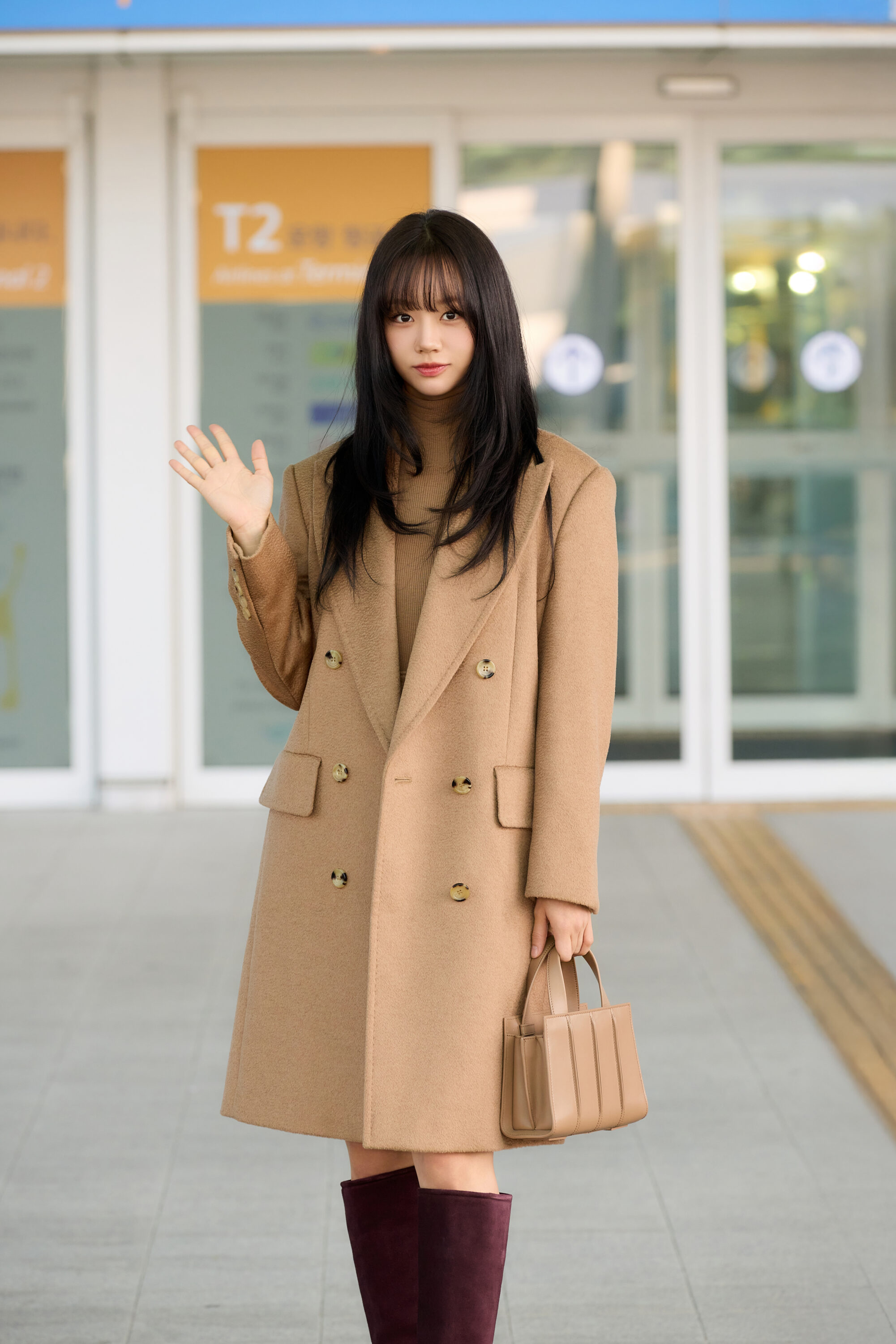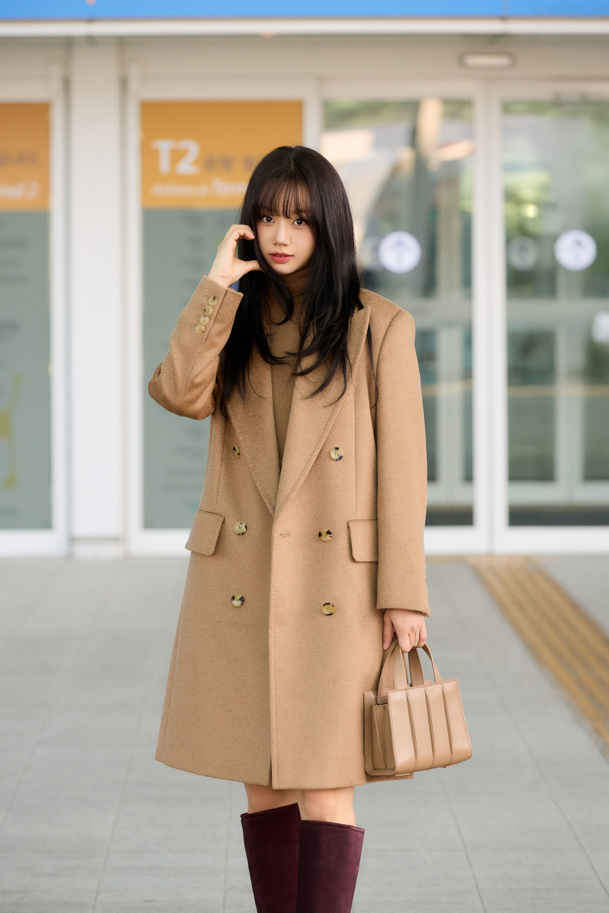 拍完這組美美的形象照後,惠利就接連飛來台灣和香港出席 Max Mara 活動。首先是出發台灣時的機場穿搭,她身穿駝色 Olimpia Coat 搭配 Whitney Bag,裡面內搭同色系小高領合身上衣,簡簡單單就很好看,舉手投足散發優雅格調。
