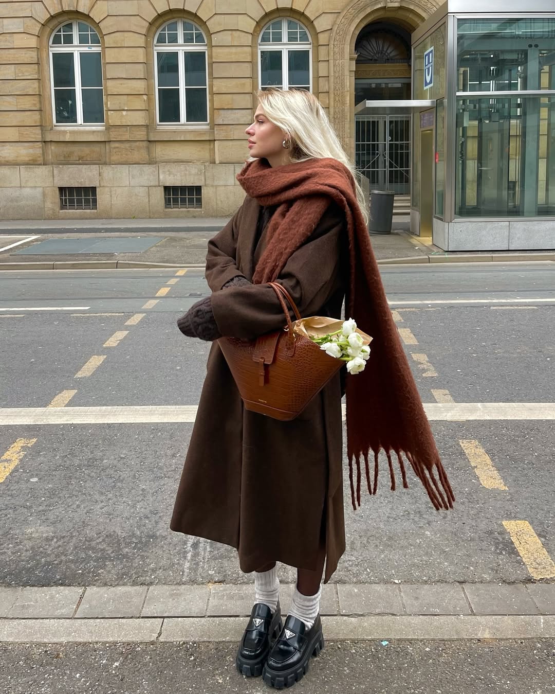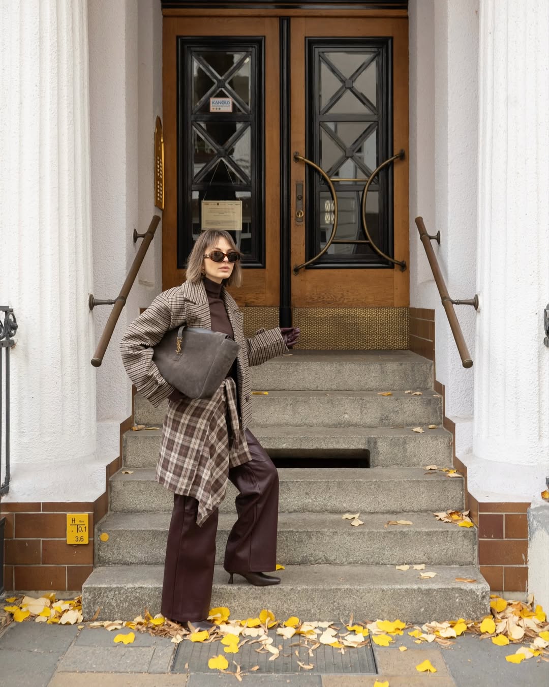 瞧瞧穿搭人士們的示範,用深淺不一的棕色調單品玩疊穿,再加上格紋、直條等元素,不僅帶來層次感,還和諧得很有高級感。