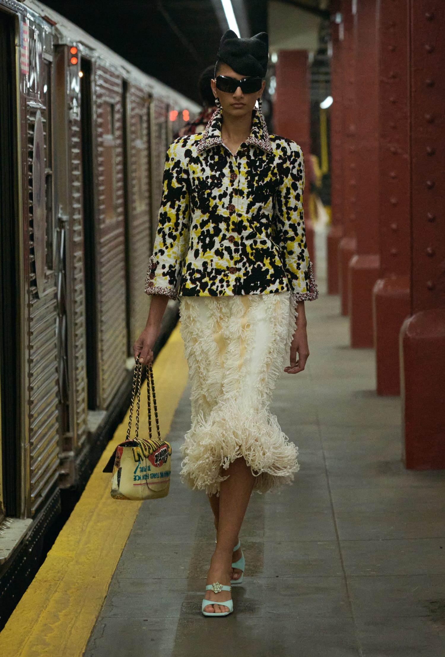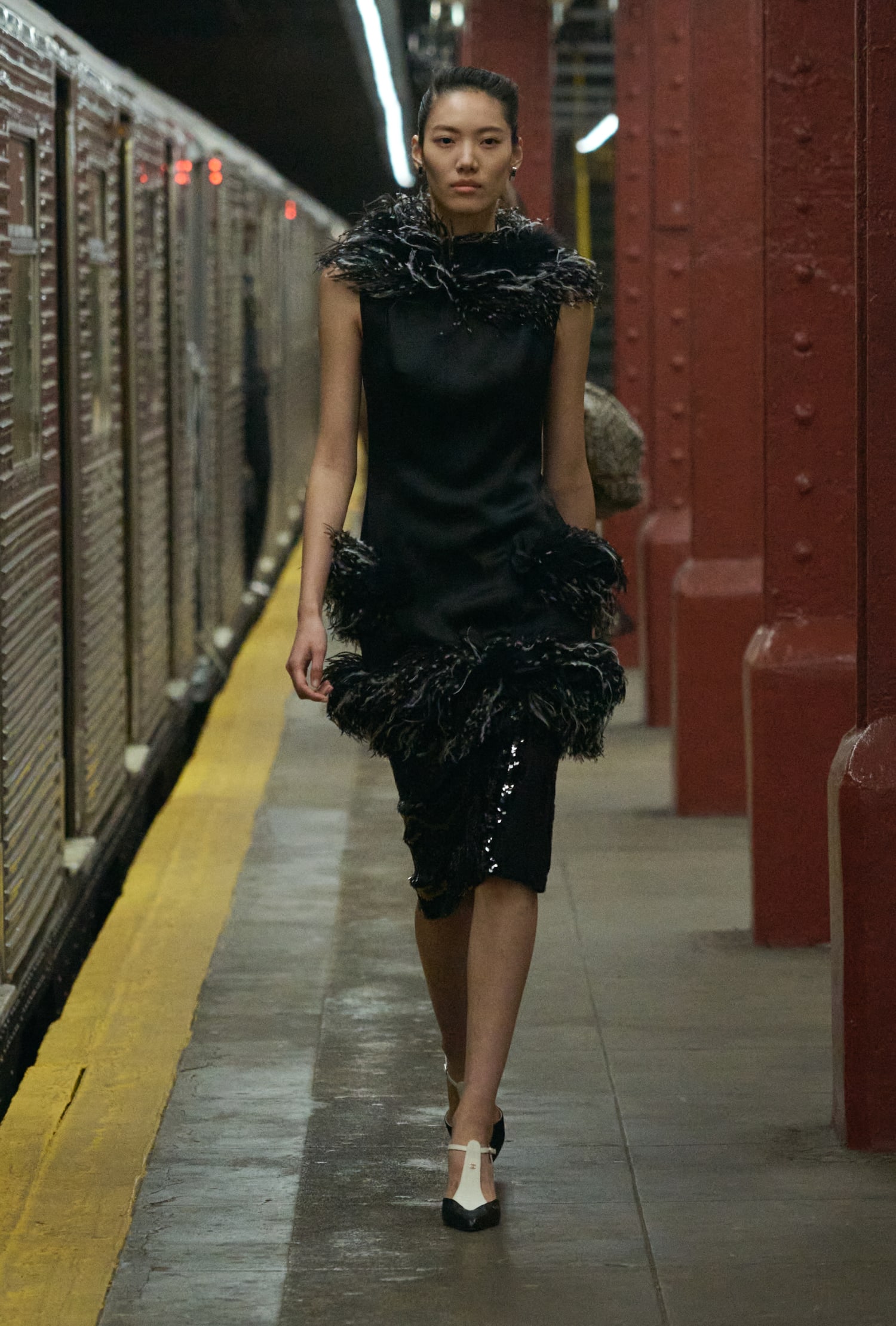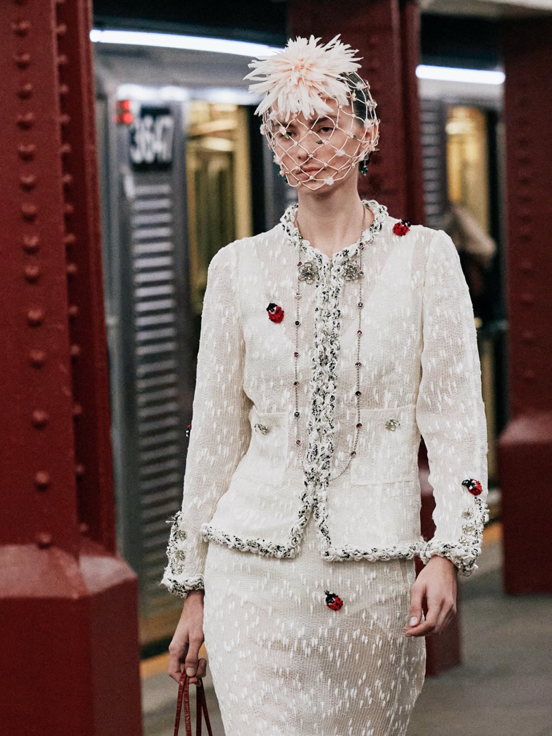 本次大秀選址在 Bowery Station 廢棄的月台,Matthieu Blazy 將巴黎帶至紐約,讓巴黎的優雅與紐約的活力在此交會,並清晰闡述了他的願景——即便是卓越如 CHANEL 工坊的工藝,也該讓服裝回到日常,回歸真實,自然地行走於城市之中。