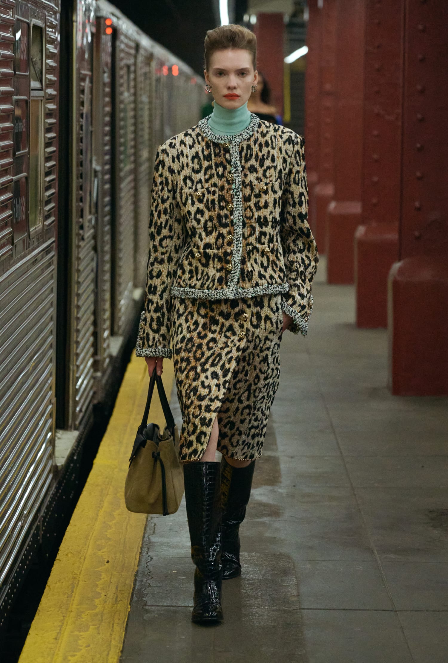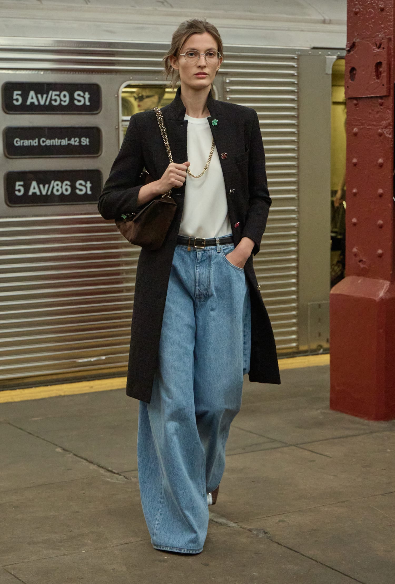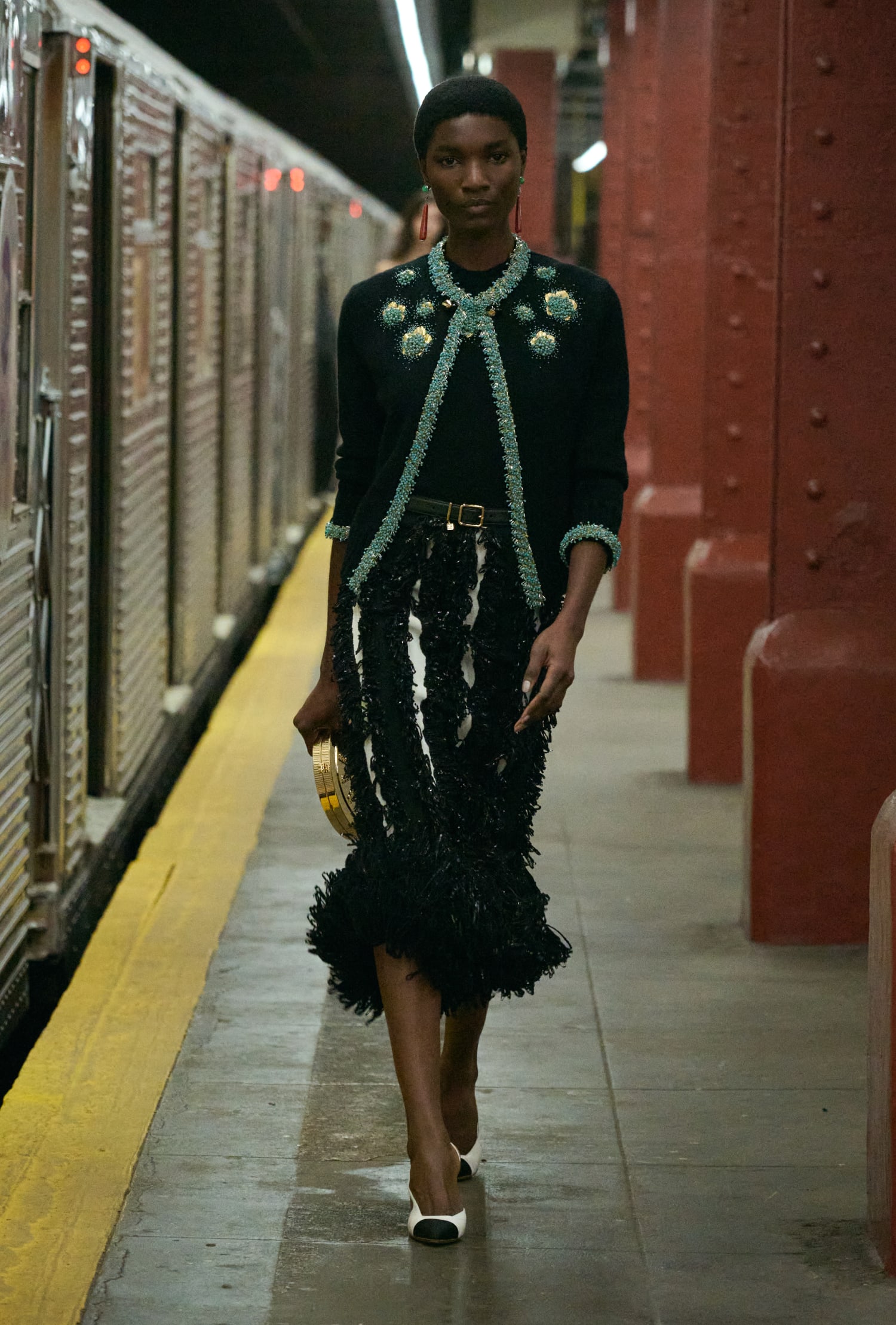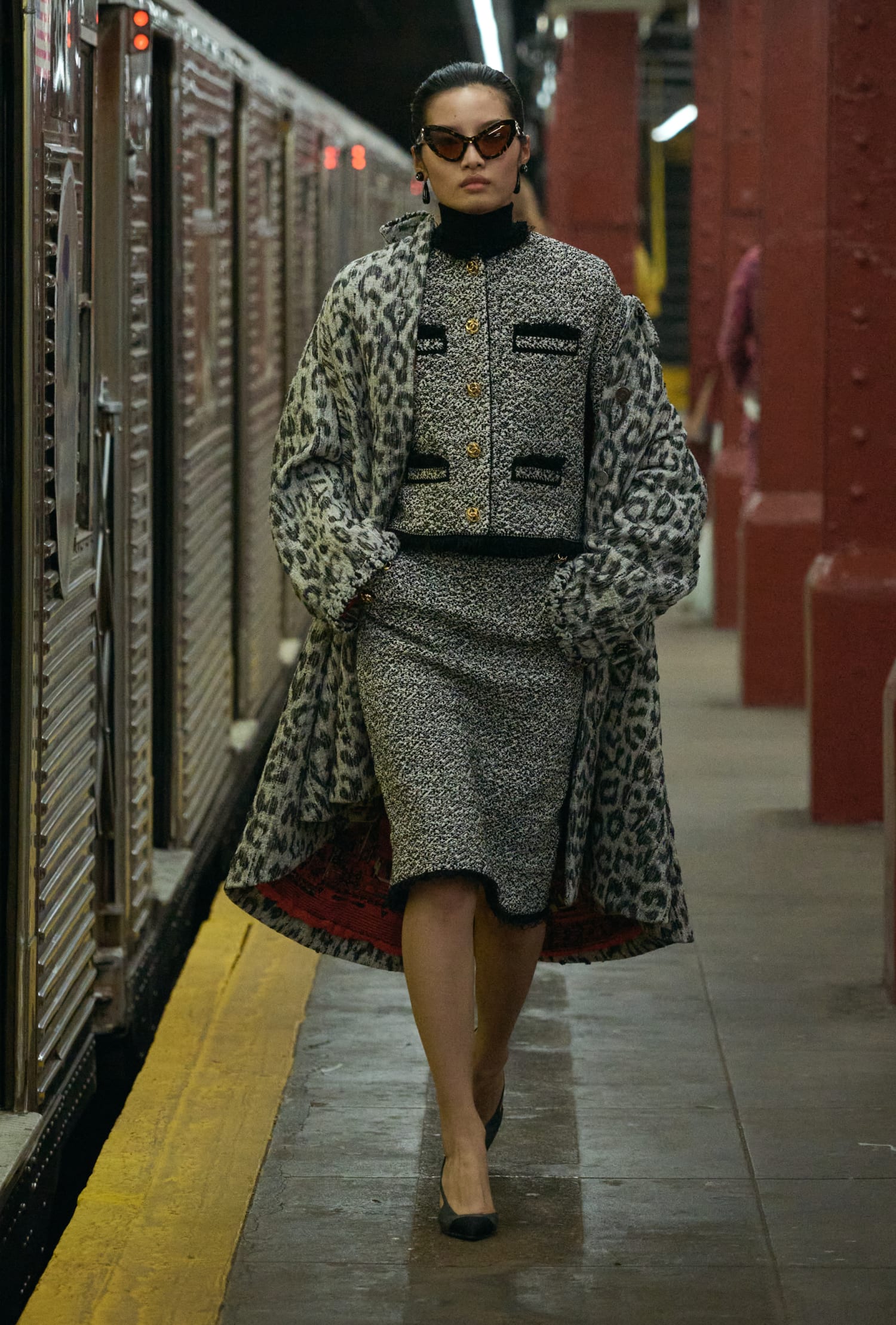 本次大秀選址在 Bowery Station 廢棄的月台,Matthieu Blazy 將巴黎帶至紐約,讓巴黎的優雅與紐約的活力在此交會,並清晰闡述了他的願景——即便是卓越如 CHANEL 工坊的工藝,也該讓服裝回到日常,回歸真實,自然地行走於城市之中。