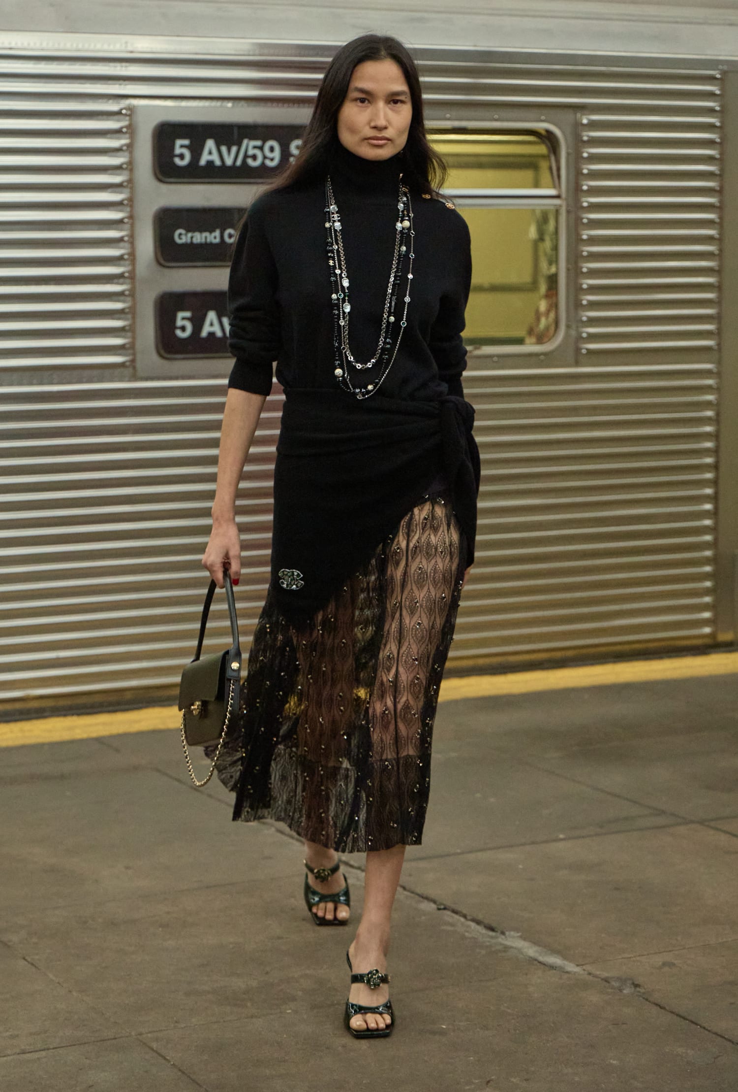 地鐵是紐約的縮影,見證了這座城市的變遷與更迭,如今,它成為展演 CHANEL Métiers d’art 工坊系列的舞台,上演一場穿越空間與時間的旅程,從 1920 年代裝飾藝術的奢華,走向 2020 年代的休閒語彙,不同時代與人物的相融,以 Métiers d’art 工坊的精湛工藝為核心,娓娓道來一個百轉千回的故事。