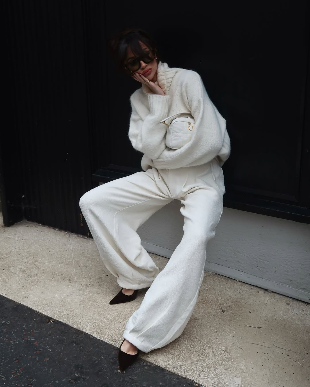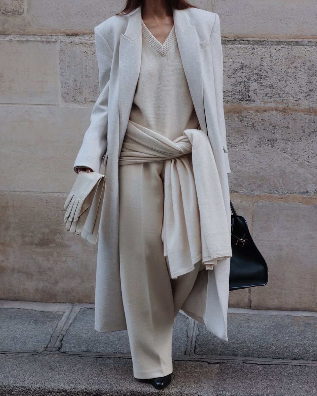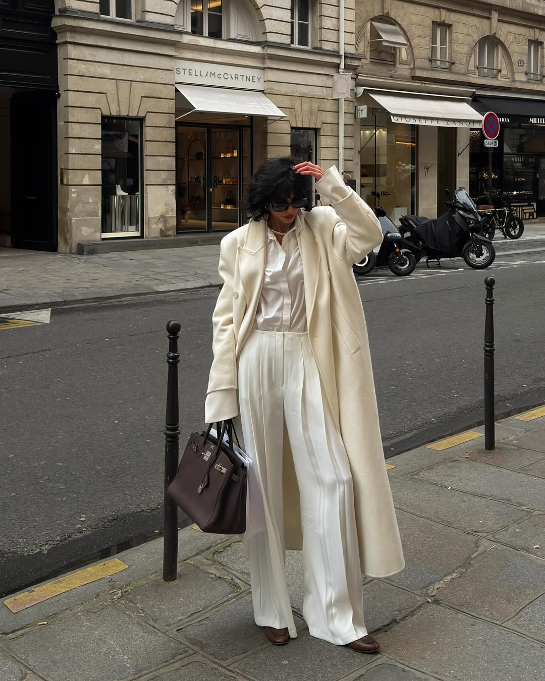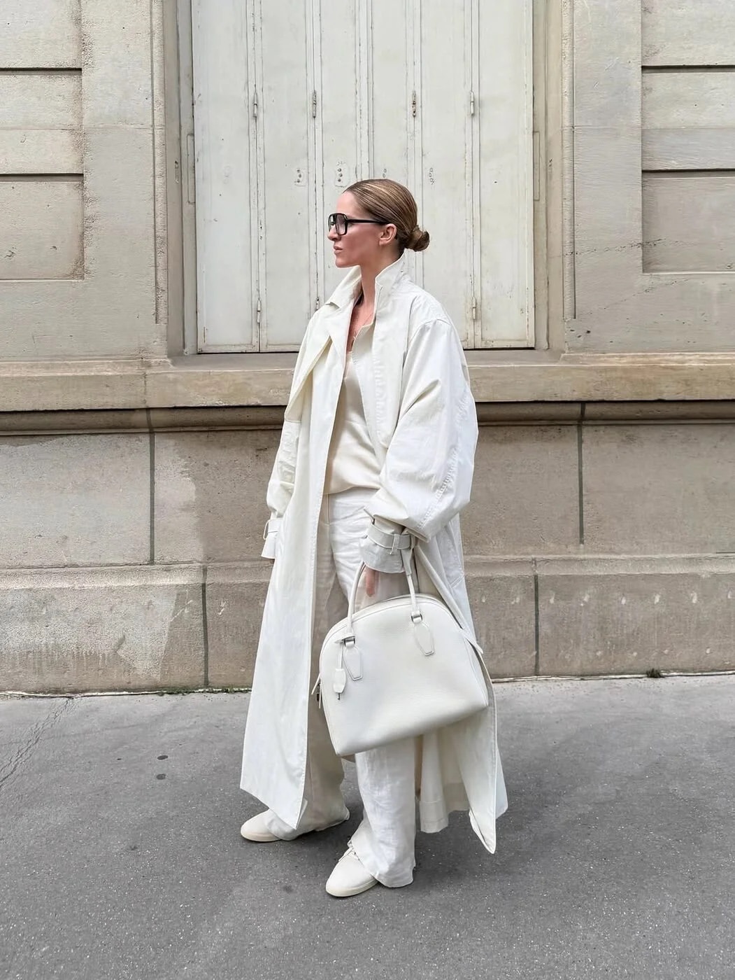 想把白色穿搭穿得簡約又時髦得不著痕跡,最推薦從 Cream On Cream 下手,瞧瞧潮人們以白上衣加白褲,外套來一抹奶油白,層次感立刻就出來了,造型乾淨、柔和,在沉甸甸的冬季顯得格外亮眼。